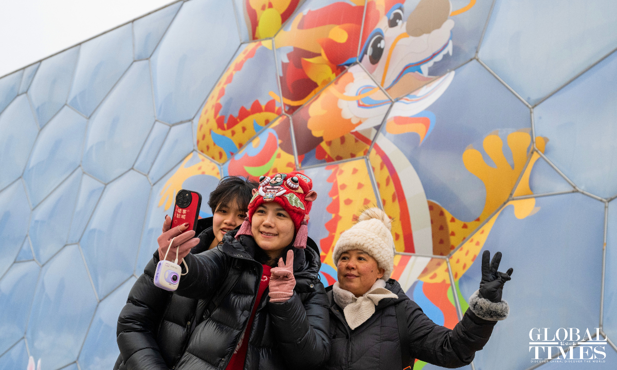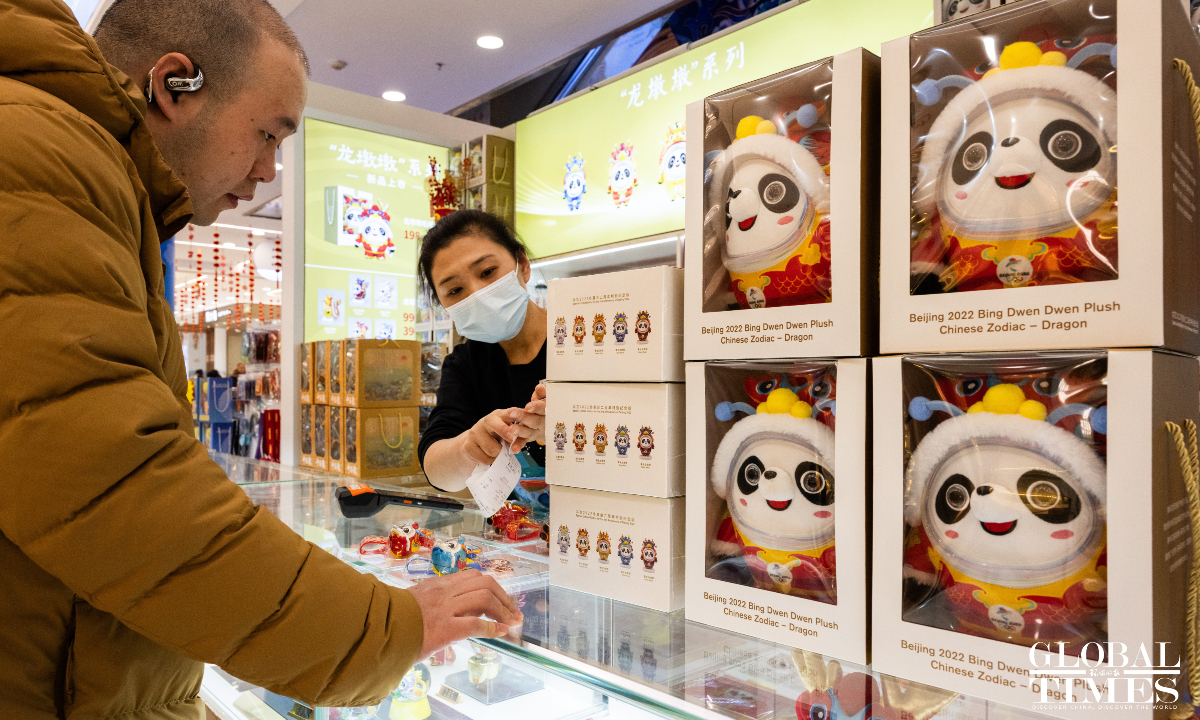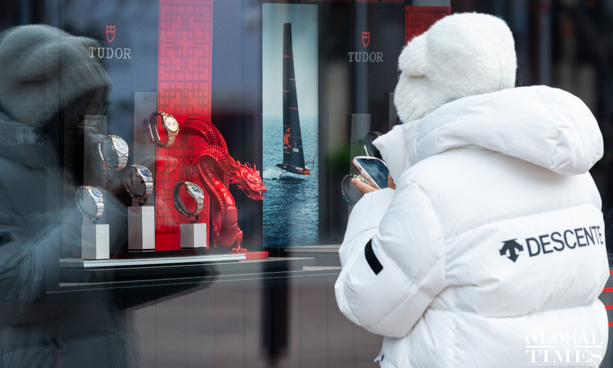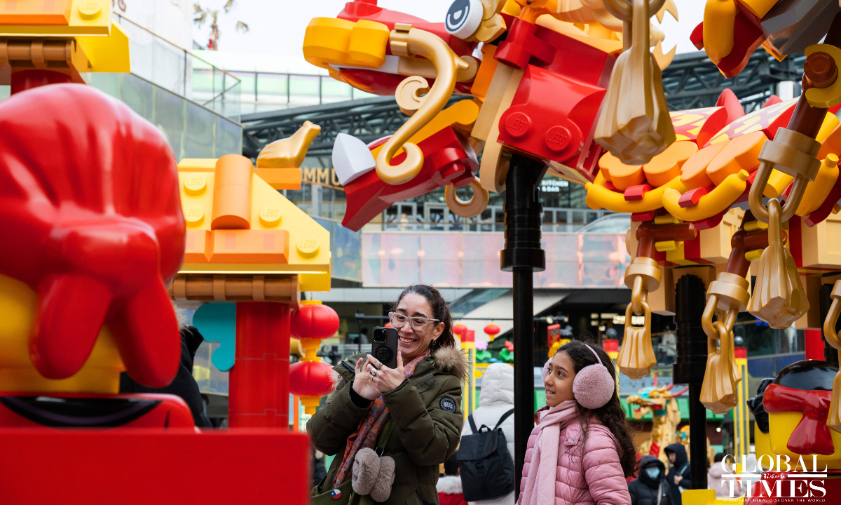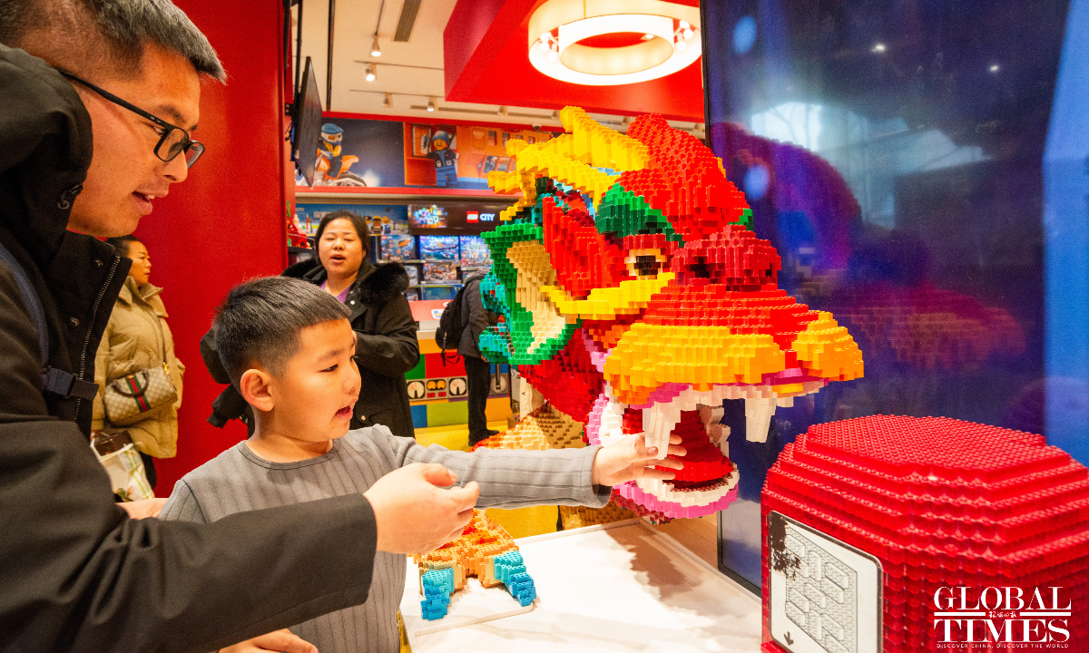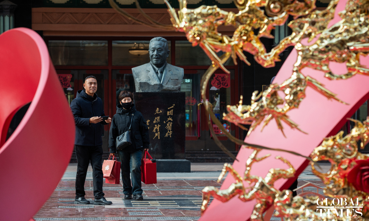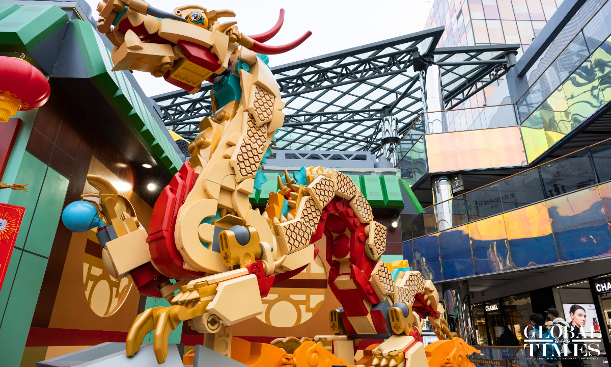 As the Spring Festival approaches, the streets and alleys of Beijing are becoming more festive. "Dragon" lanterns and dragon-themed art installations are being set up at the gates of landmark buildings and commercial centers. A GT reporter has observed that clothes, ornaments and toys adorned with "Chinese dragon" are highly sought after by the public. (Photos: Chen Tao/GT)