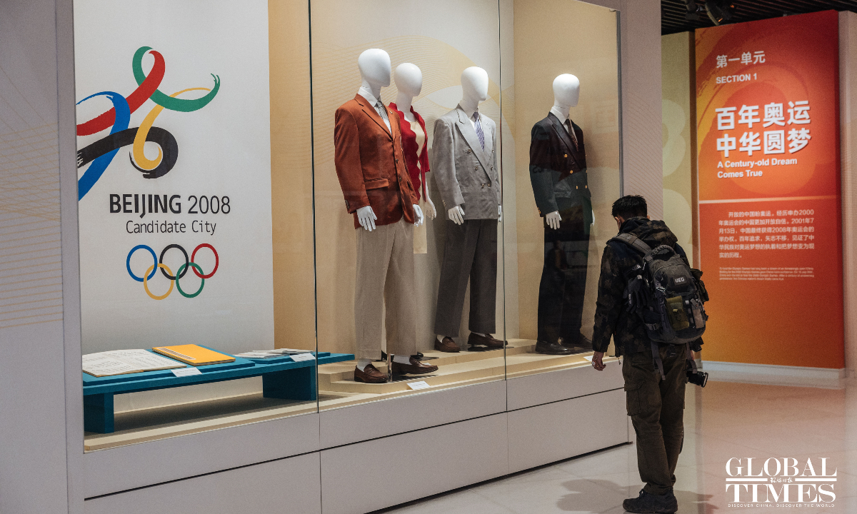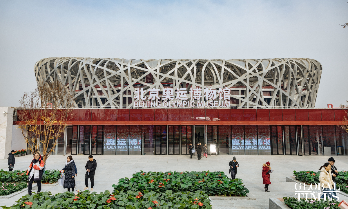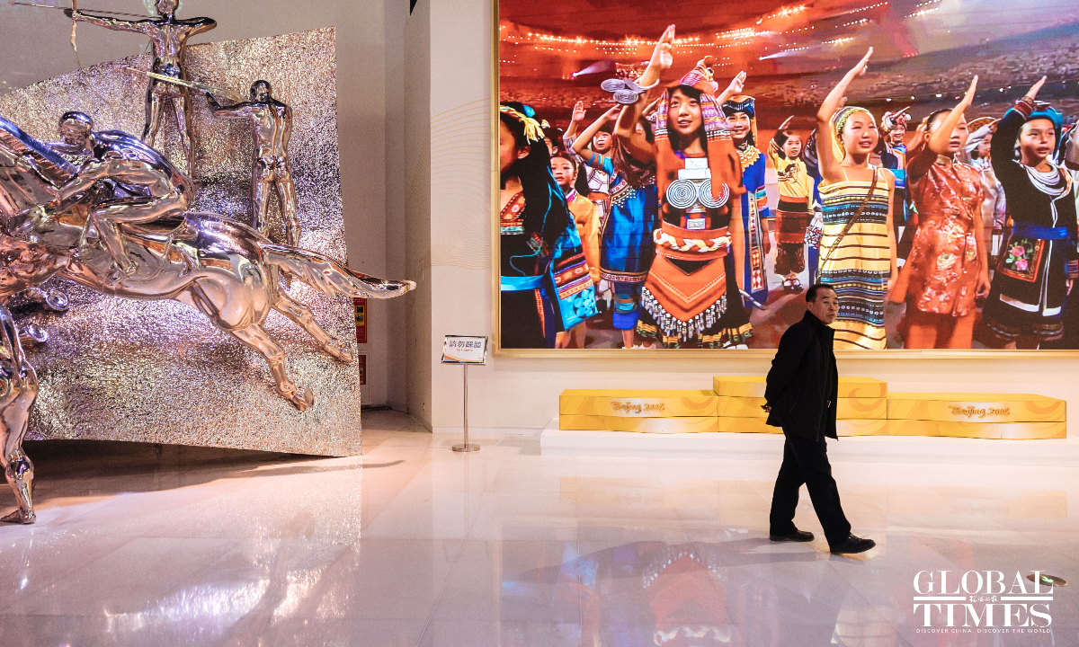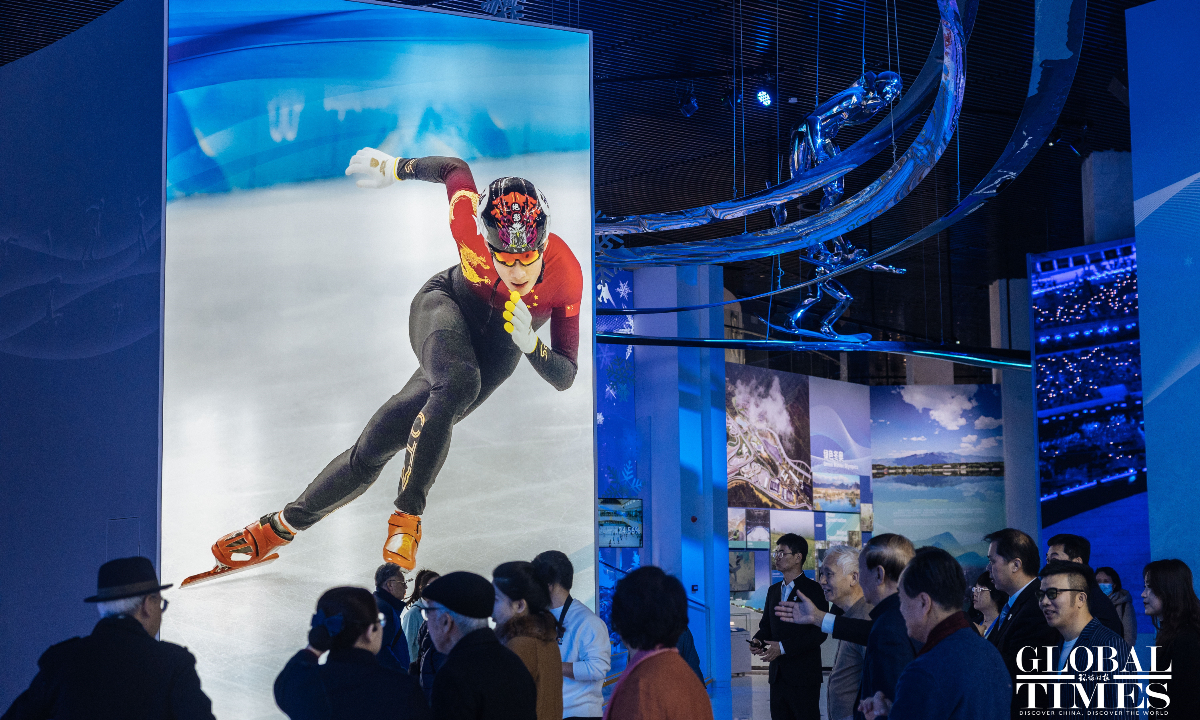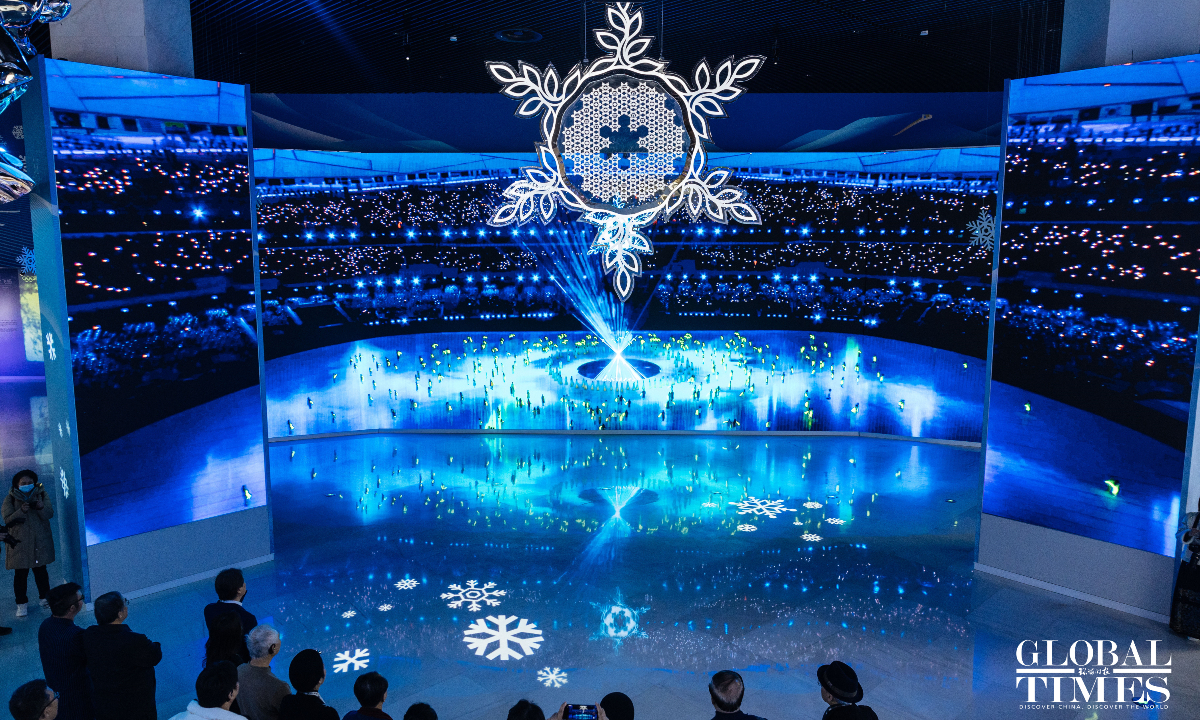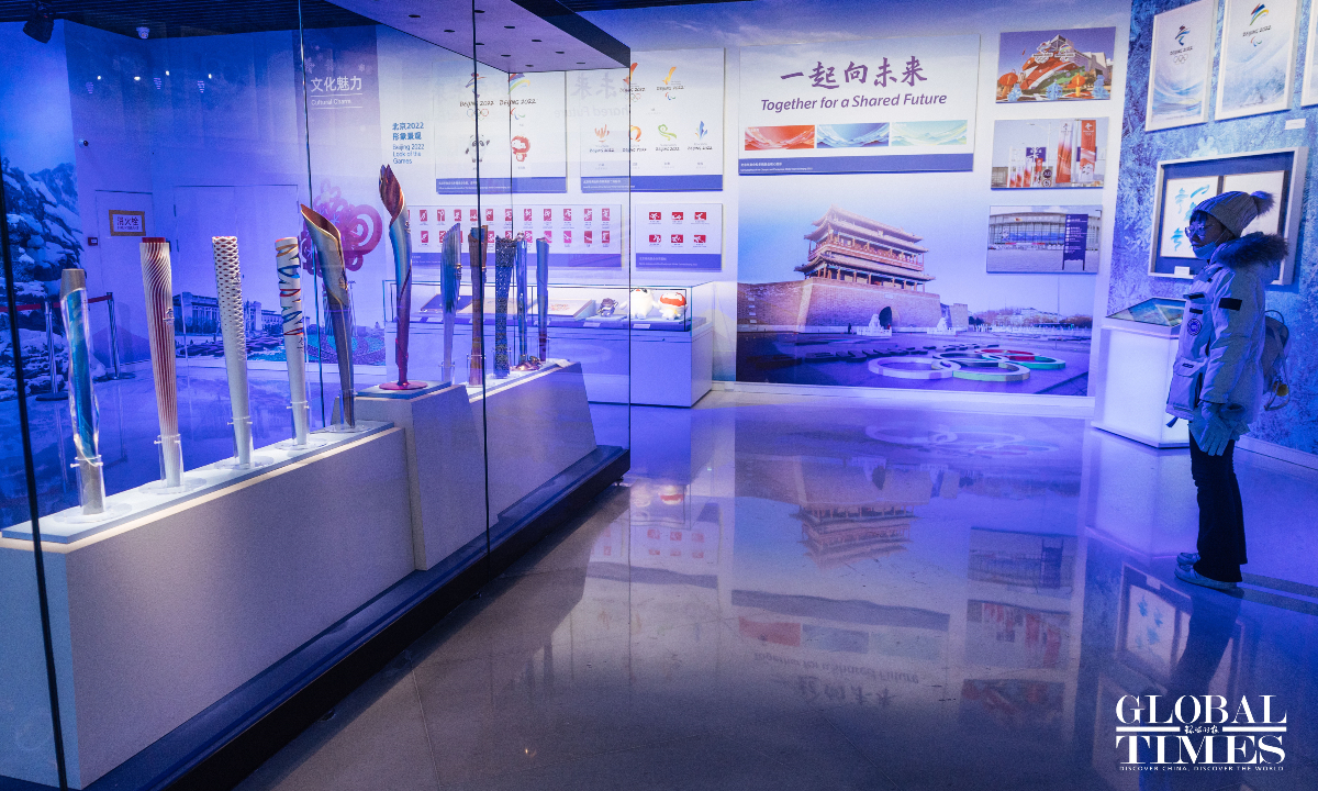 On the second anniversary of the hosting of the Beijing 2022 Winter Olympic Games, the upgraded Beijing Olympic Museum reopened to the public on Saturday. The museum is located in the south of the National Stadium (Bird's Nest), with a total area of 26,000 square meters. The basic exhibition hall, with an exhibition area of 8,604 square meters, consists of 1,394 exhibits and a large number of pictures and video images. Through large-scale scene restoration, a multimedia sand table and a physical exhibition, among other displays, it presents the process of bidding, preparation and hosting of the Beijing 2008 Olympic Games and Beijing 2022 Winter Olympic Games, as well as the shining moments of the athletes. (Photos: Li Hao/GT)