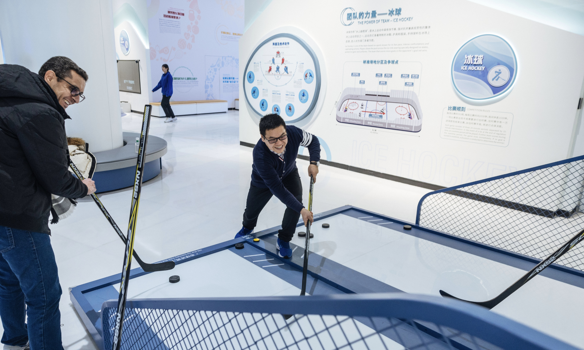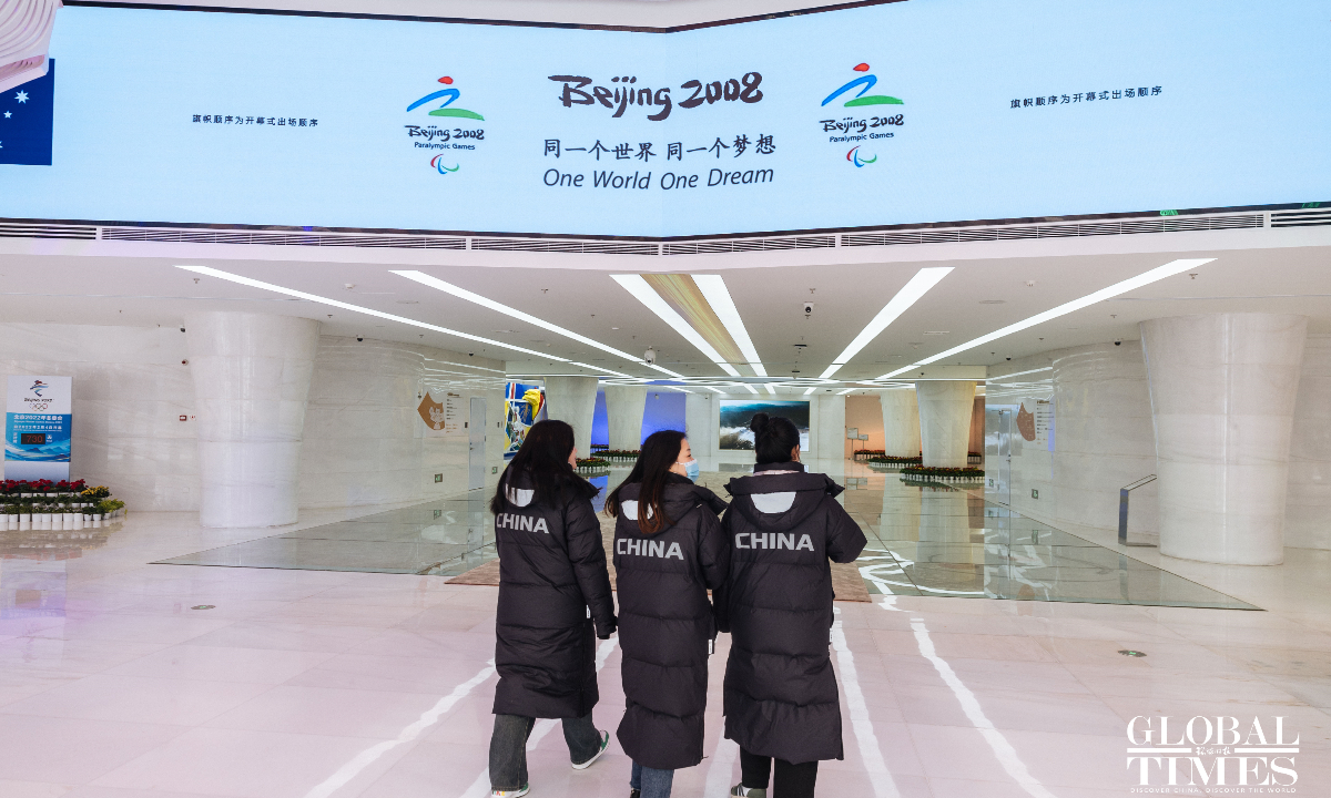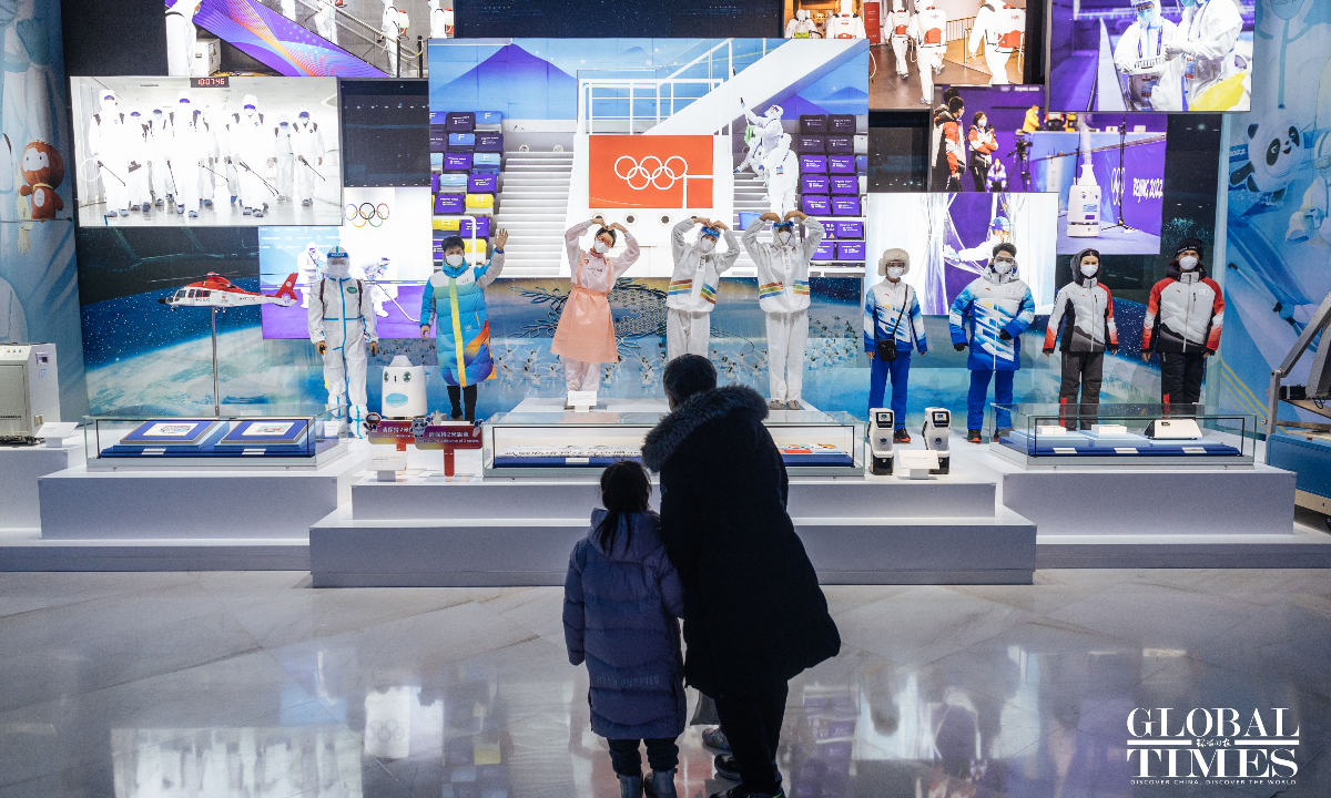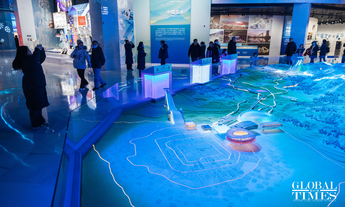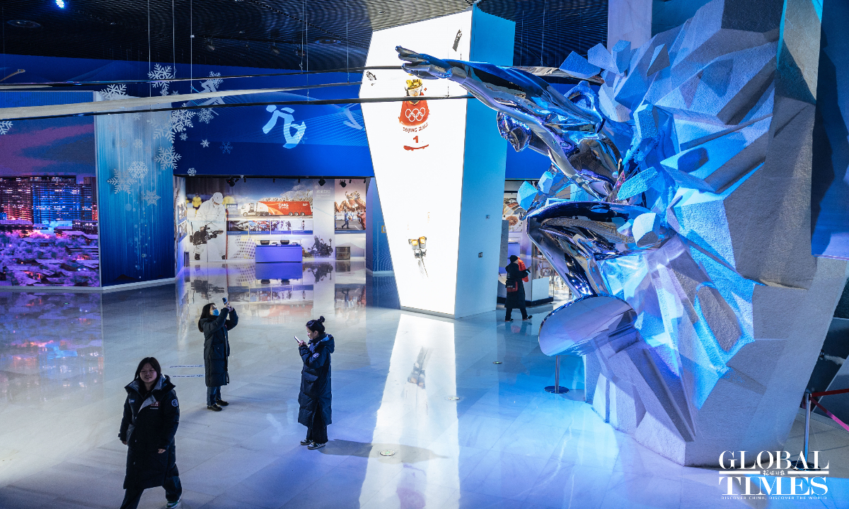 On the second anniversary of the hosting of the Beijing 2022 Winter Olympic Games, the upgraded Beijing Olympic Museum reopened to the public on Saturday. The museum is located in the south of the National Stadium (Bird's Nest), with a total area of 26,000 square meters. The basic exhibition hall, with an exhibition area of 8,604 square meters, consists of 1,394 exhibits and a large number of pictures and video images. Through large-scale scene restoration, a multimedia sand table and a physical exhibition, among other displays, it presents the process of bidding, preparation and hosting of the Beijing 2008 Olympic Games and Beijing 2022 Winter Olympic Games, as well as the shining moments of the athletes. (Photos: Li Hao/GT)