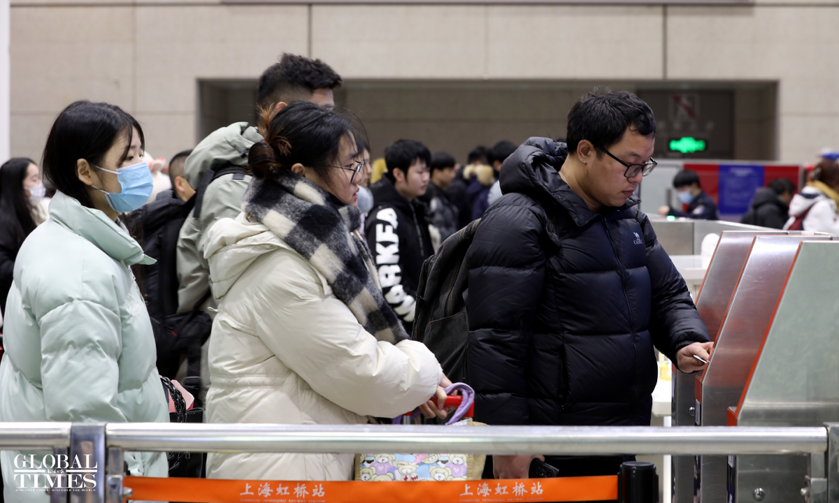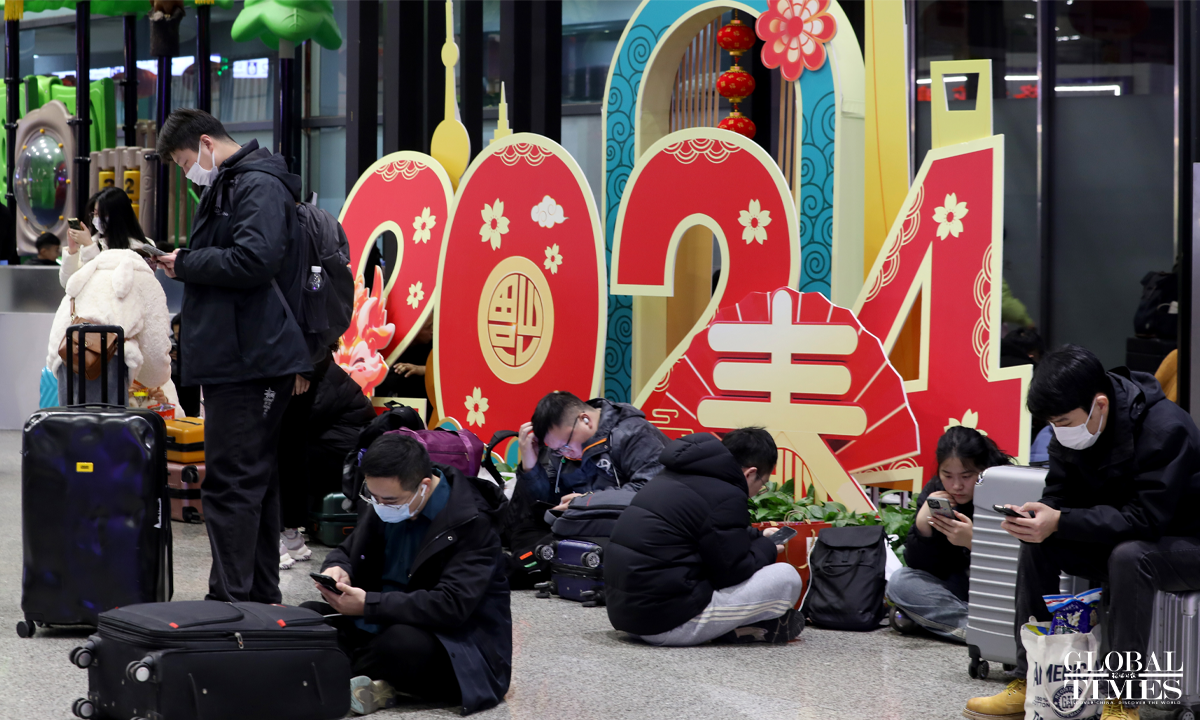Late at night on February 7, Shanghai Hongqiao Railway Station witnessed bustling waiting halls, teeming with passengers eagerly anticipating their homeward-bound trains. The number of overnight additional trains during the 2024 Spring Festival travel rush has reached an unprecedented historical peak. The station's essential facilities, including heating, lighting, and drinking water, continue to function seamlessly. Crucial passenger service zones and select shops remain accessible throughout the night, ensuring passengers enjoy a secure, well-organized, and welcoming environment. Photos: Chen Xia/GT
