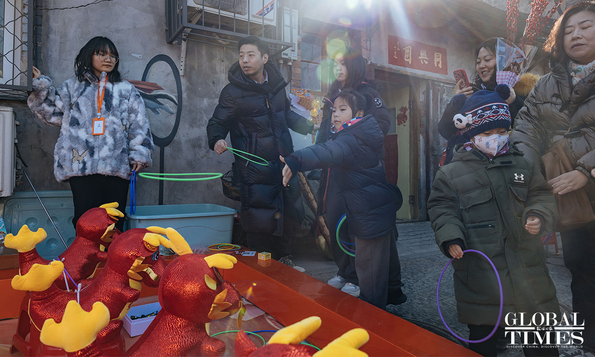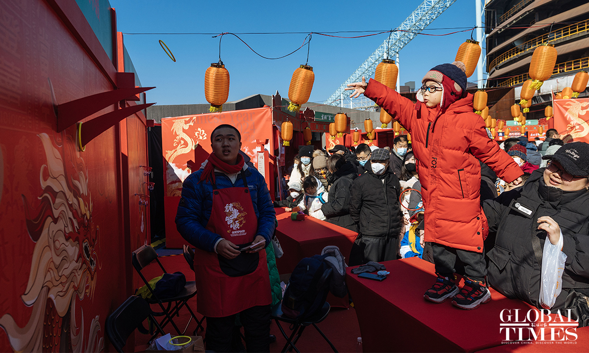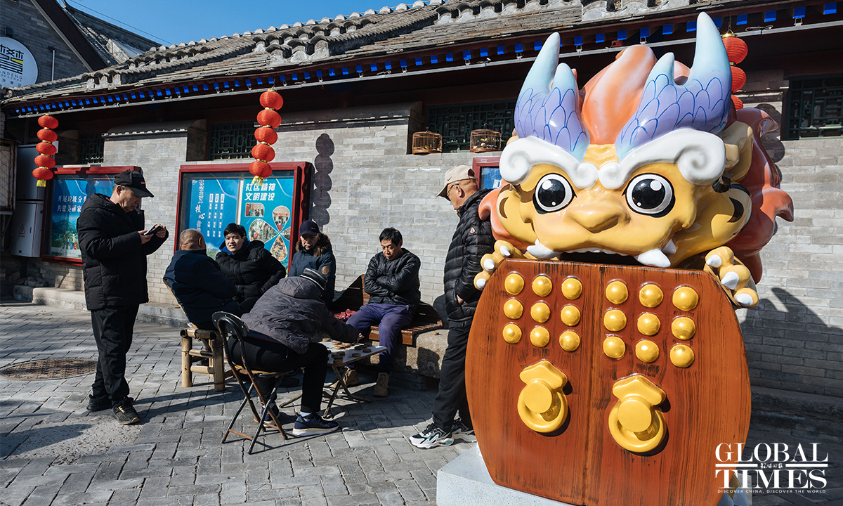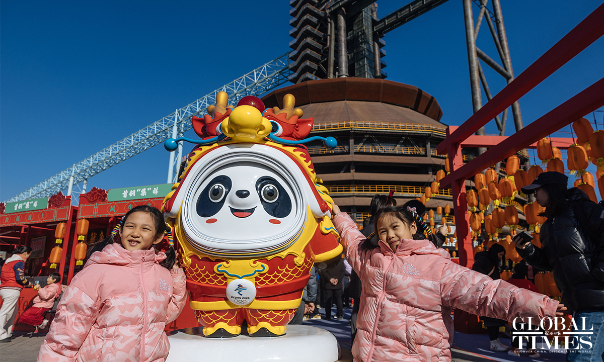 Temple fairs are being held in Beijing during the Year of the Dragon Spring Festival. At Shougang Park, industrial heritage seamlessly blends with cyberpunk China-chic, offering a unique experience that merges folk customs with fashion trends. Dragon-themed sculptures adorn the Moshikou cultural block, inviting visitors to take part in the "Dragon Quest" and collect blessings via themed stamp collections. (Photos: Li Hao/GT)