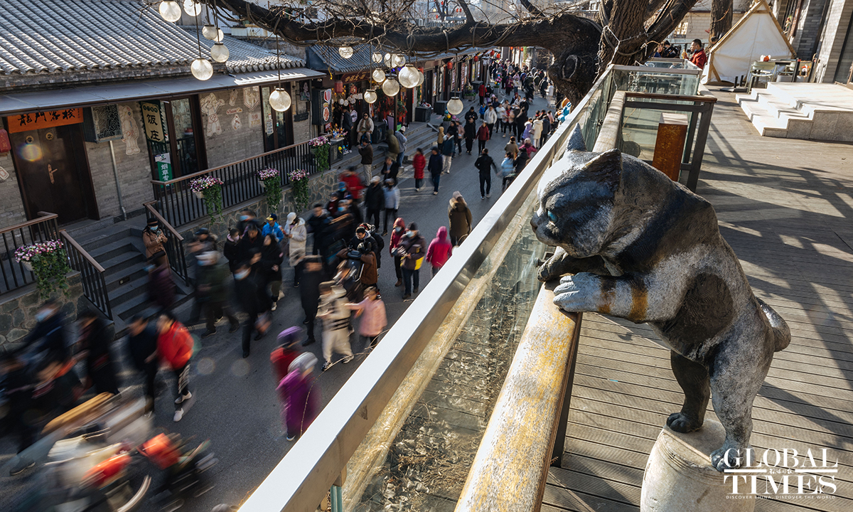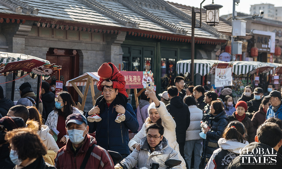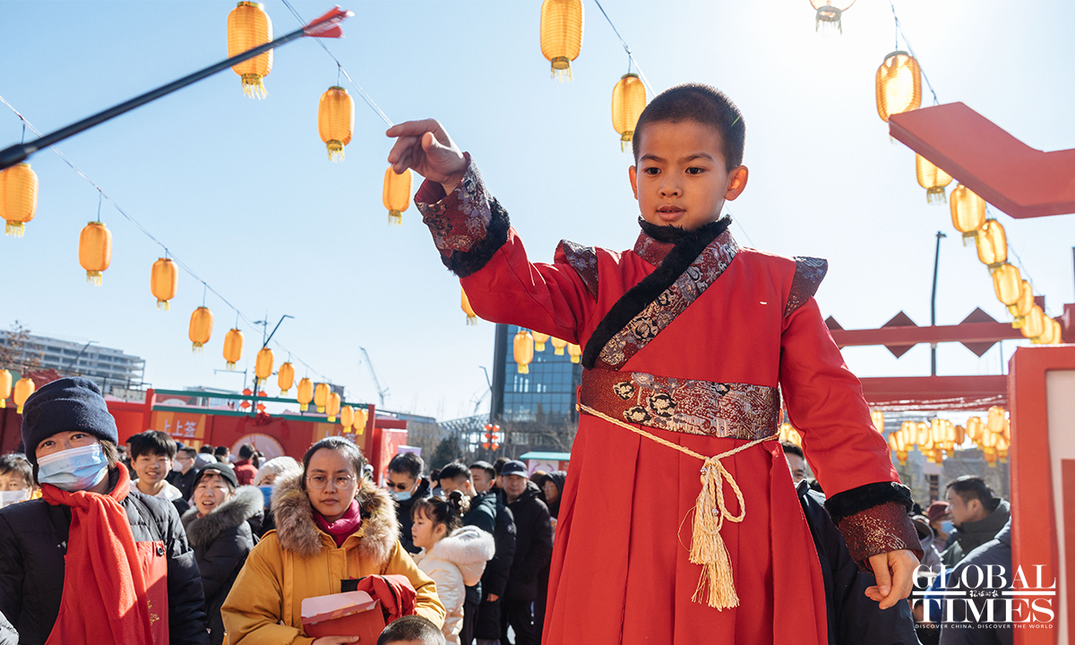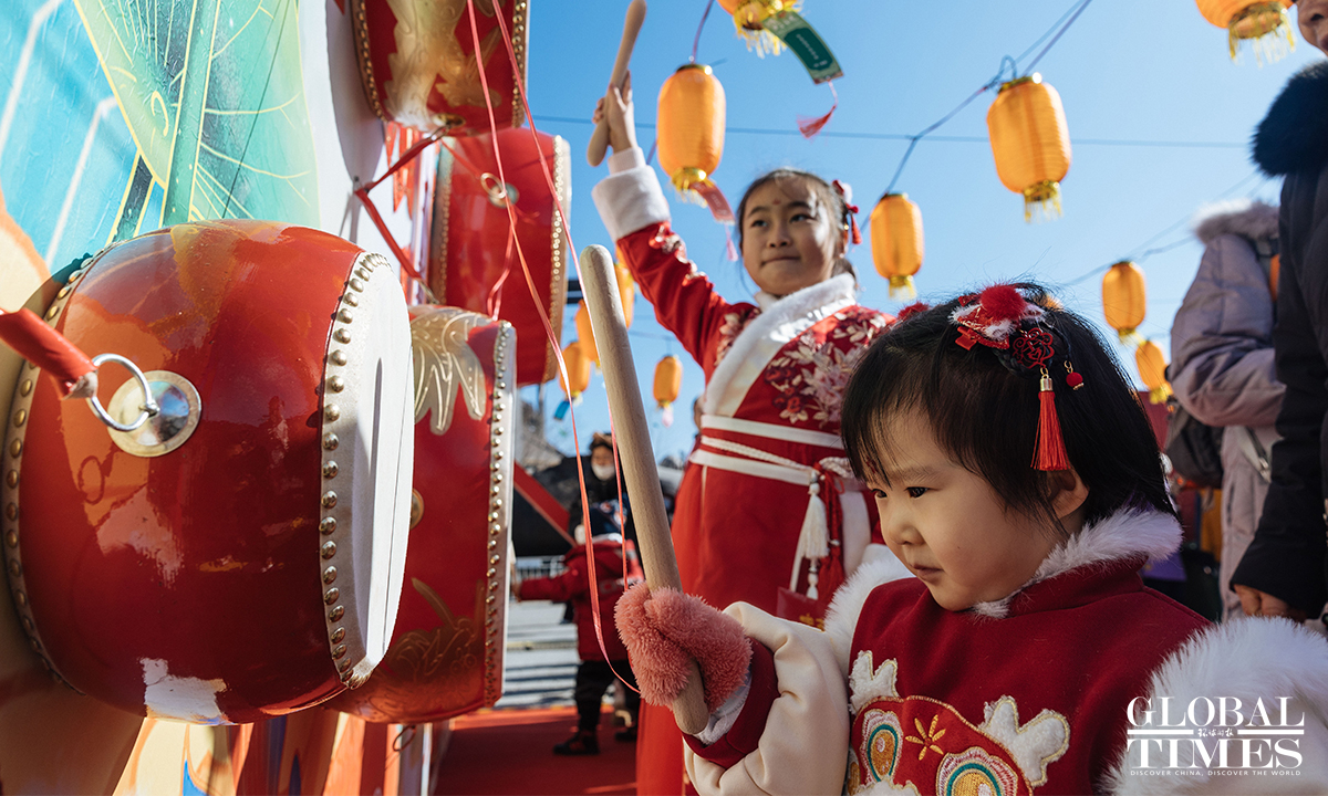 Temple fairs are being held in Beijing during the Year of the Dragon Spring Festival. At Shougang Park, industrial heritage seamlessly blends with cyberpunk China-chic, offering a unique experience that merges folk customs with fashion trends. Dragon-themed sculptures adorn the Moshikou cultural block, inviting visitors to take part in the "Dragon Quest" and collect blessings via themed stamp collections. (Photos: Li Hao/GT)