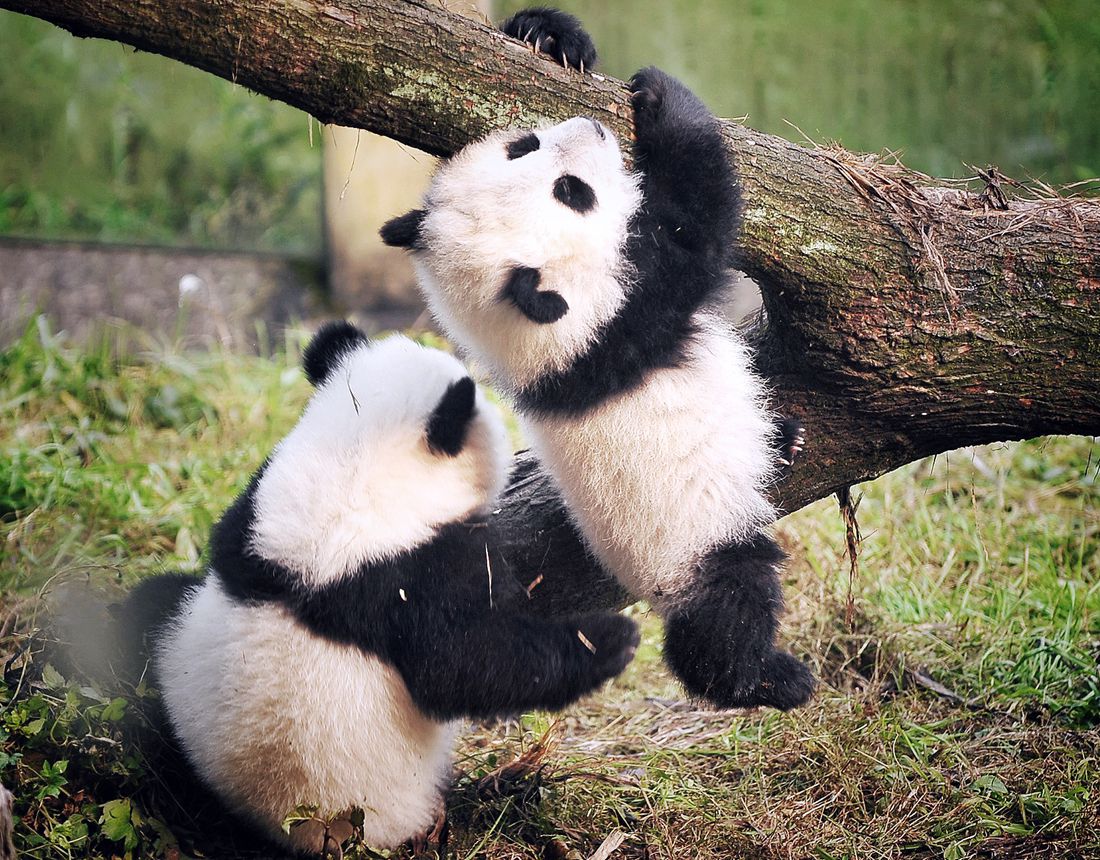 The 6-month-old panda twins play in Southwest China’s Chongqing Zoo on January 22, 2017. Photo: CFP