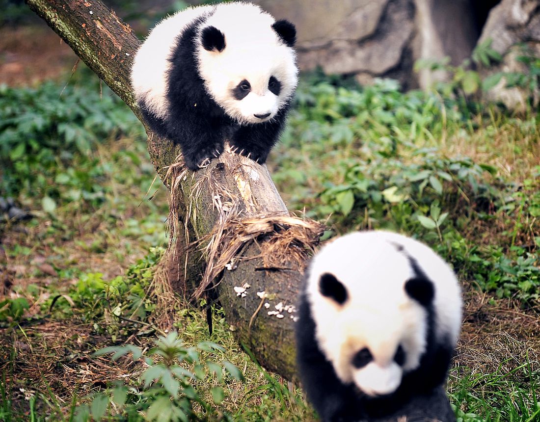 A pair of giant panda twins made their debut at Southwest China’s Chongqing Zoo on January 22, 2017. The 6-month-old boy and girl twins have become A-list celebs at the zoo since their birth in July. Photos: CFP