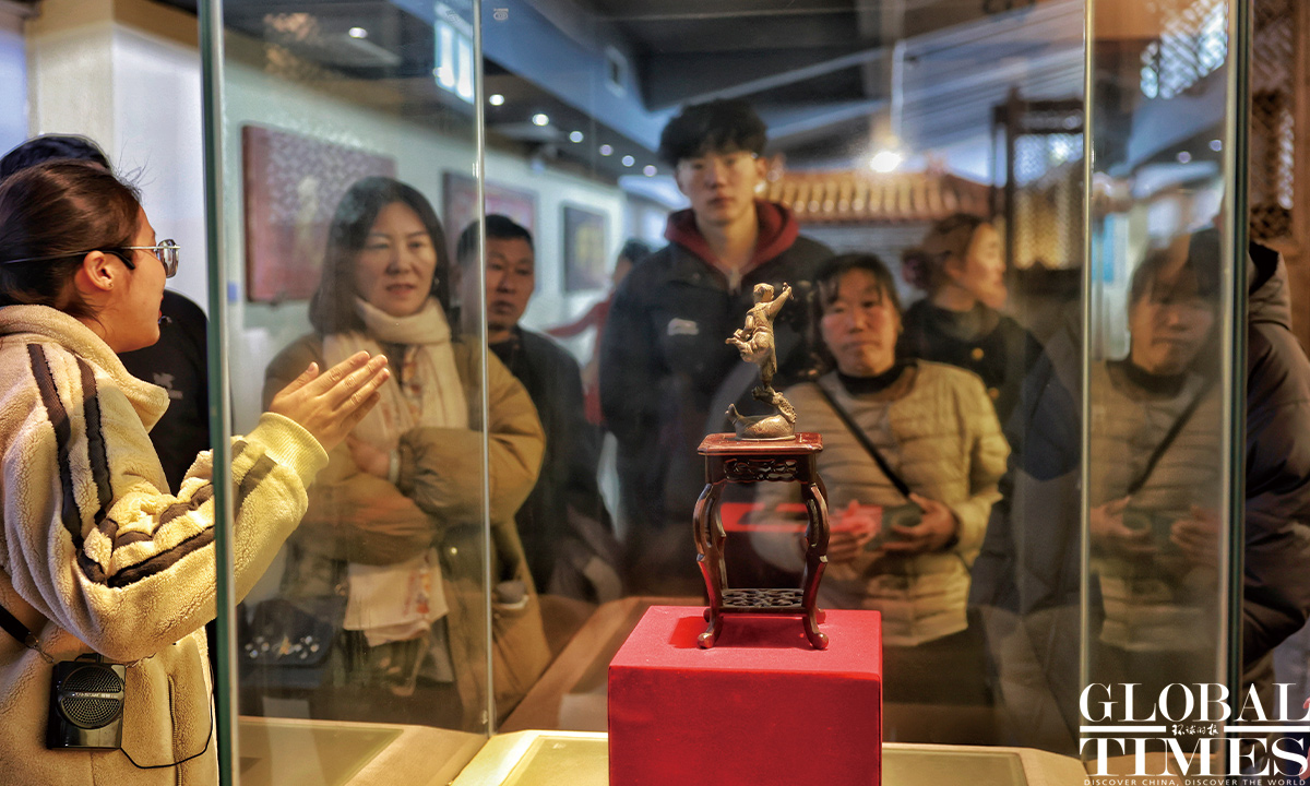 During the Spring Festival holidays, museums across China have launched themed exhibitions and cultural activities for the Year of the Dragon, making them popular tourist destinations. Major museums in Nanjing and Xuzhou, in East China’s Jiangsu Province, sold out their tickets early in the holiday, allowing visitors to have a close experience of the profound Chinese history and traditional culture. Photos: Li Hao/GT