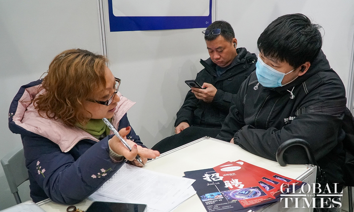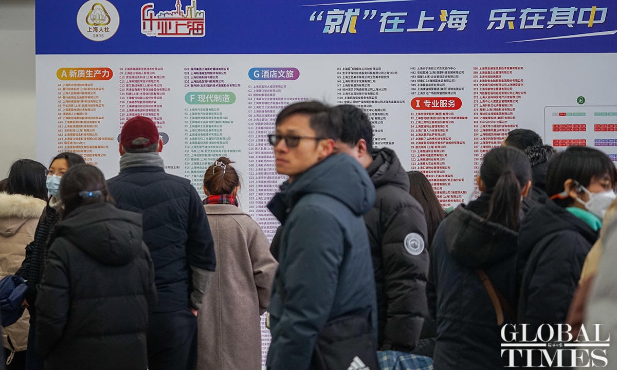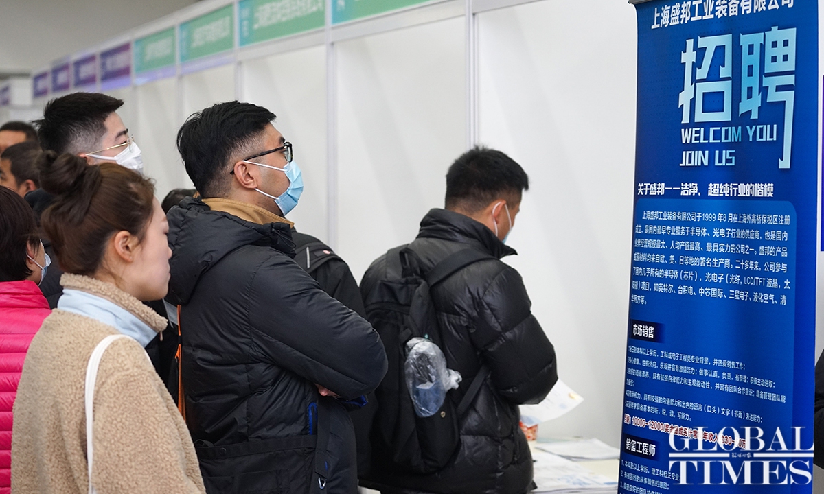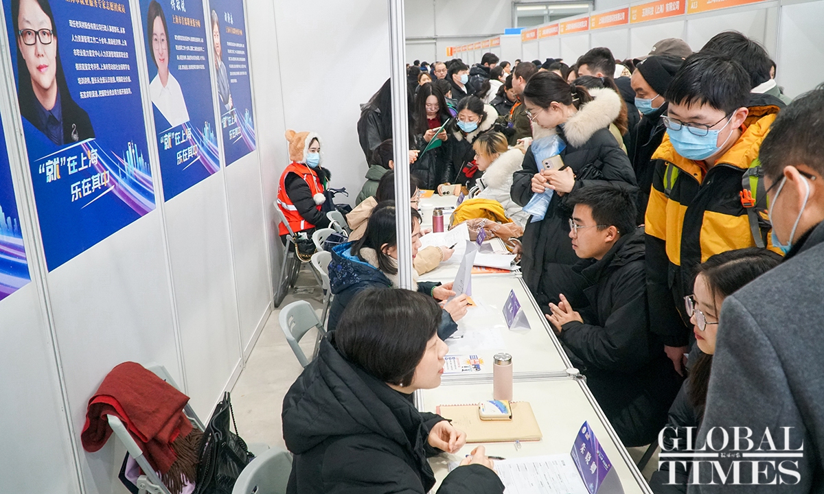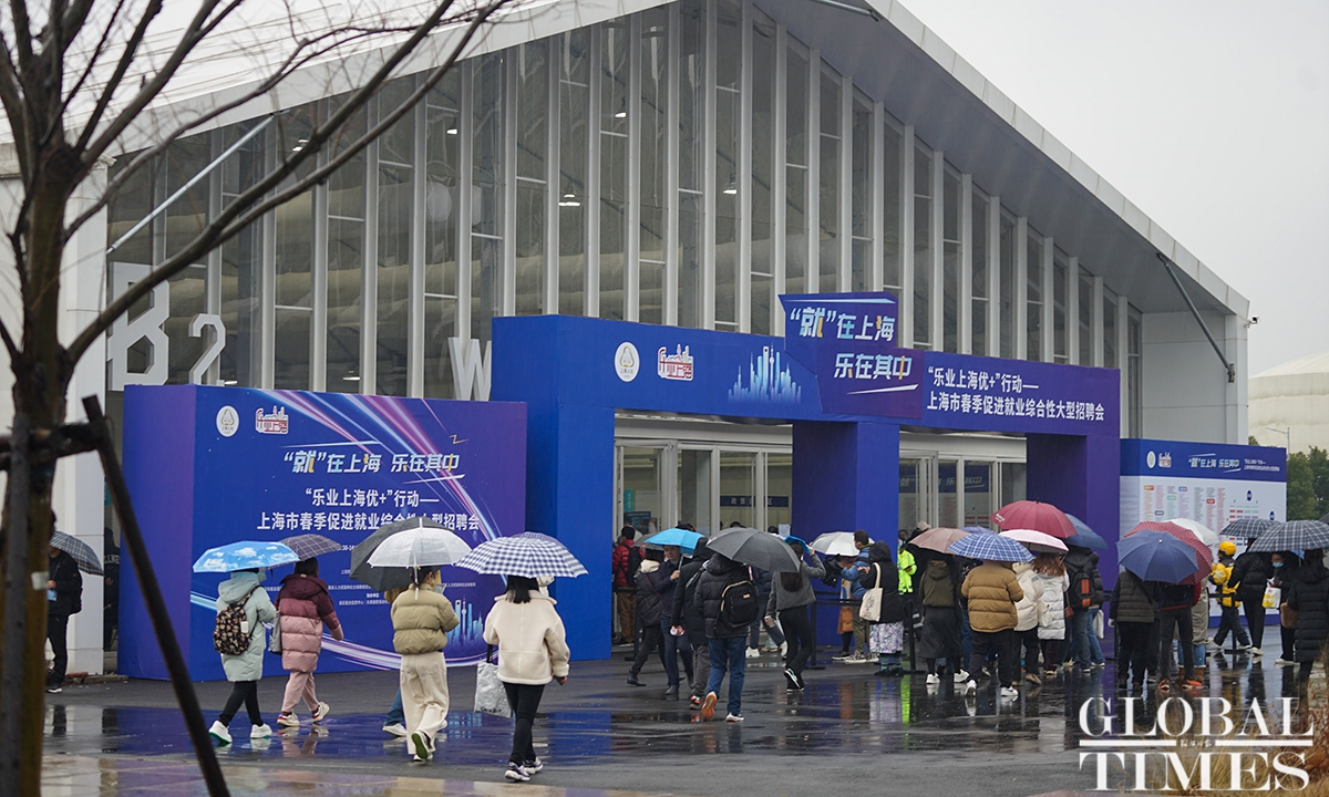 A large-scale spring season job fair kicks off in Shanghai on Saturday, with more than 10,000 job openings offered by more than 500 enterprises. Photos: Lu Ting/GT