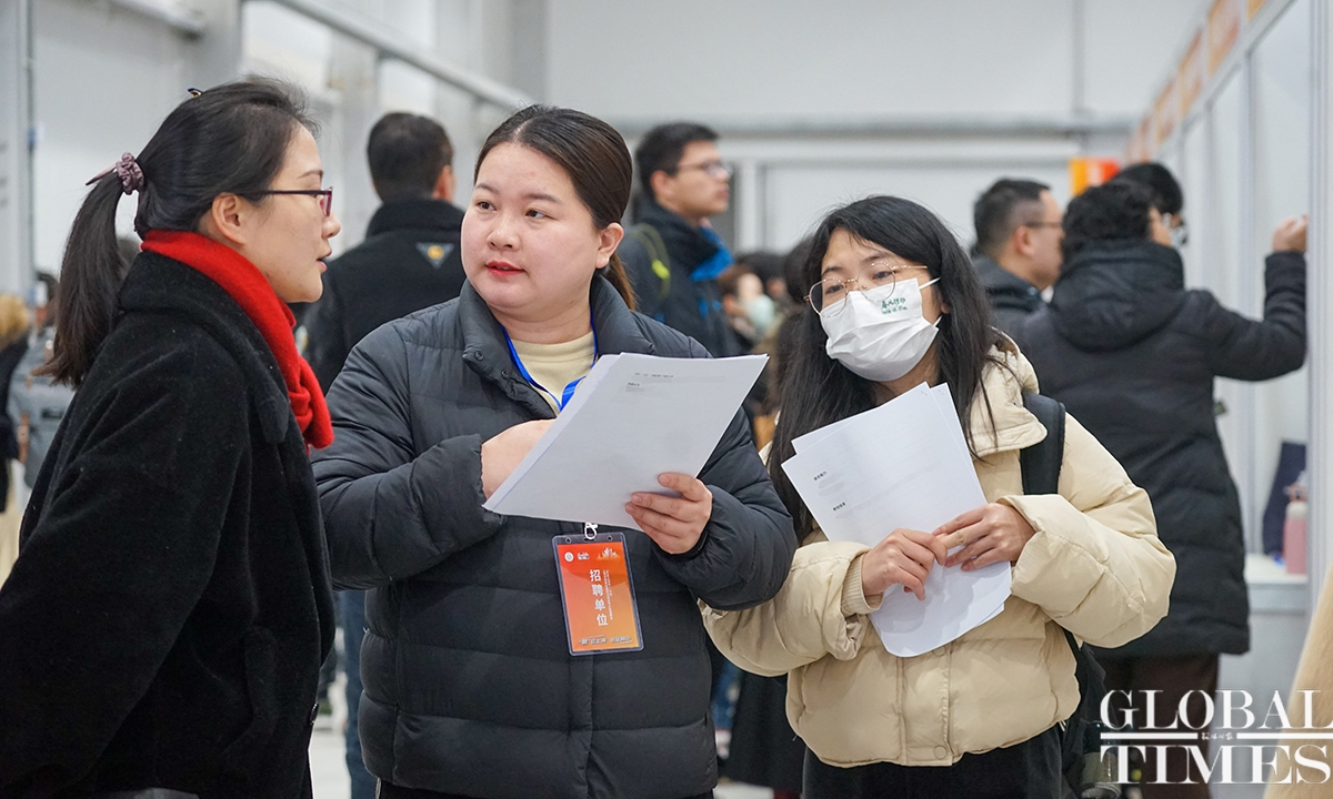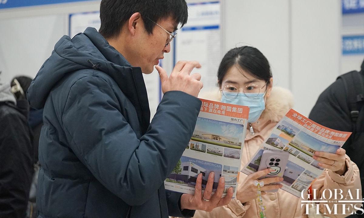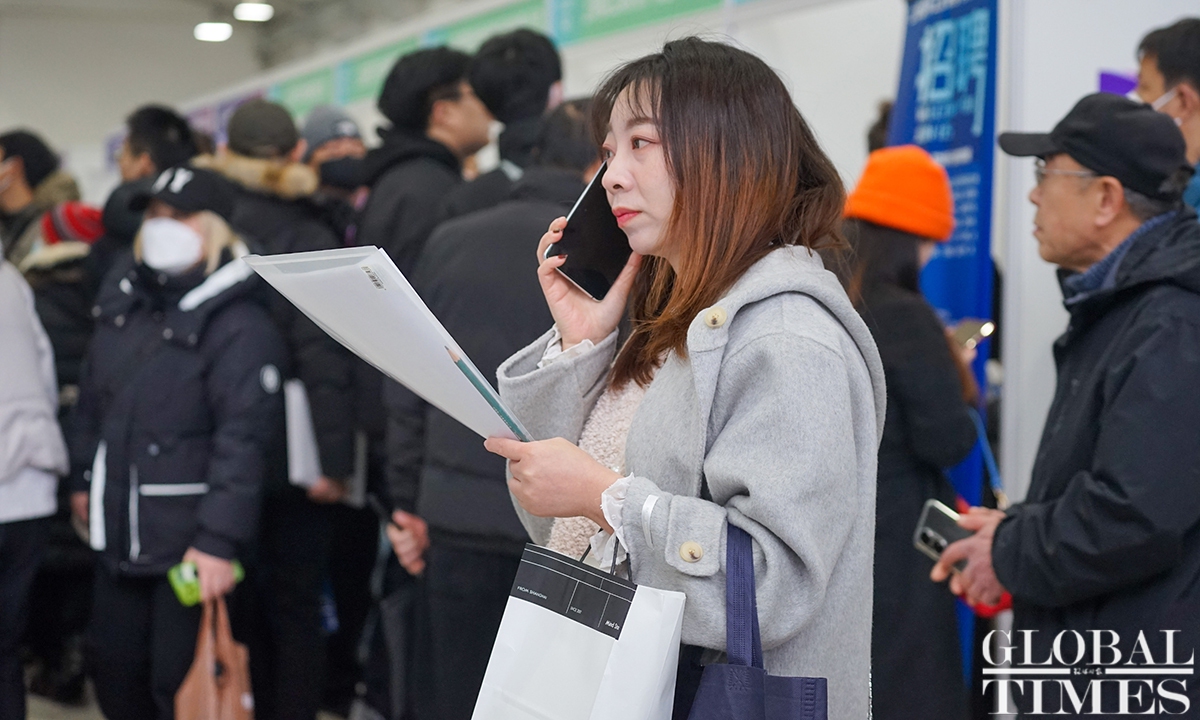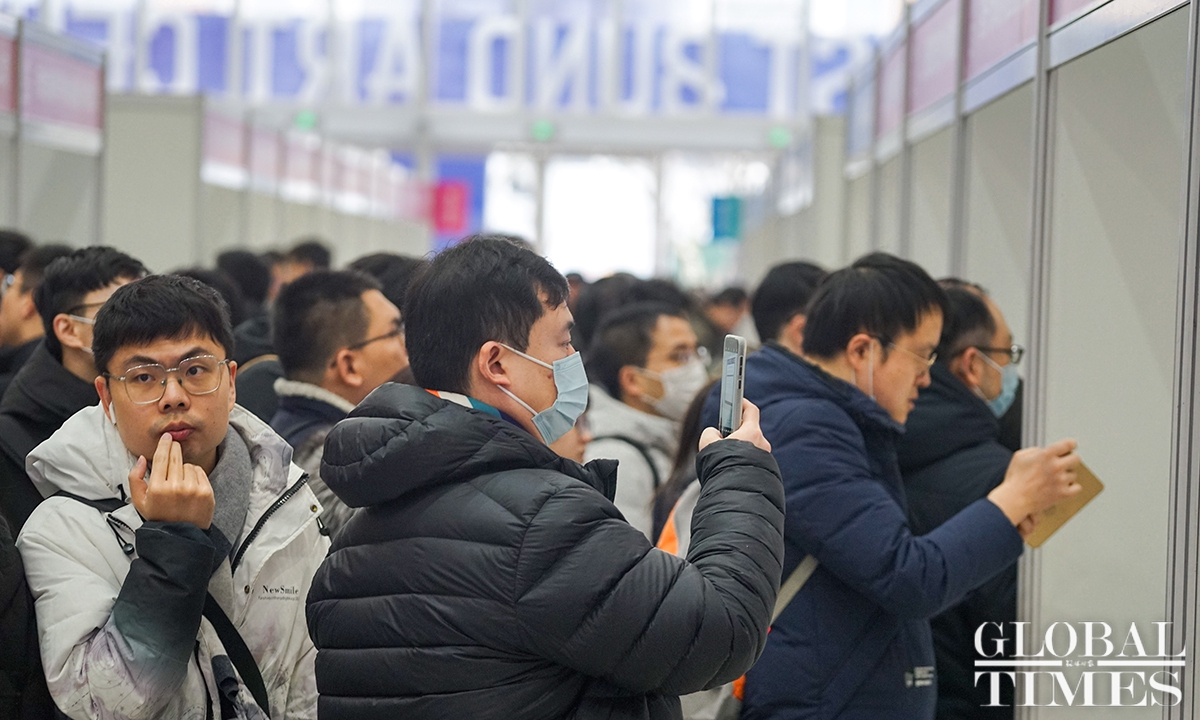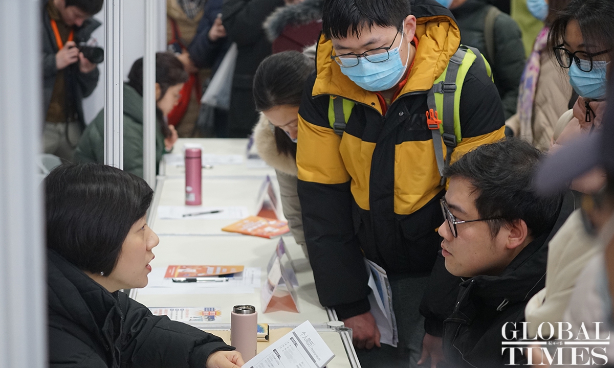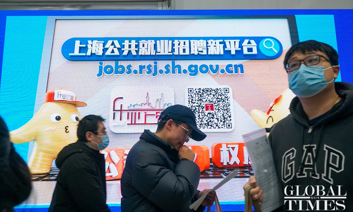 A large-scale spring season job fair kicks off in Shanghai on Saturday, with more than 10,000 job openings offered by more than 500 enterprises. Photos: Lu Ting/GT