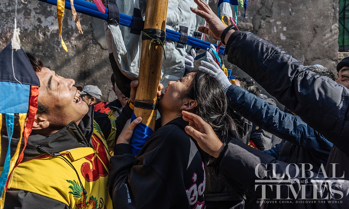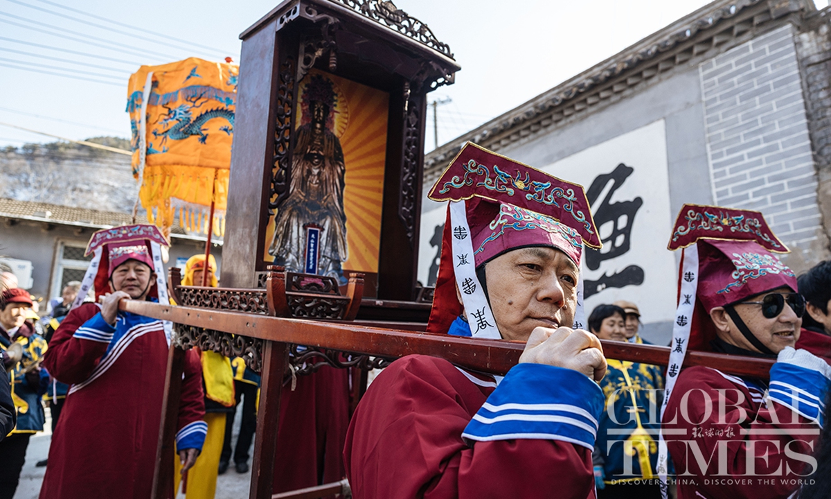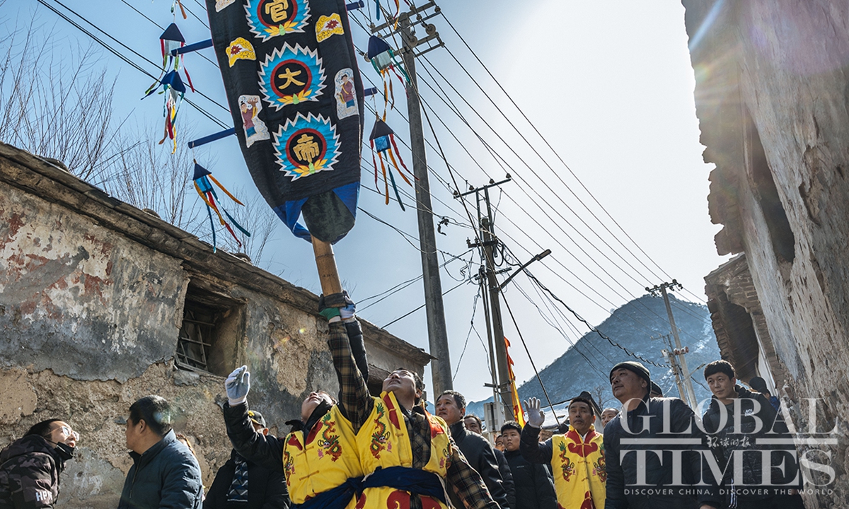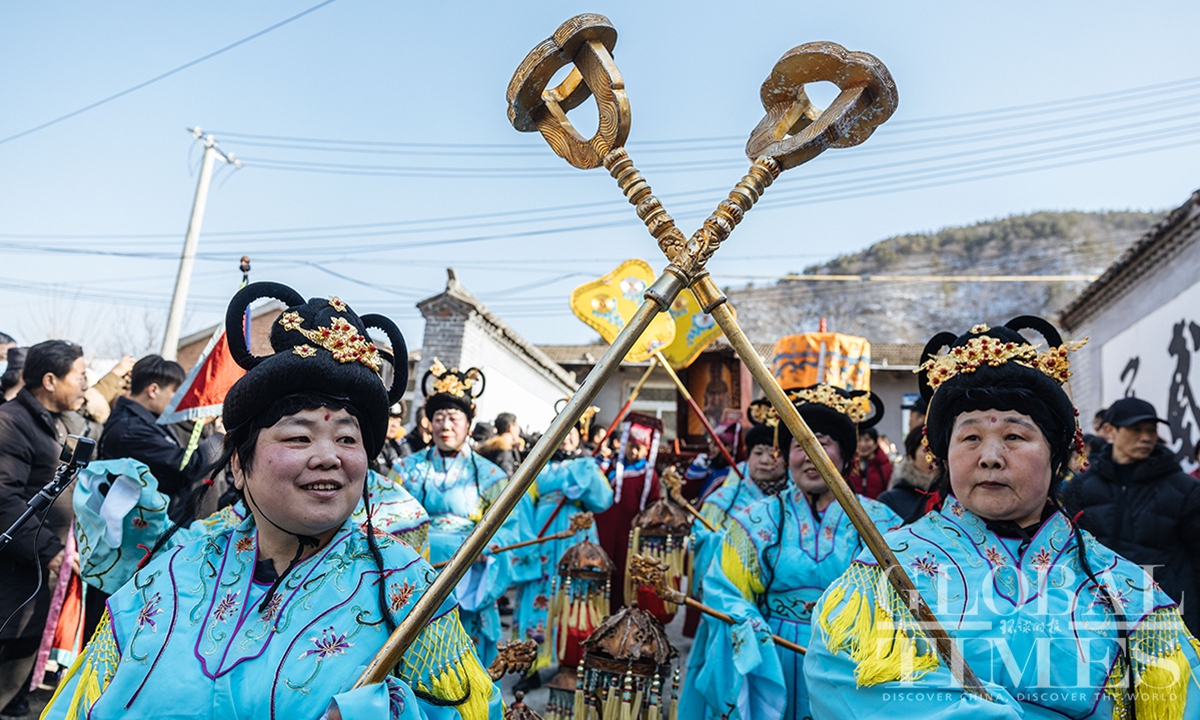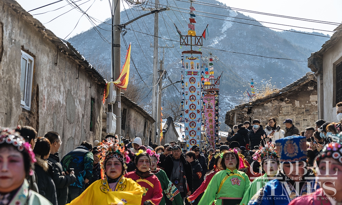 In 2023, Mentougou District suffered severe flooding, which washed away many of the festival's hardware facilities. After reconstruction efforts by the village committee, this year's festival resumed as scheduled. On the afternoon of the Lantern Festival, flags flew high, festive music filled the air, and elderly artists joined villagers in celebrating the joyous occasion. (Photo: Li Hao/GT)