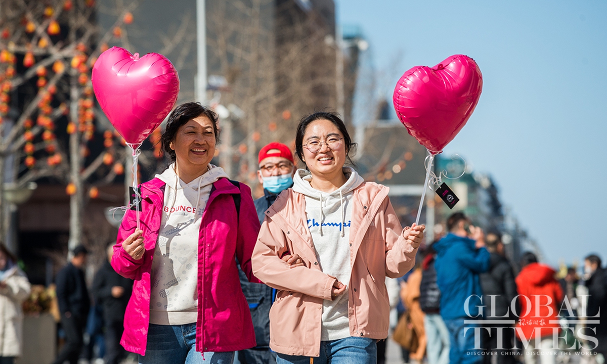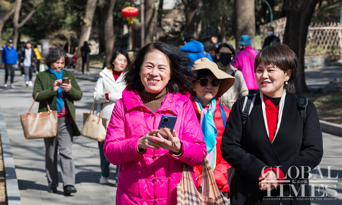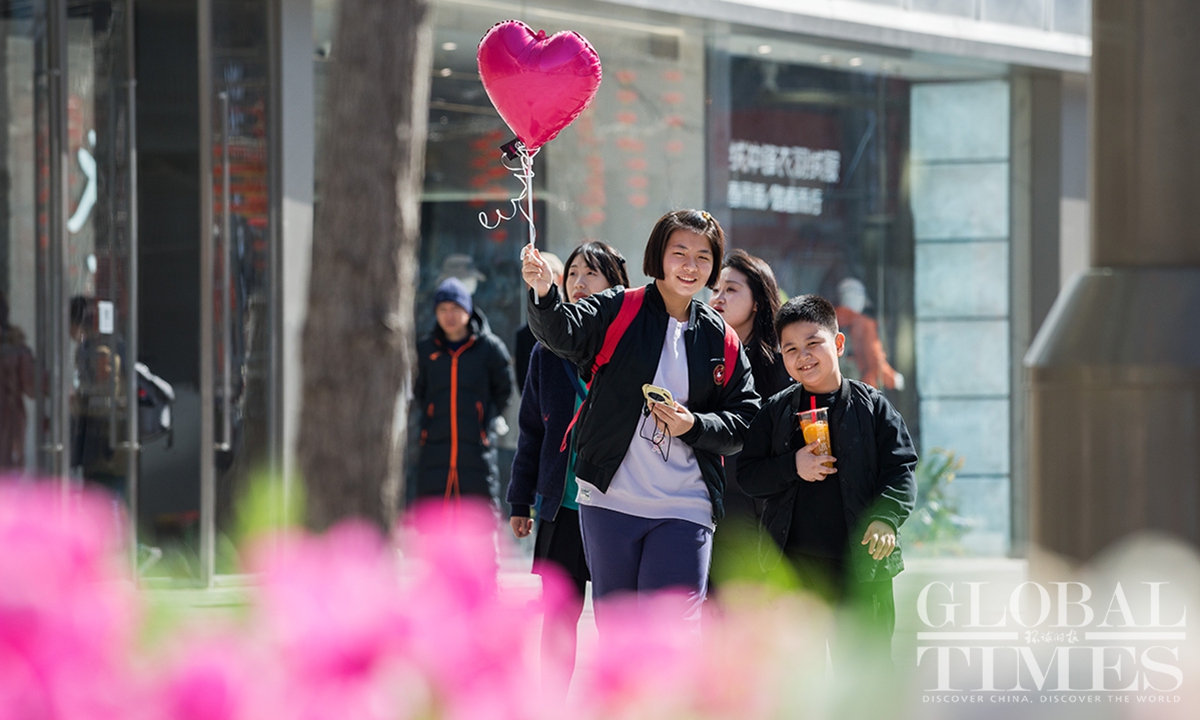 On International Women's Day, March 8, women receive a half-day break according to the national regulations. Several scenic spots in Beijing announced free admission or discounts for women on the day. Moreover, various shopping districts organized discount and promotional activities tailored for female customers. Spending quality time with close friends, either visiting parks or going shopping, has become a feature of this half-day holiday.(Photo: Chen Tao/GT)