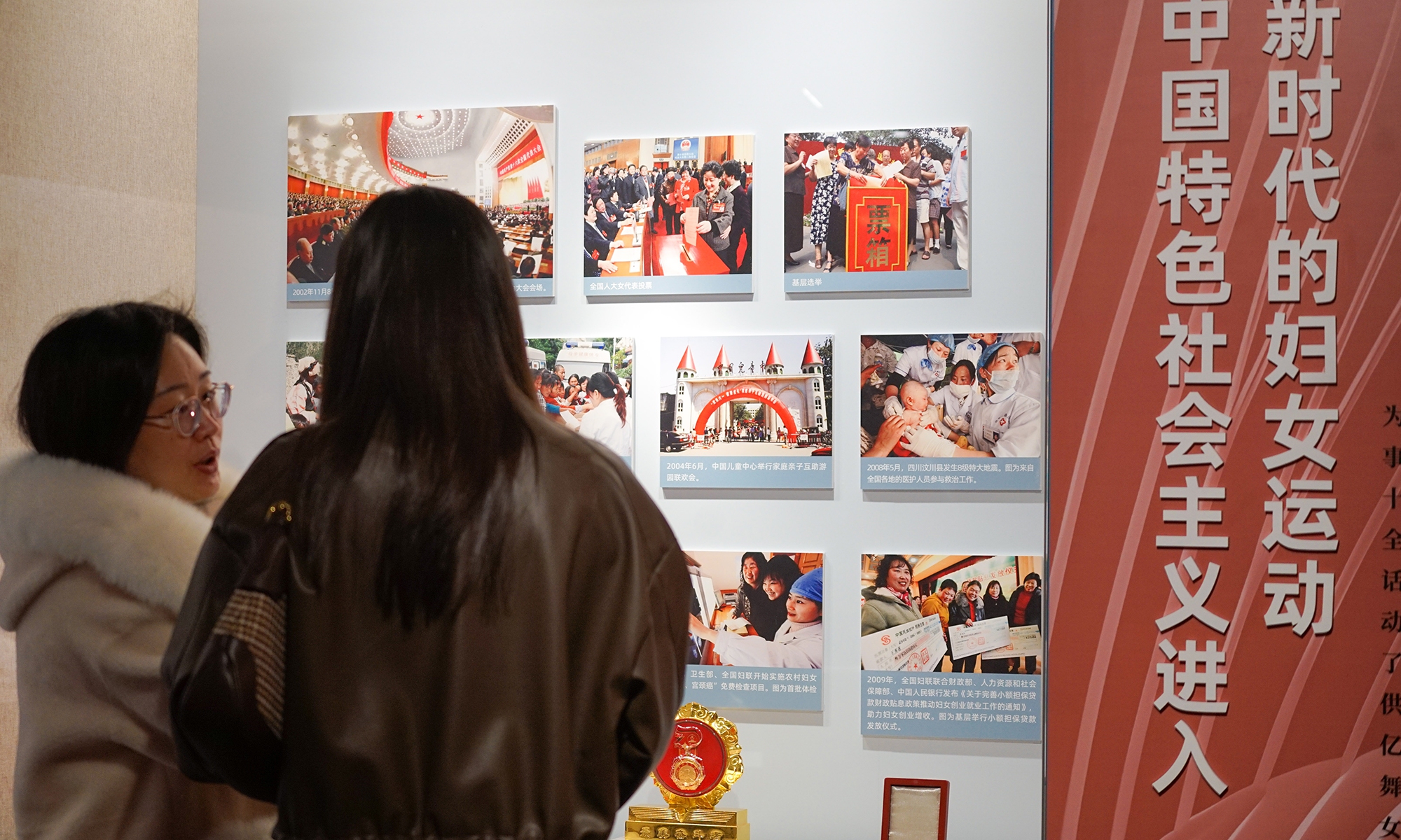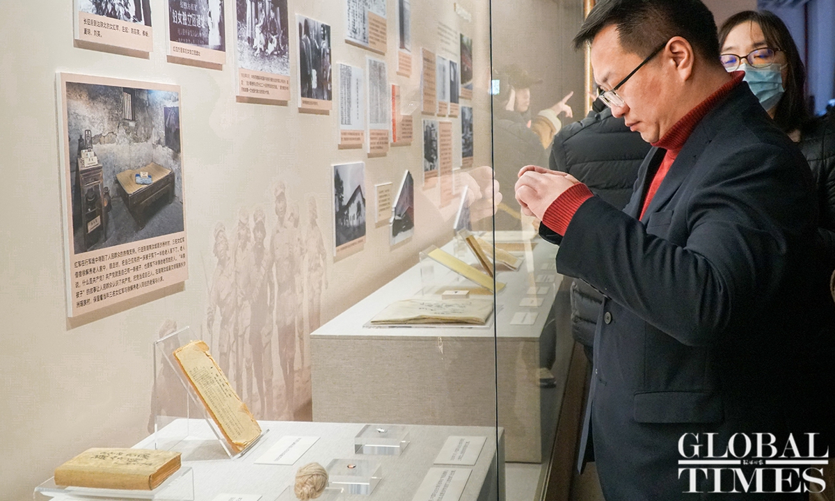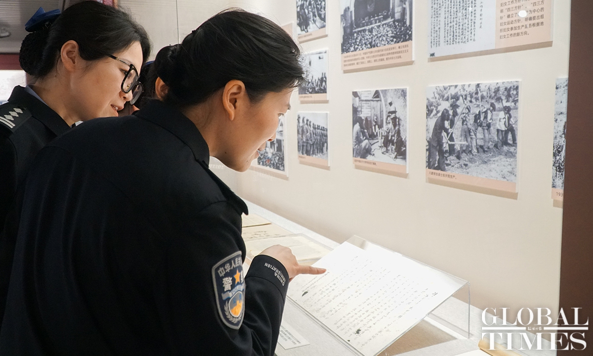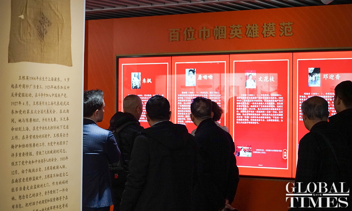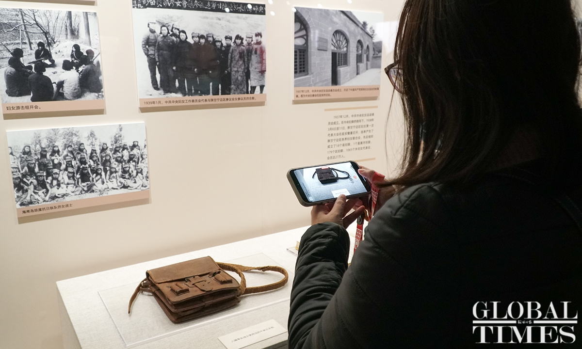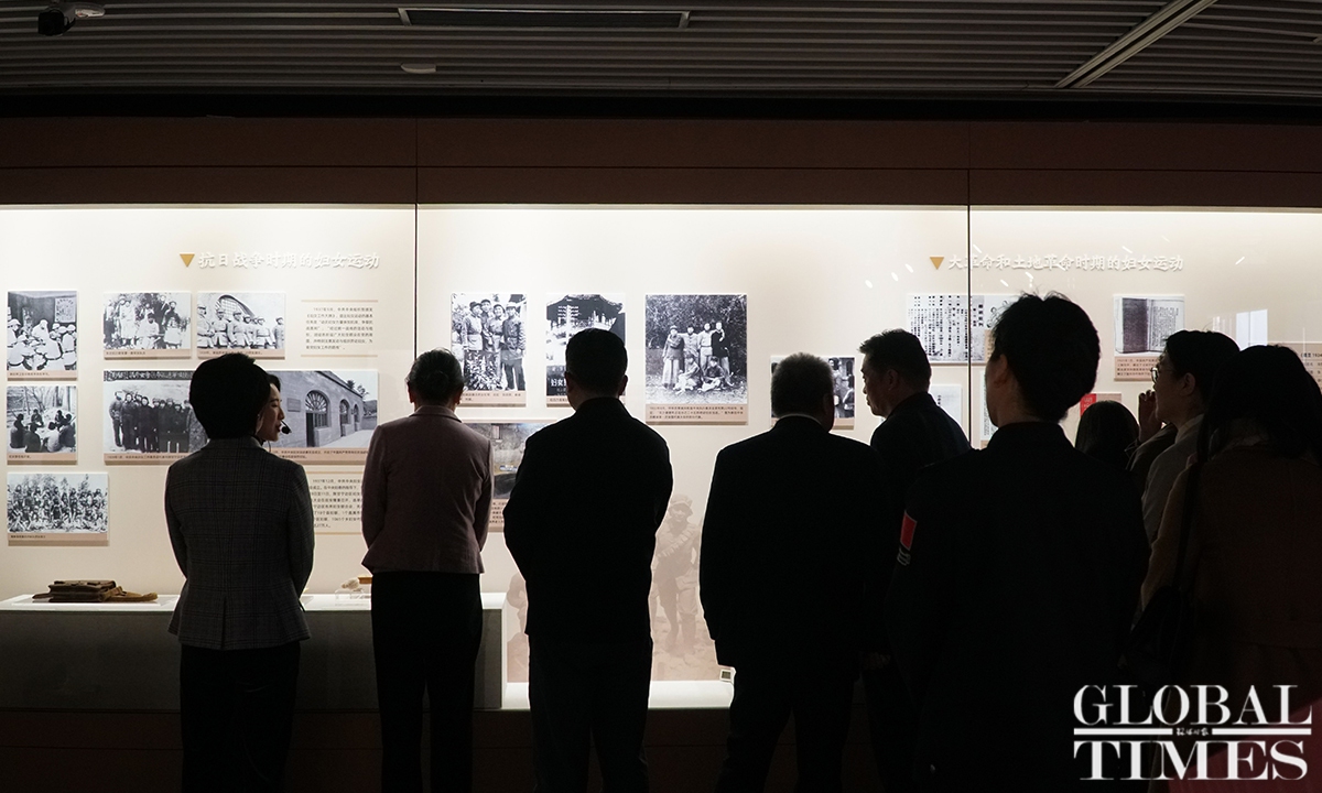 In China, there is a saying: “Women hold up half the sky.” An exhibition, which highlights Chinese women’s contributions over the past century, kicked off at the Memorial Hall of the First National Congress of the Communist Party of China (CPC) in Shanghai on Tuesday. Cohosted by the Memorial Hall and China National Museum of Women and Children, the exhibition showcases some 50 sets of valuable objects, and numerous photos and documents, which together show visitors the important roles that women play in the CPC’s development as well as China’s revolution, construction and reform. (Photos: Lu Ting/GT)