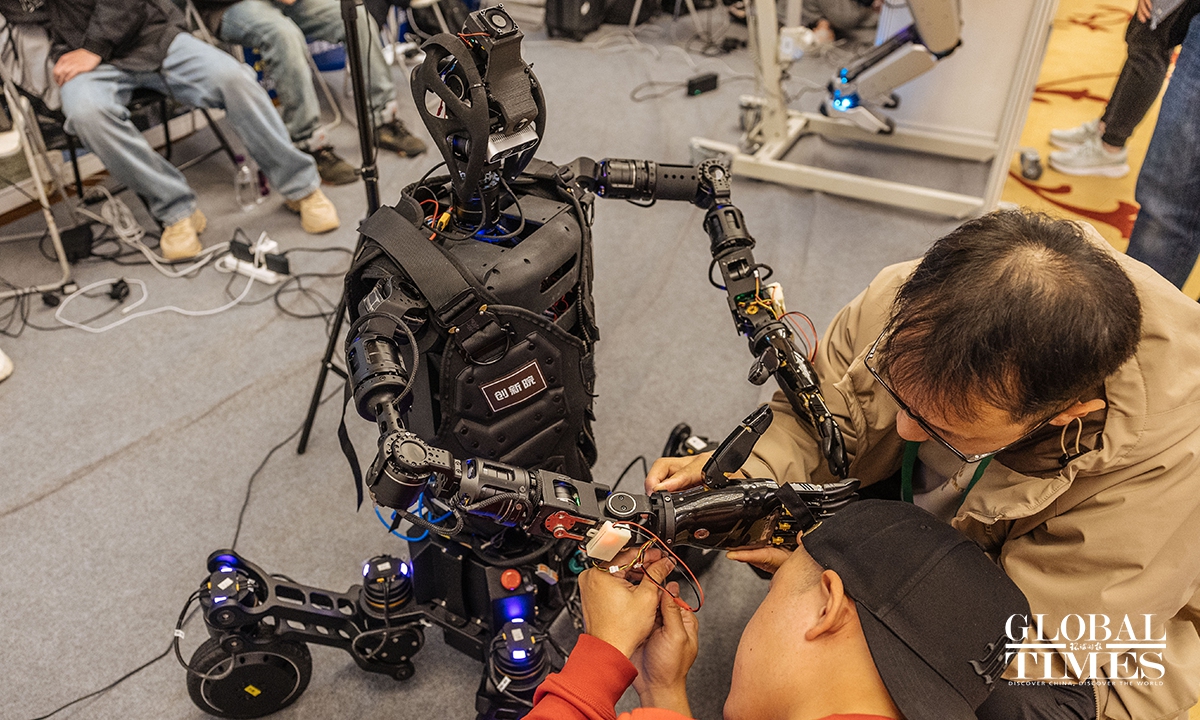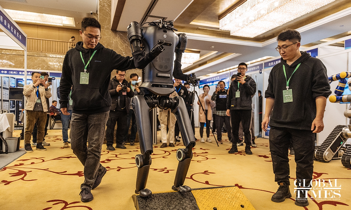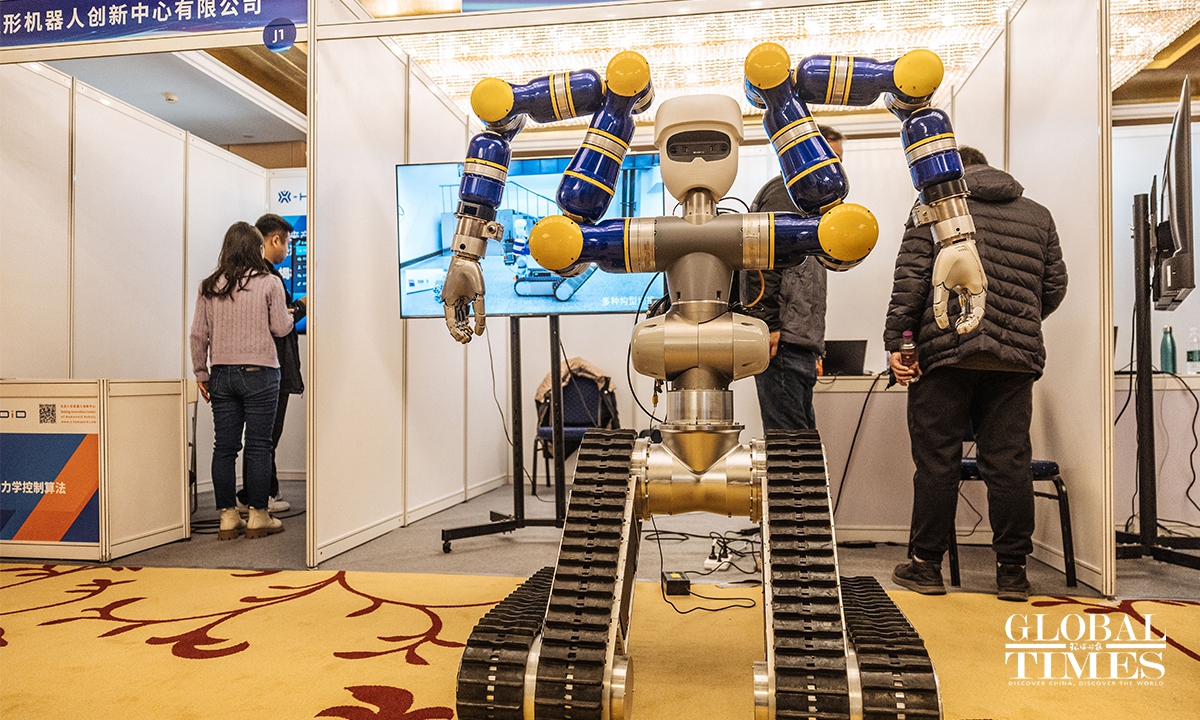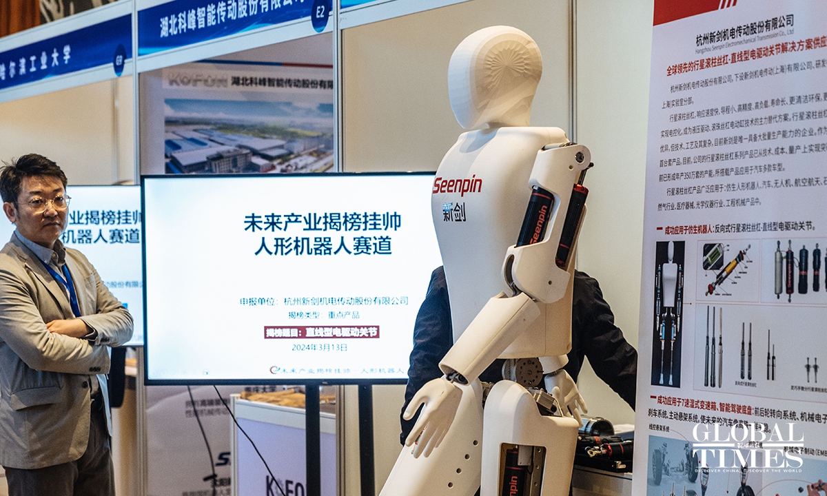 A humanoid robot competition hosted by the Chinese Institute of Electronics kicked off in Beijing on March 13. More than 120 projects participate in this competition, covering domestic leading enterprises, universities and research institutes in various fields, including complete humanoid robots, core components, algorithm softwares, inspection and testing. This is a top competition among the leaders in various fields of humanoid robots in China. Photos: Li Hao/GT