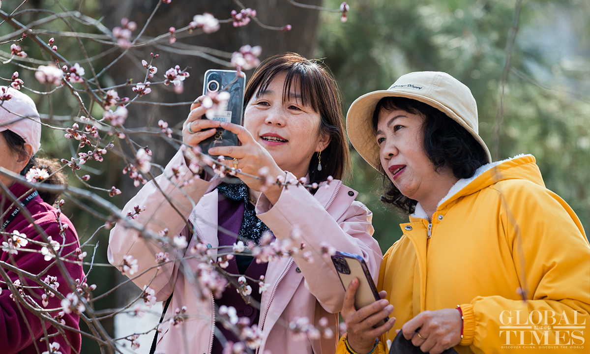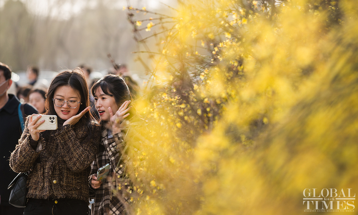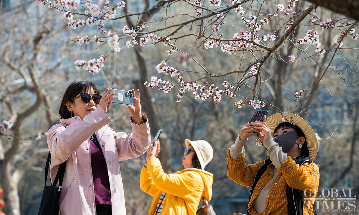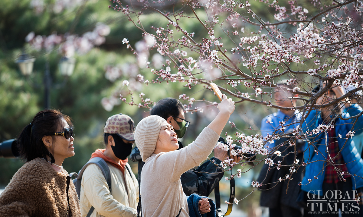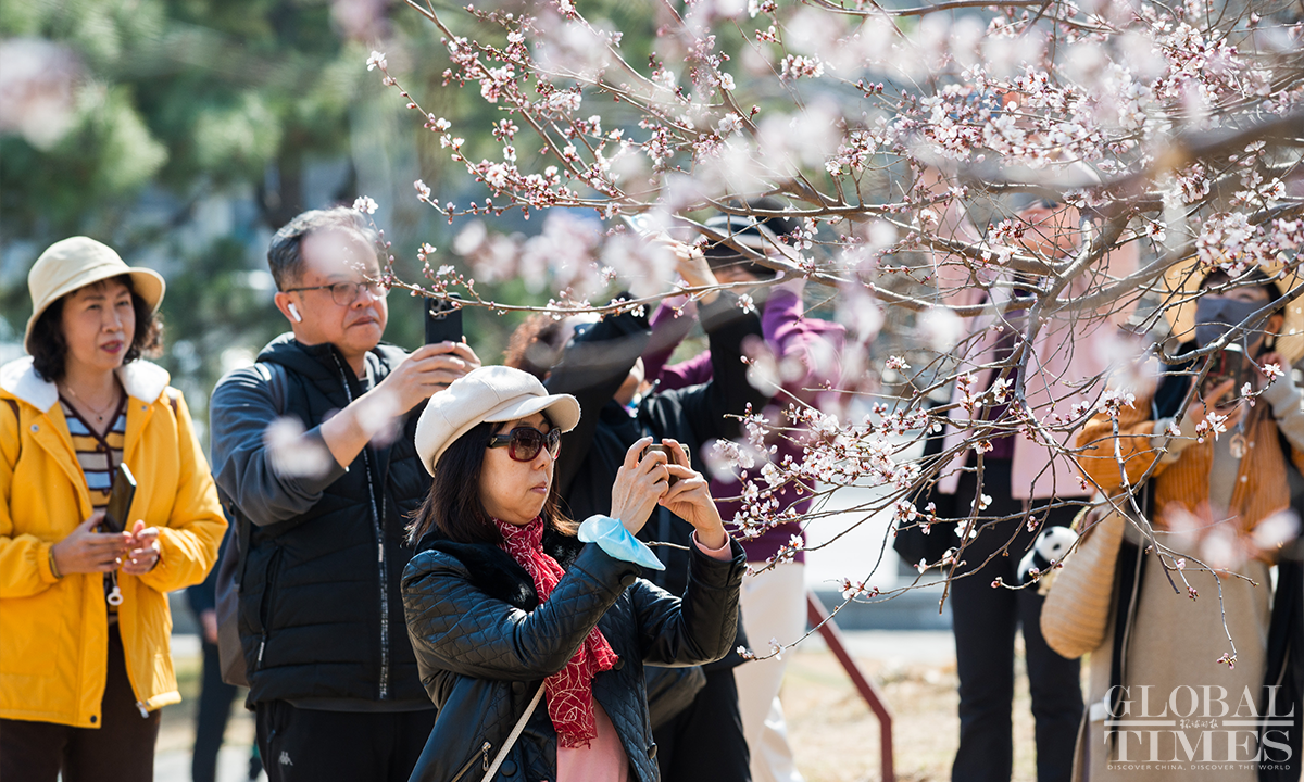 On March 17, 2024, as the temperature gradually rises, early spring flowers such as wintersweet, peach blossoms, winter jasmine, and magnolias are blooming brilliantly in various parks in Beijing, welcoming numerous visitors to enjoy the scenery. With the arrival of the Spring Equinox, Qingming Festival, and Grain Rain, from mid-March to early May, Beijing begins to enter its best flower viewing season. Photos: Chen Tao/GT
