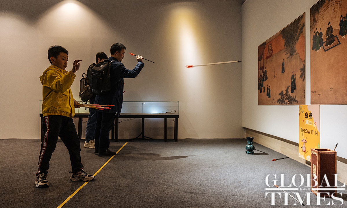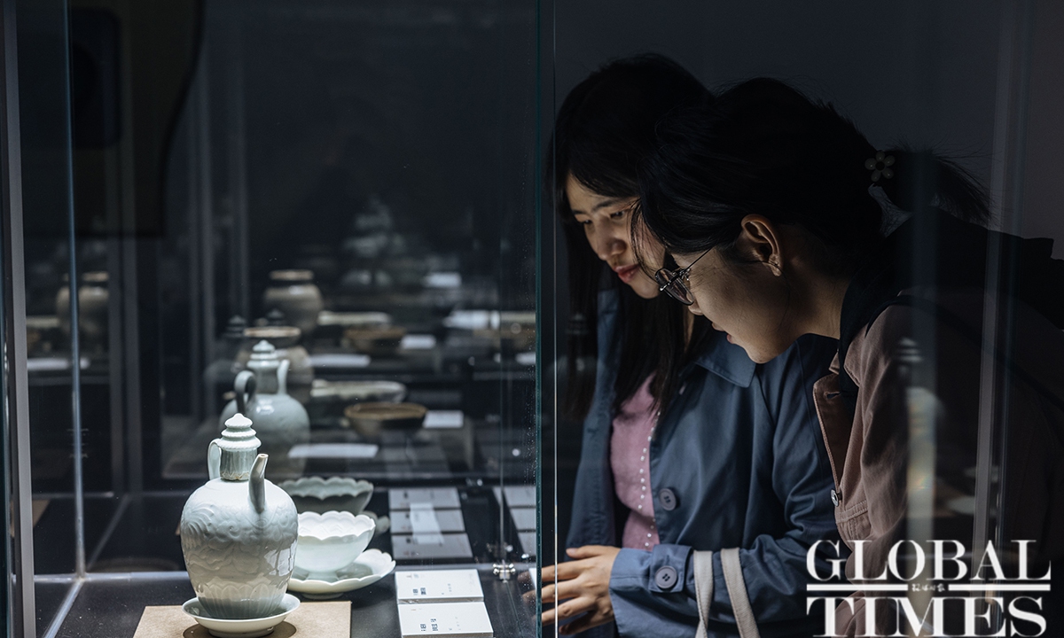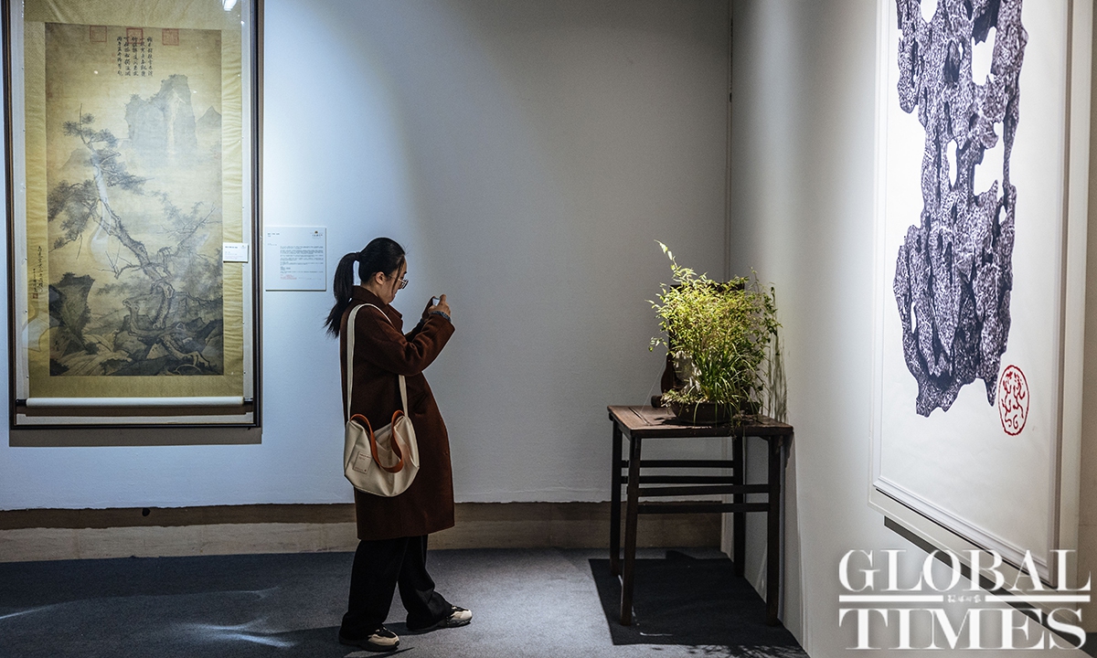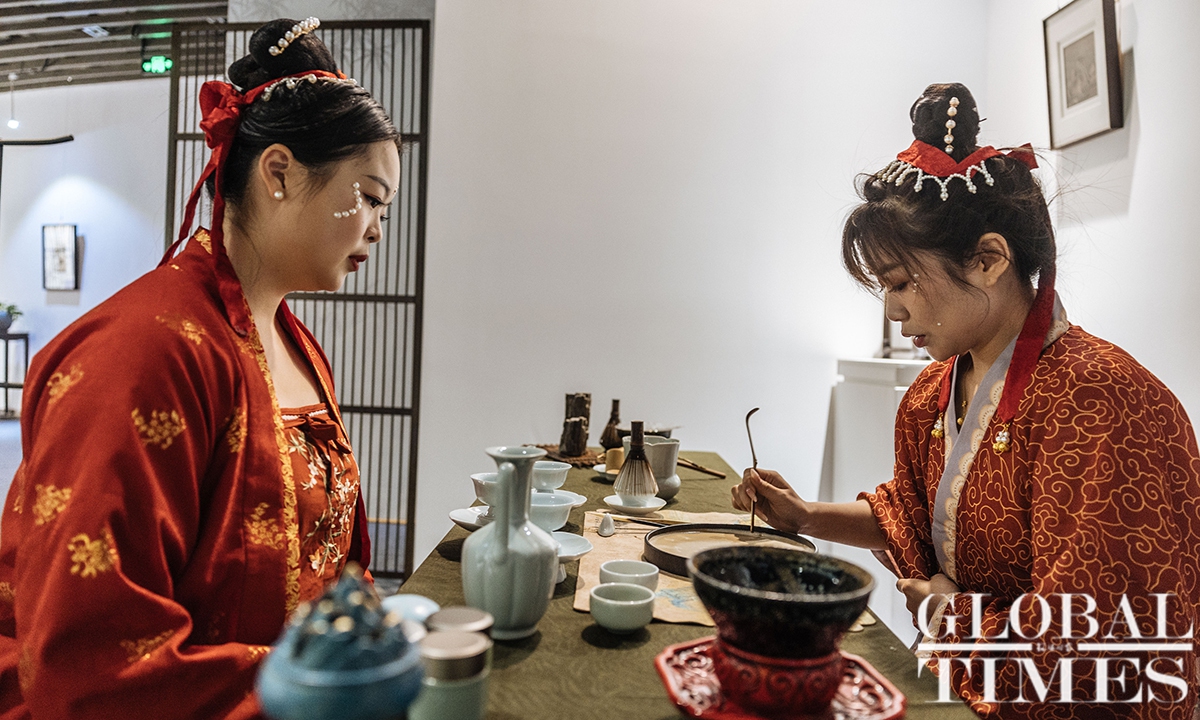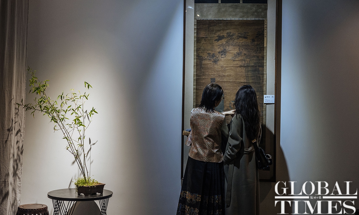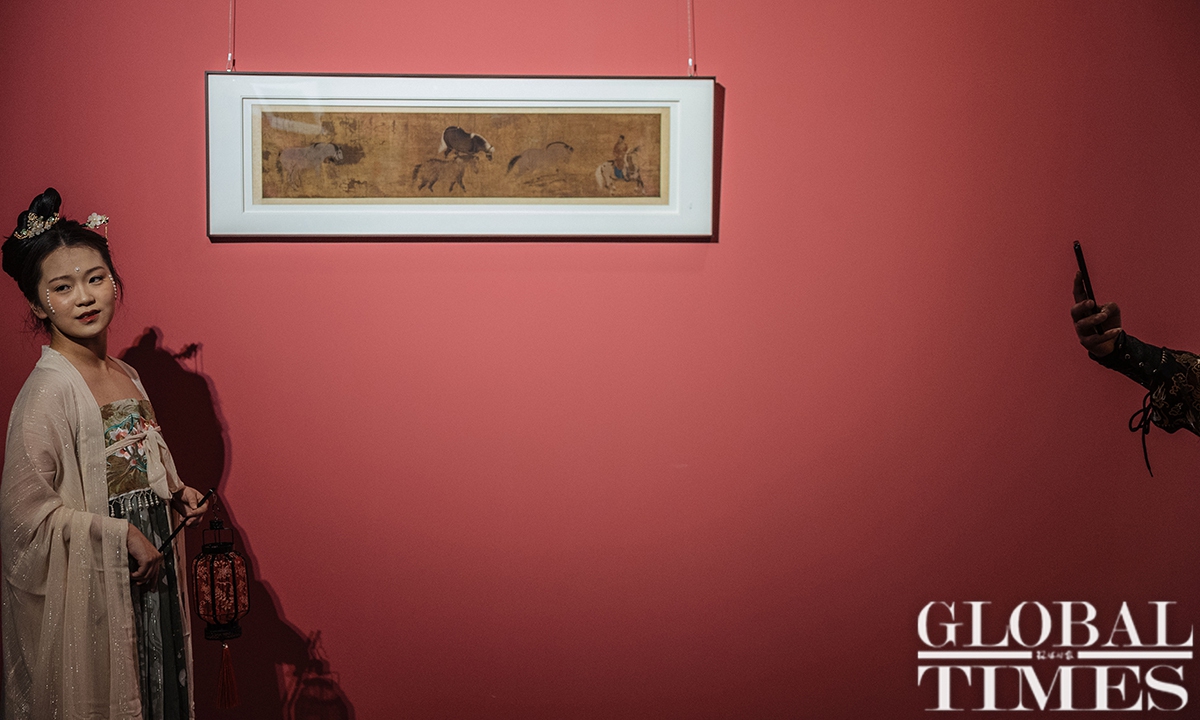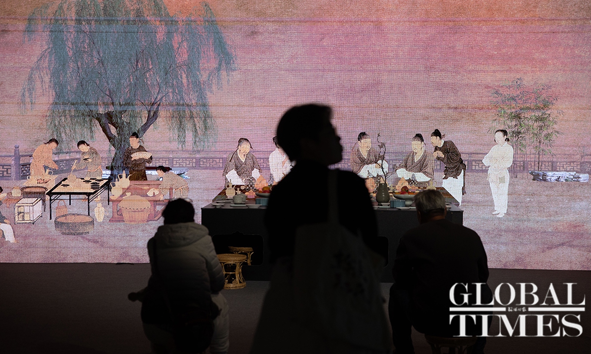 An art exhibition named “See You Again, Huizong” displaying various types of artworks of the Song Dynasty (960-1127) and Yuan Dynasty ((1279-1368) was held at Beijing's China Millennium Monument Museum on Saturday. Visitors fully experienced the cultural and artistic connotations of the Song Dynasty as a historical peak of aesthetic beauty through over a hundred art pieces from the two periods, including porcelain, paintings, Song lyrics, music, and the tea culture.Photos: Li Hao/GT