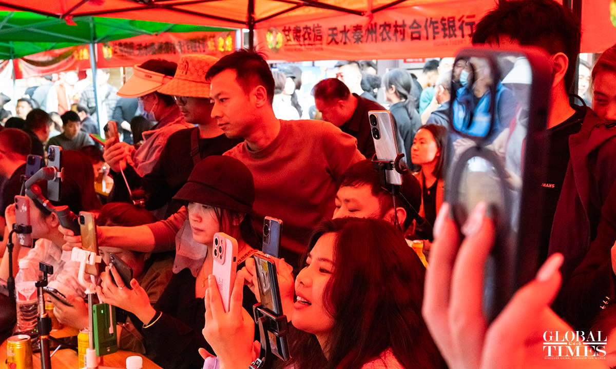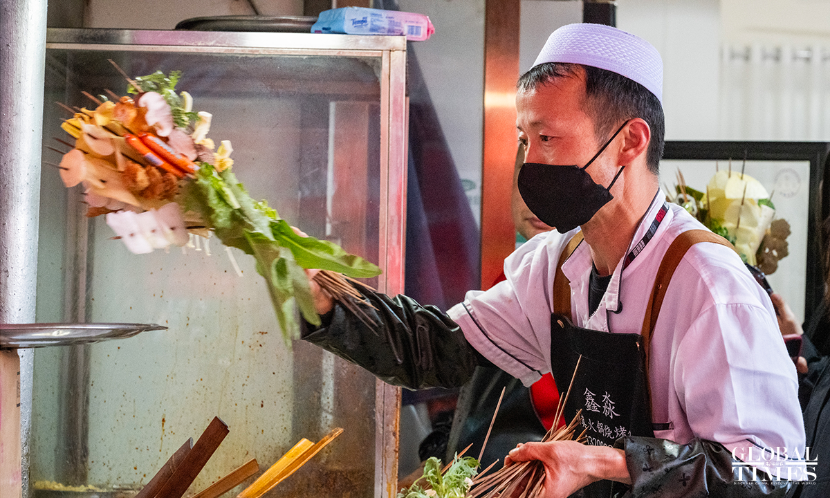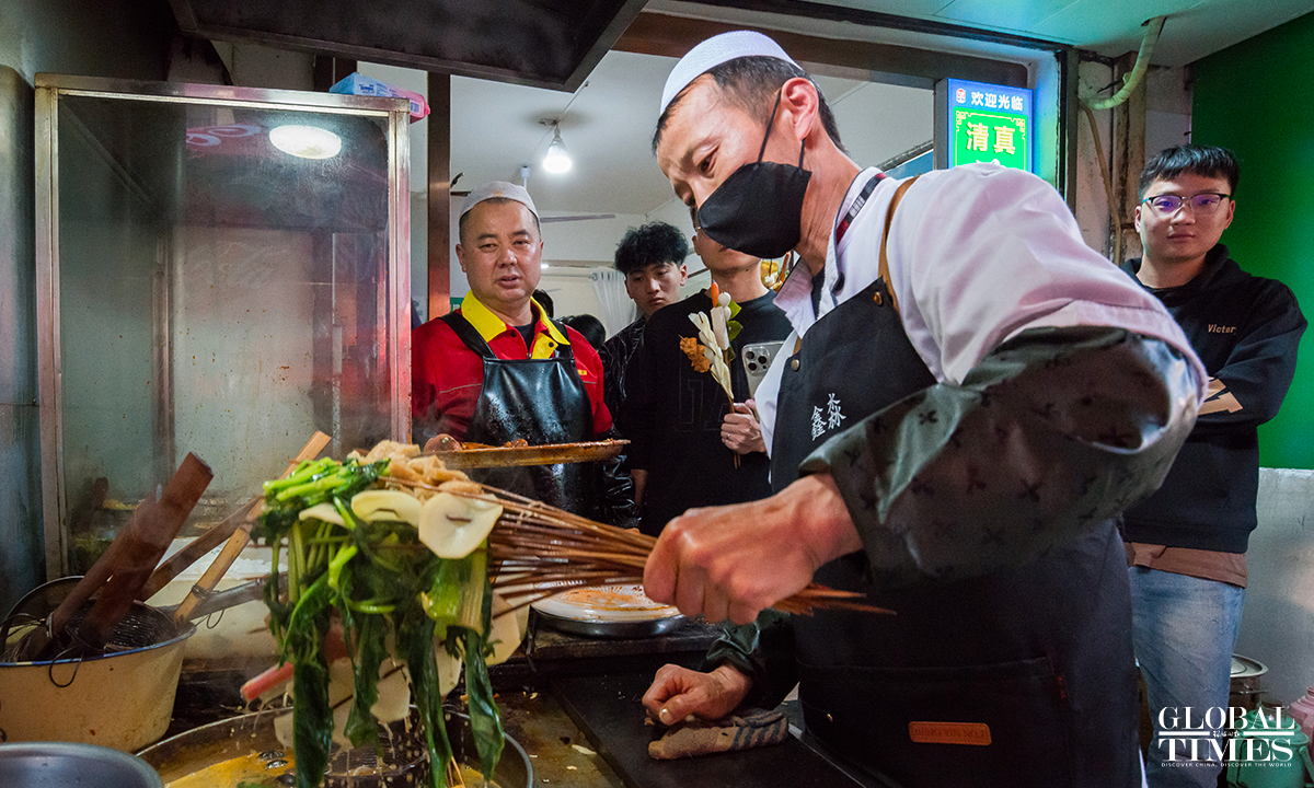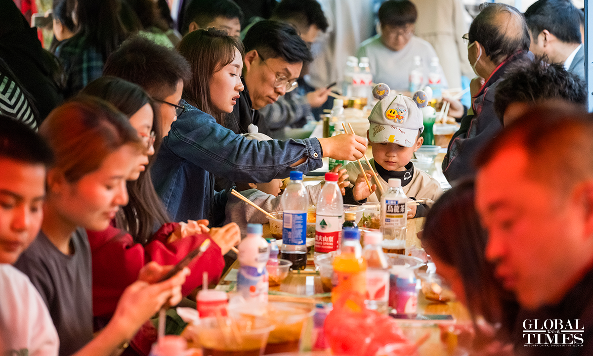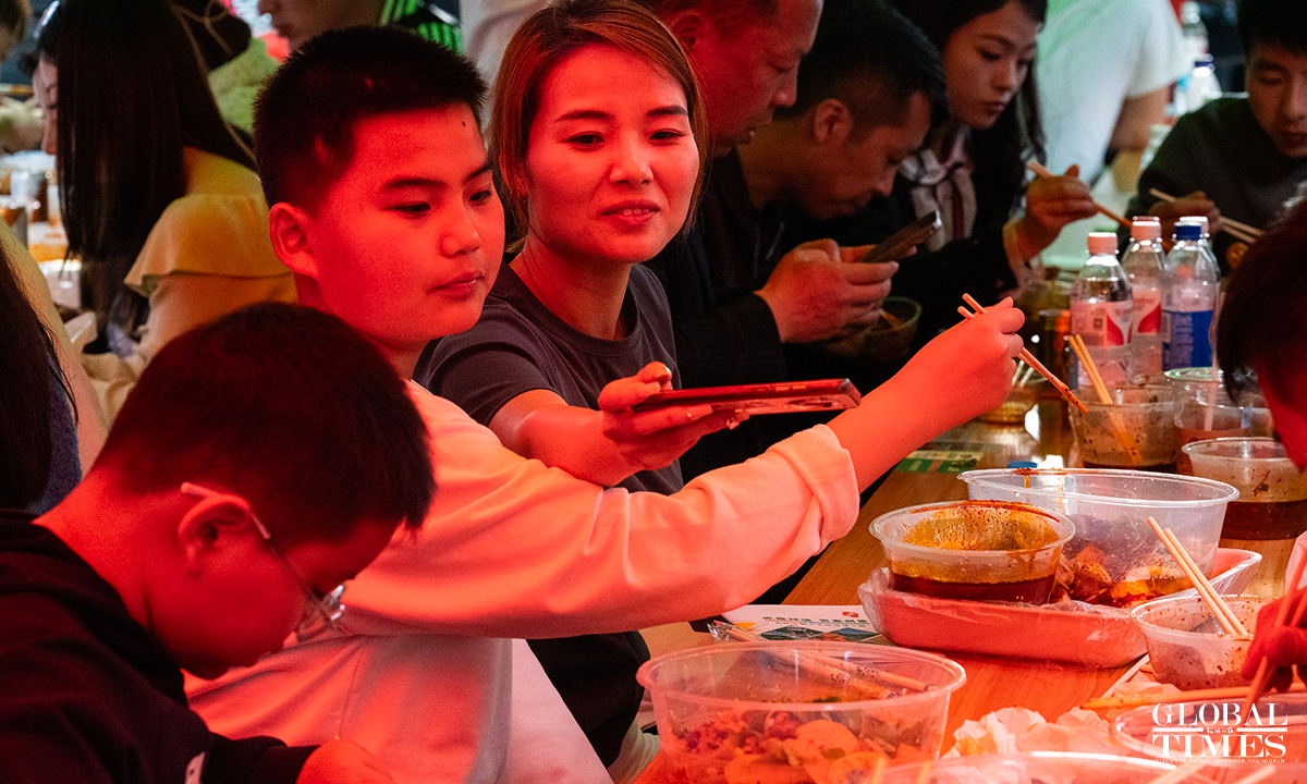 "Tianshui Malatang," a type of street hotpot variation native to Tianshui, Gansu Province, has gone viral online in March 2024. Its essence lies in the "Gangu chili," produced in the city's Gangu County. "Siheyuan" is currently the most popular Malatang street. In pursuit of improved tourist services, new measures such as volunteer guides have been introduced here in the recent 10 days, shaping a well-ordered Malatang "microcosm." Photos: Chen Tao/GT