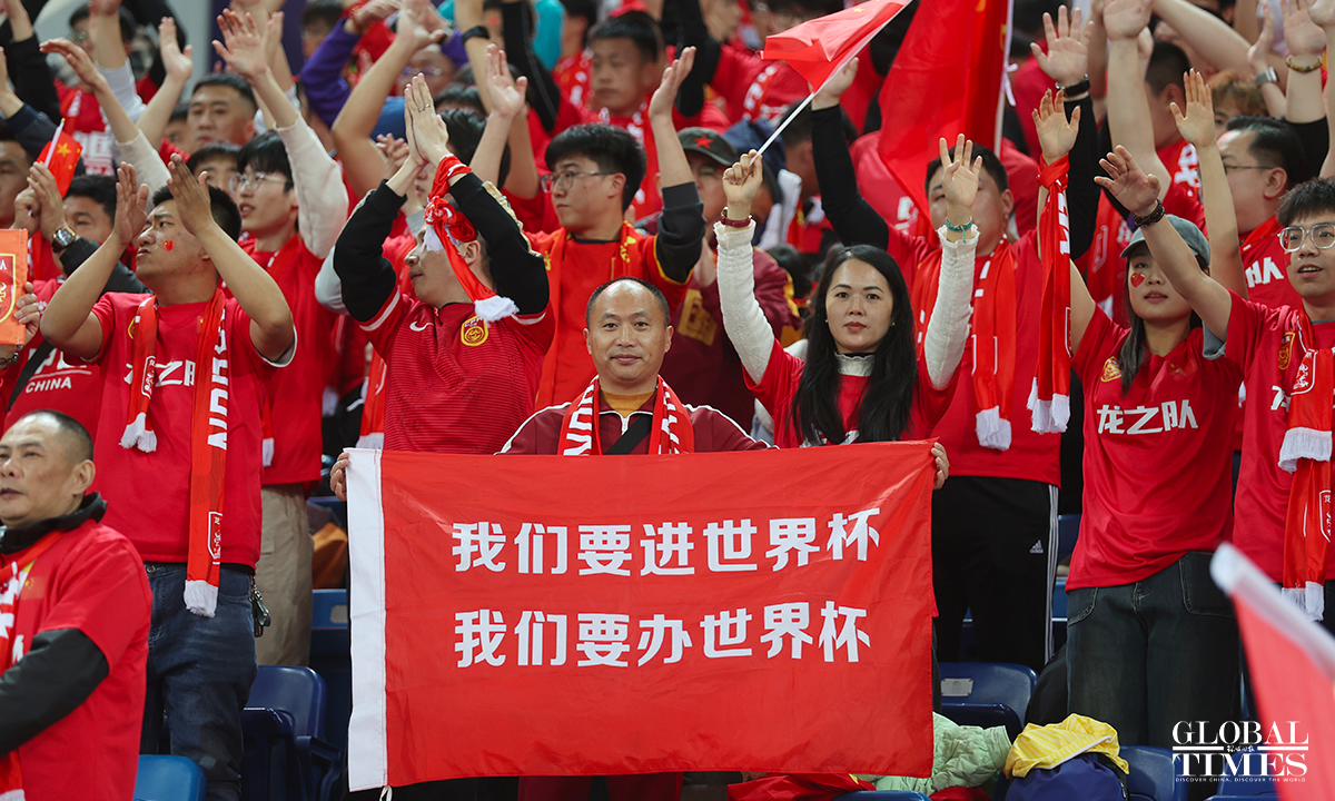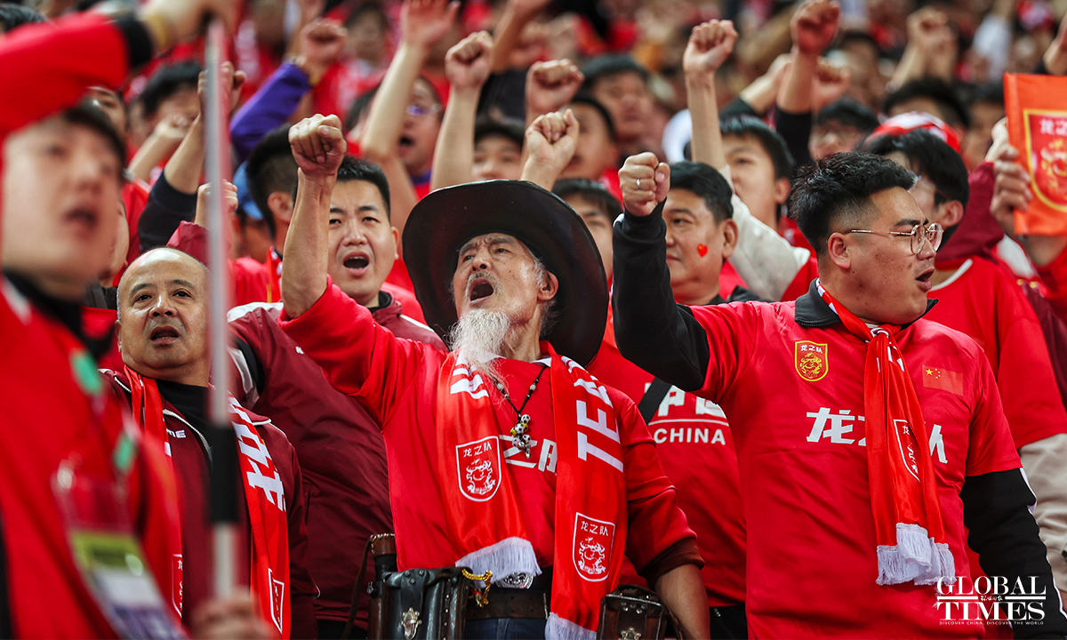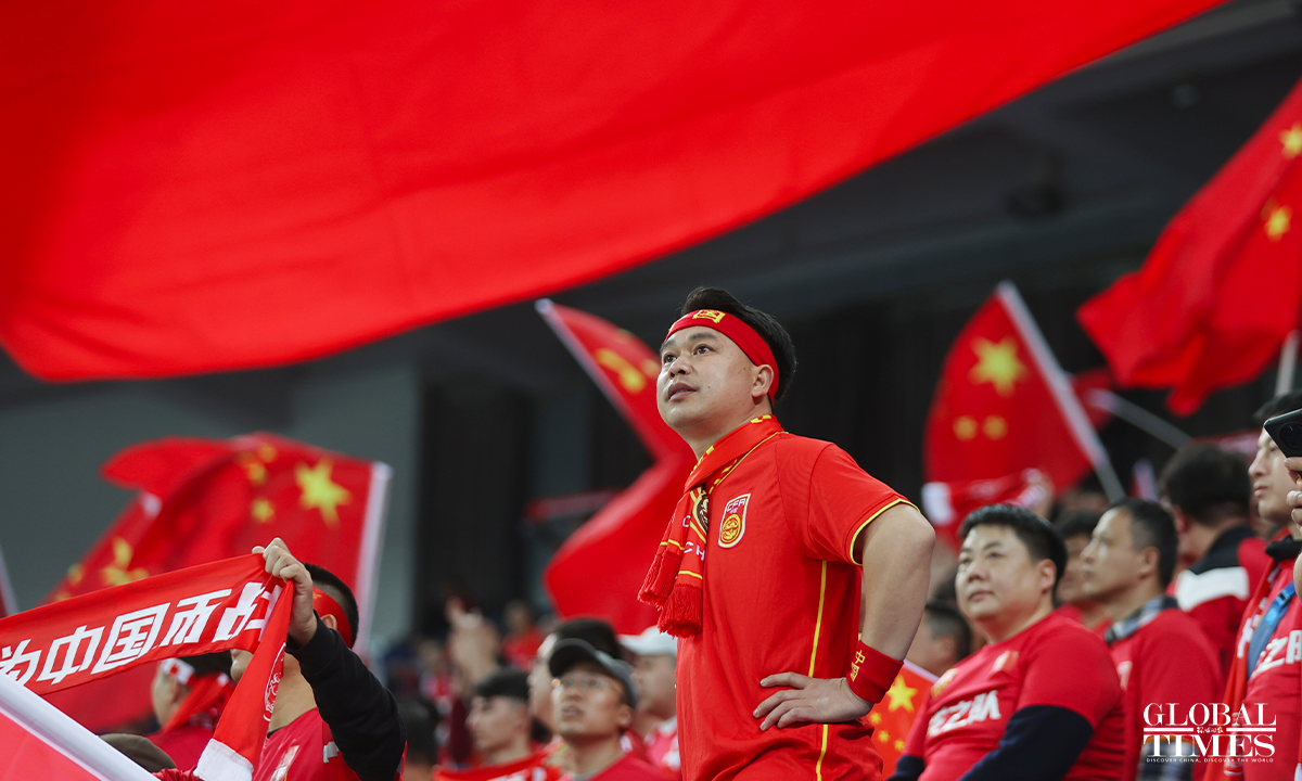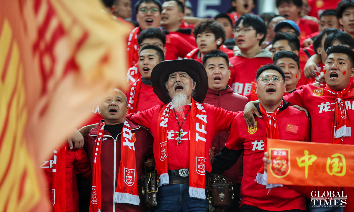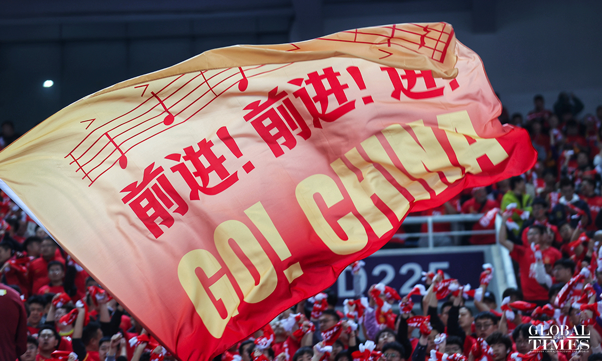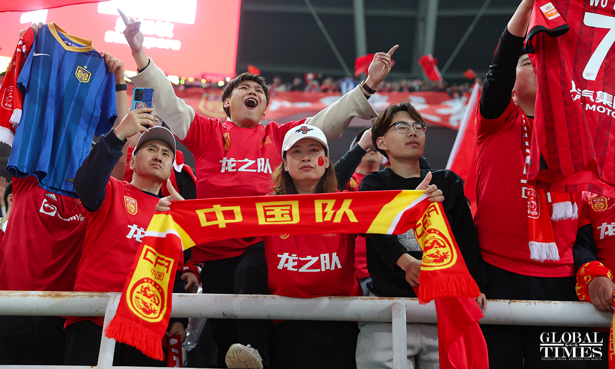Striker Wu Lei contributed two goals and an assist to help the Chinese national soccer team bounce back with a 4-1 win over Singapore in their group C match of the 2026 FIFA World Cup Asian qualifiers in North China's Tianjin on Tuesday, ending the team's winless streak since November 2023. Photos: Cui Meng/GT