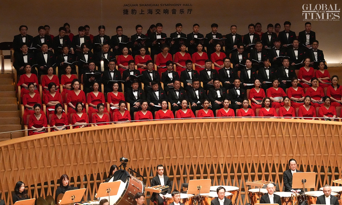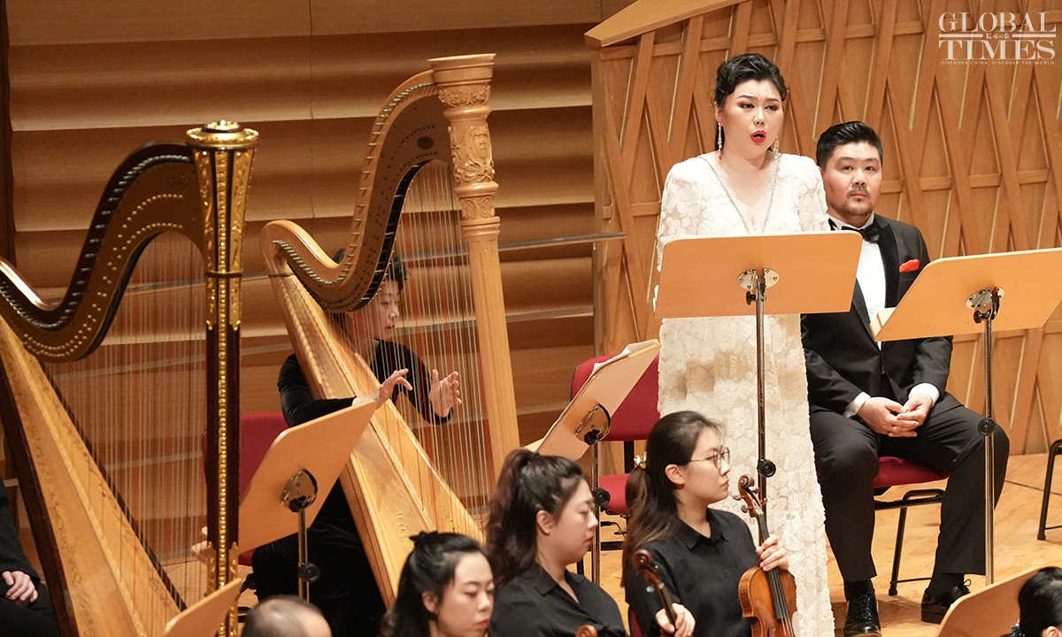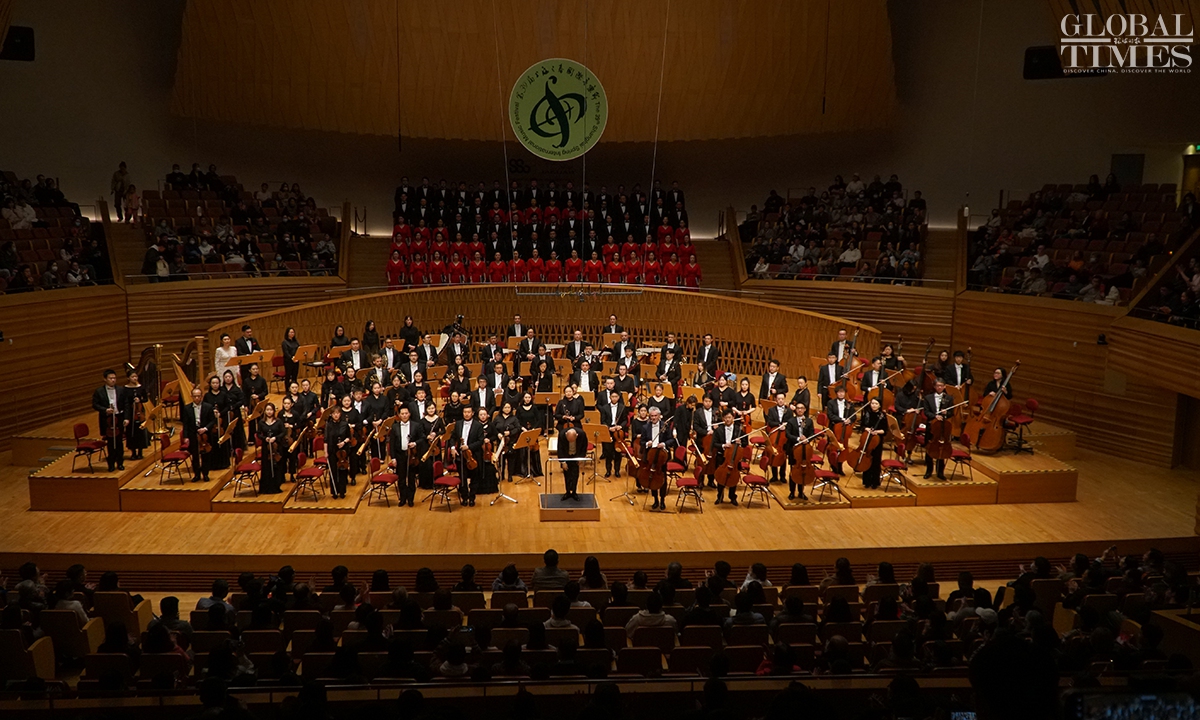 French composer Hector Berlioz's symphonie dramatique Romeo et Juliette was presented by Shanghai Opera House at Shanghai Symphony Hall on Sunday. The concert was conducted by Xu Zhong, Director of Shanghai Opera House, and served as a highlight event of the China-France music exchanges season. This season of music exchanges, an essential part of the 39th Shanghai Spring International Music Festival, was launched this year in celebration of the 60th anniversary for the China-France diplomatic relations. Including Romeo et Juliette, it features seven concerts, forums, lectures and other related activities.(Photos: Lu Ting/GT)