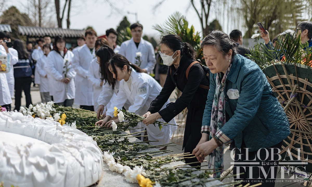 The Red Cross Society of China Beijing Branch held the 18th "Tribute to Life" memorial service for body and organ donation volunteers at Changqing Life Memorial Park on April 3. To date, nearly 30,000 individuals in Beijing have registered as body donors, with 5,000 donations realized. 184,000 people have registered as organ donors, leading to nearly 3,600 donations and over 12,000 major organs donated, providing new life opportunities for thousands awaiting organ transplants.(Photo: Li Hao/GT)