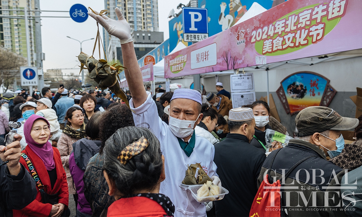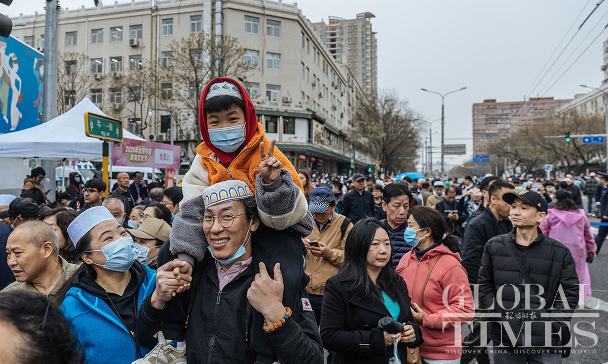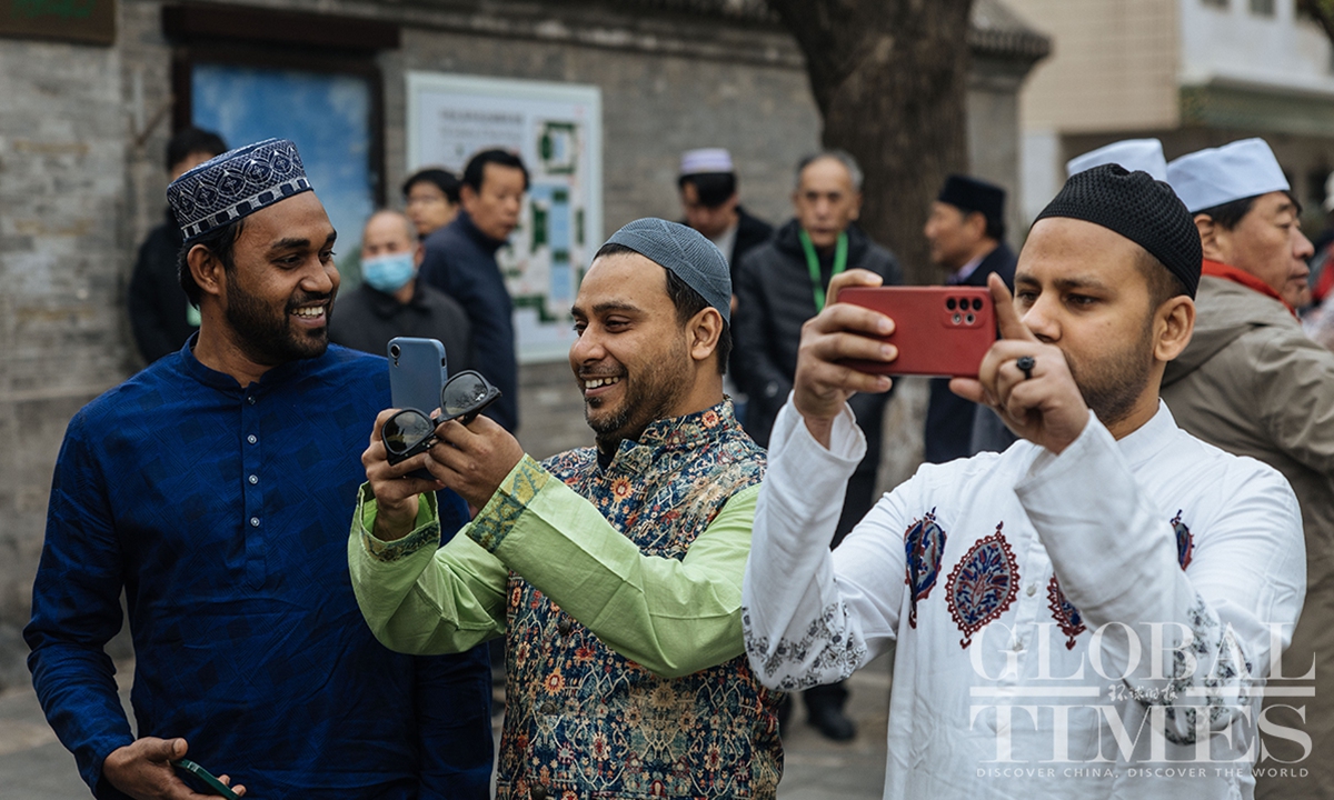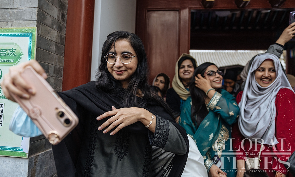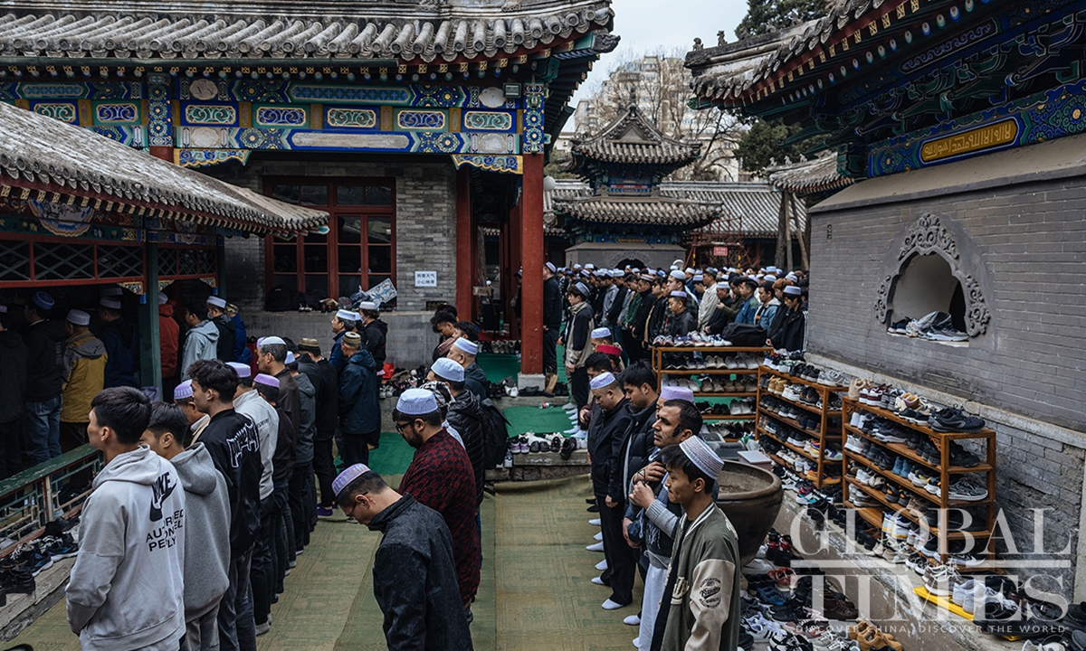 Beijing's Niujie Mosque is buzzing with joy today as Muslims gathered from around the world to celebrate Eid al-Fitr. The festive atmosphere was filled with greetings, blessings, and the aroma of traditional dishes. Families came together, dressed in their finest, sharing in the unity and cultural significance of this special occasion. (Photo: Li Hao/GT)