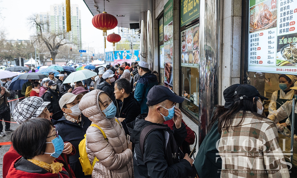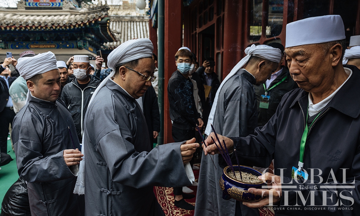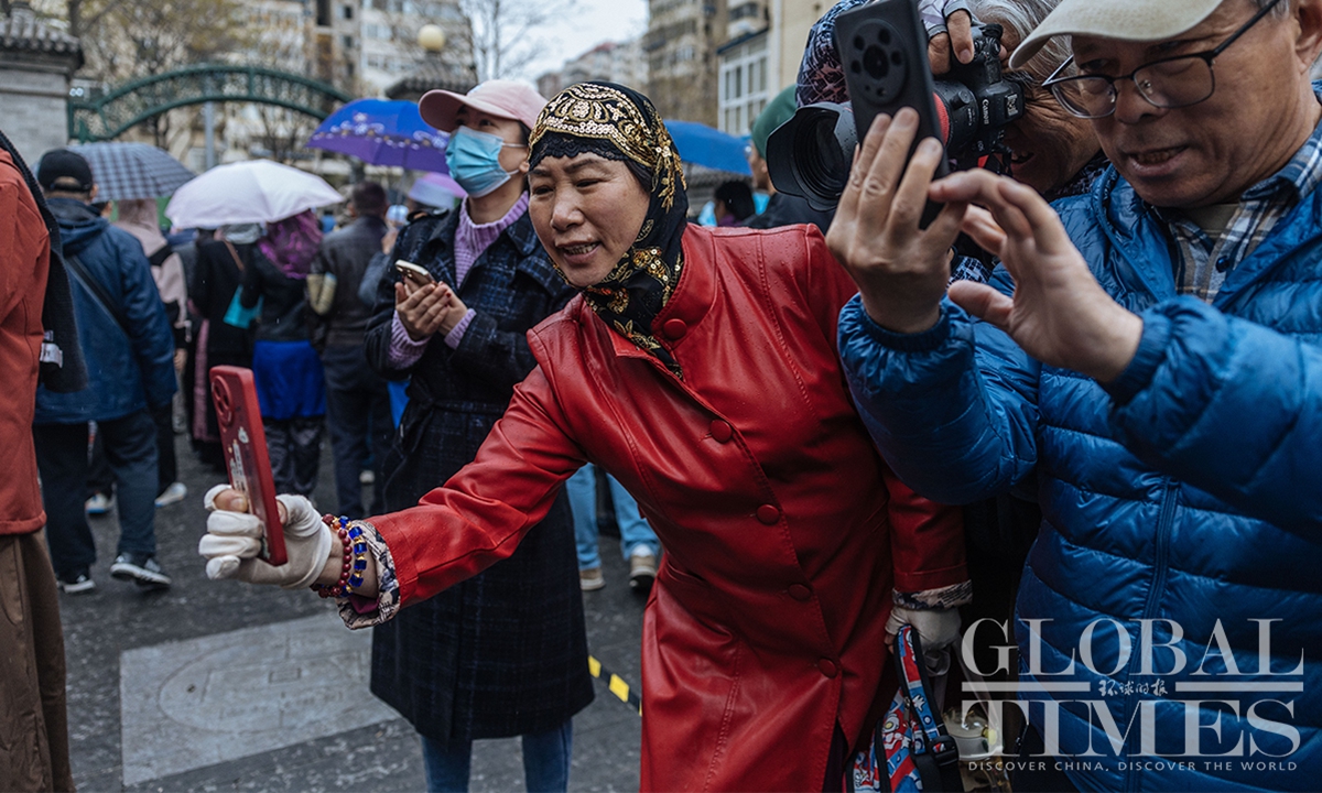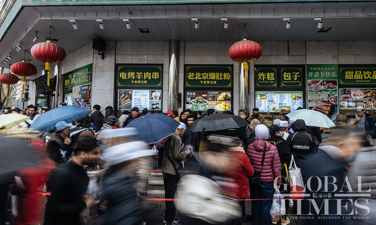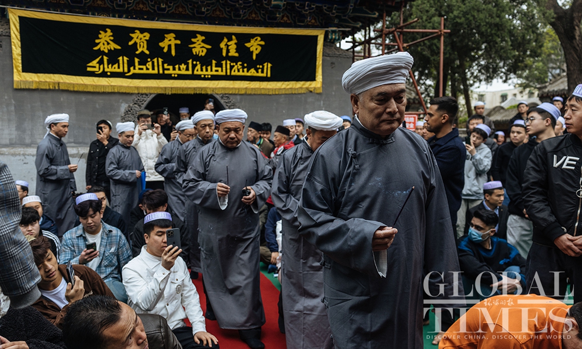 Beijing's Niujie Mosque is buzzing with joy today as Muslims gathered from around the world to celebrate Eid al-Fitr. The festive atmosphere was filled with greetings, blessings, and the aroma of traditional dishes. Families came together, dressed in their finest, sharing in the unity and cultural significance of this special occasion. (Photo: Li Hao/GT)