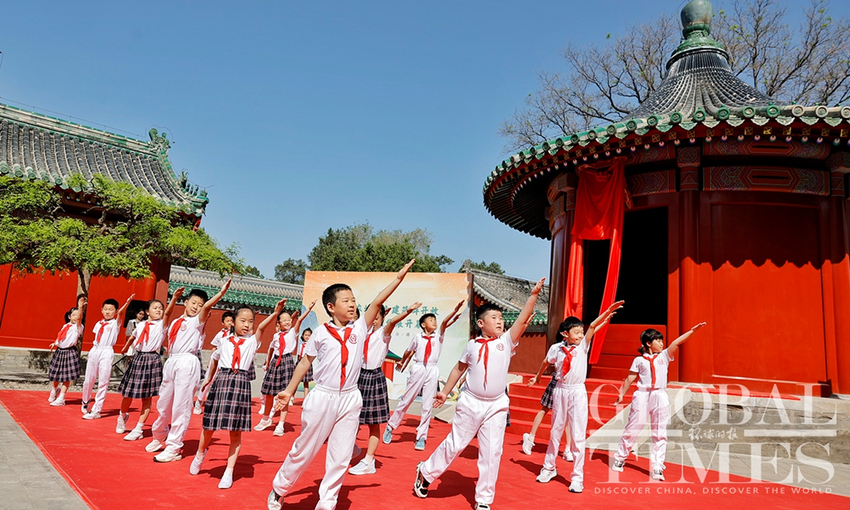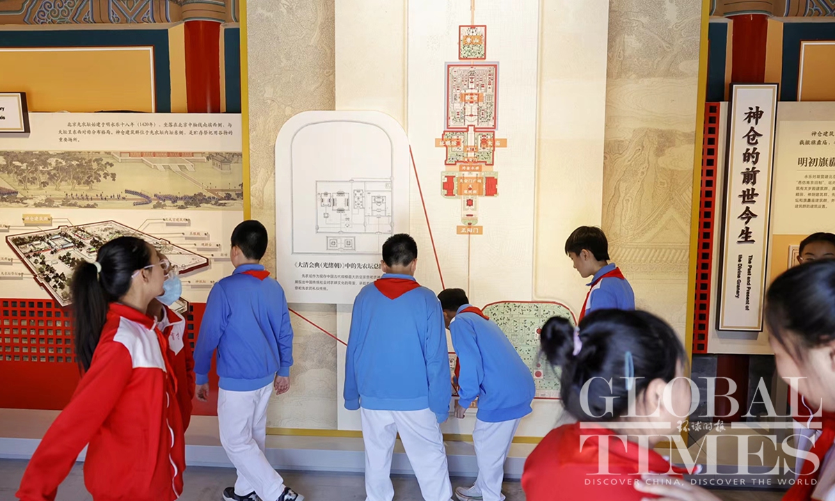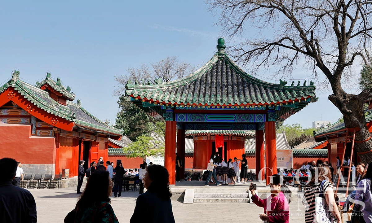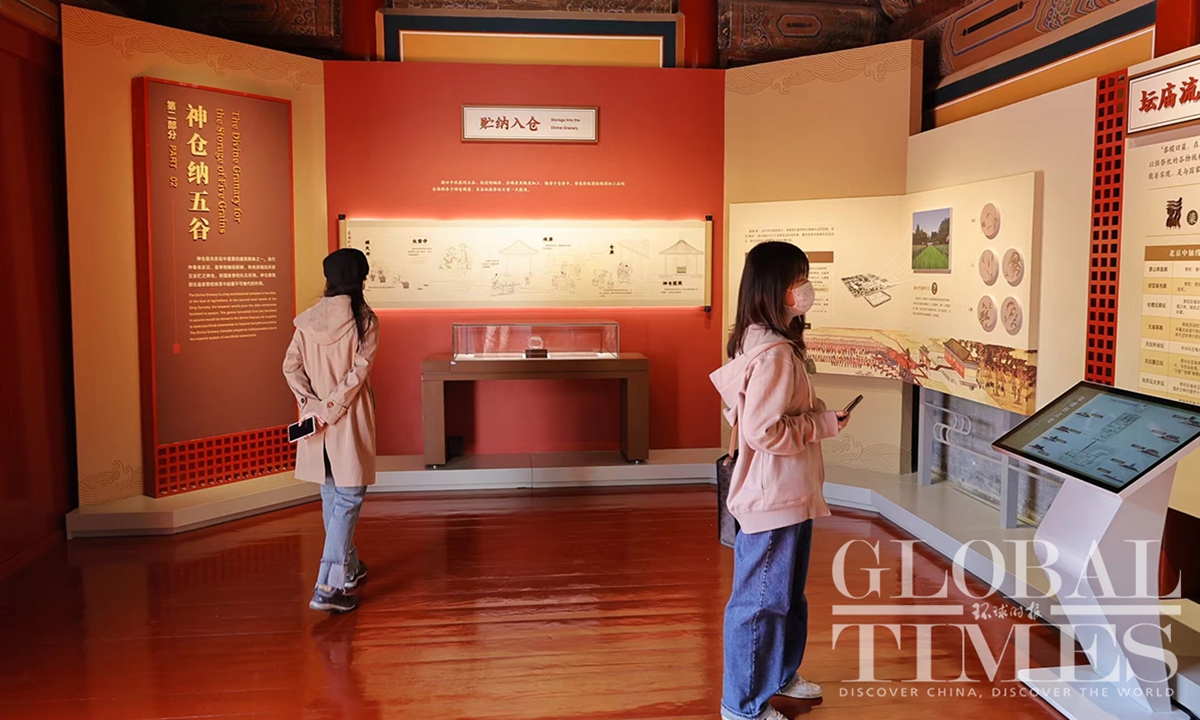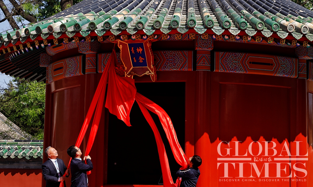 Visitors attend the opening ceremony of the Divine Granary of the Altar of the God of Agriculture (Xiannongtan Temple), which is now also the Beijing Ancient Architecture Museum on April 18, 2024. It makes the first public opening of the Shen Warehouse architectural complex in more than 200 years. In Qing Dynasty (1644-1911), the emperor would plow the jitian ceremonial farmland in person in the second lunar month each year. The grains harvested from the farmland in autumn would be stored in the Divine Granary as supplies to state sacrificial ceremonies in imperial temples and altars.(Photo: Li Hao/GT)