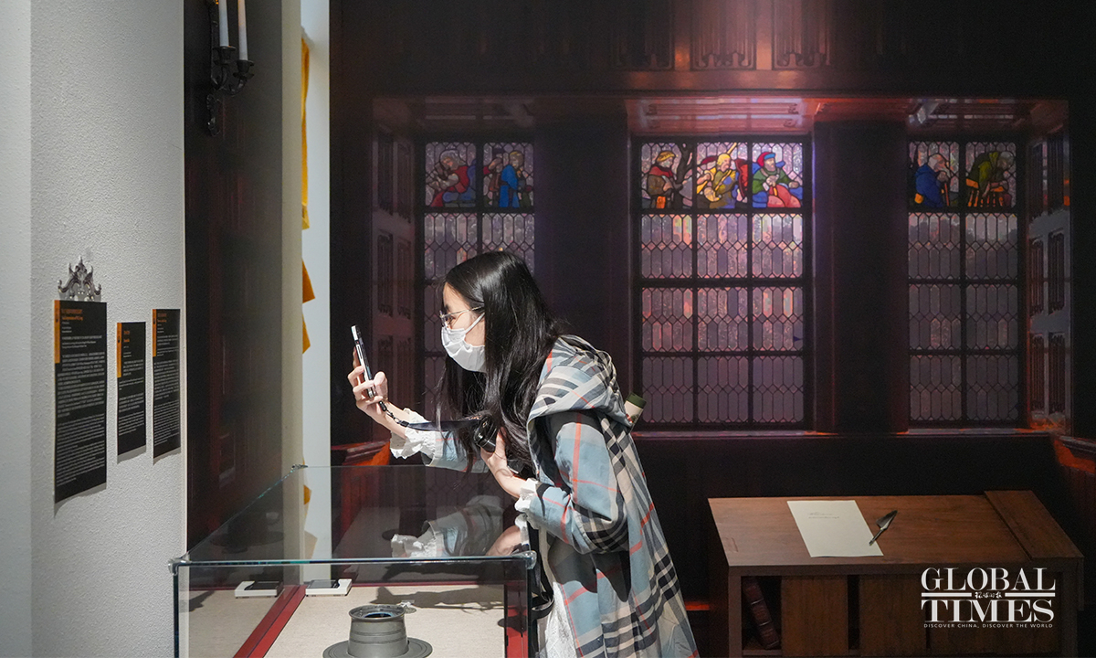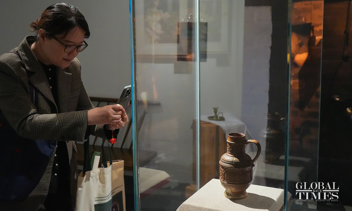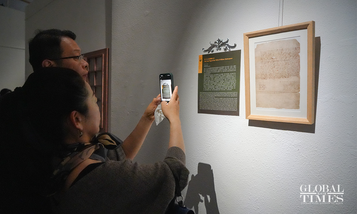 The largest ever displayed in China, the exhibition will be divided into five major sections, respectively showcasing Shakespeare's extraordinary life, the daily lives of Shakespeare's era, Shakespeare's writings, the playwright's opera masterpieces, and his hometown Stratford. It is scheduled to run until May 19. (Photos: Lu Ting/GT)