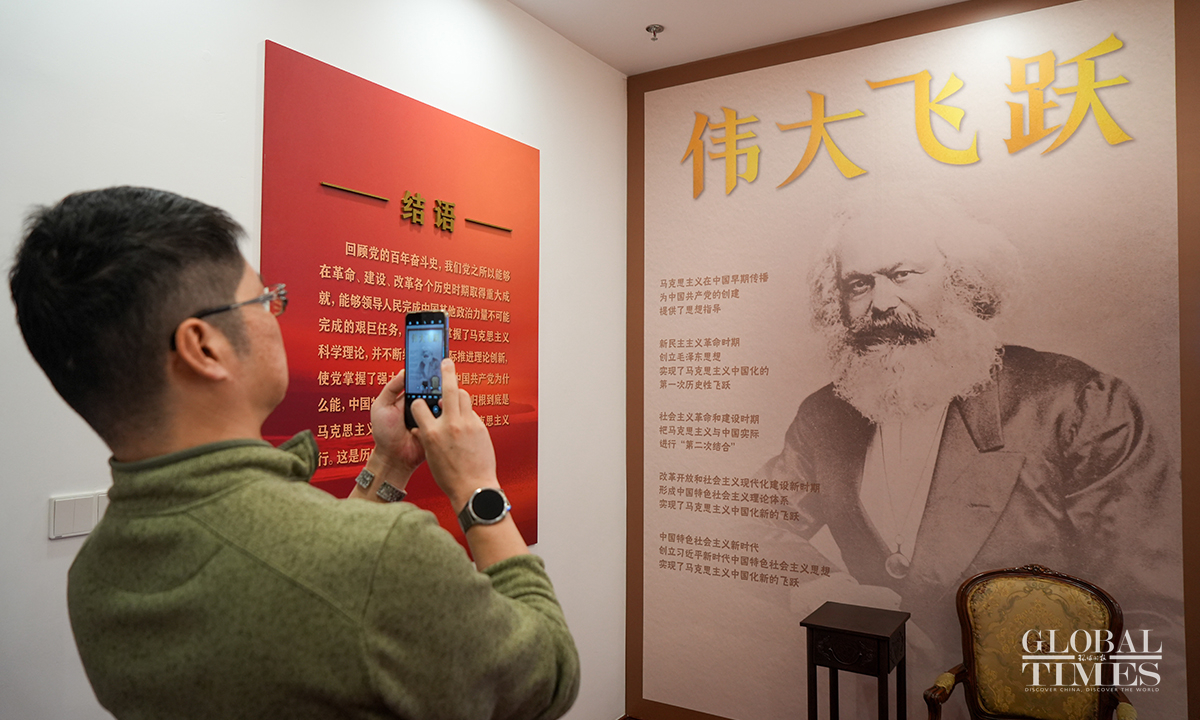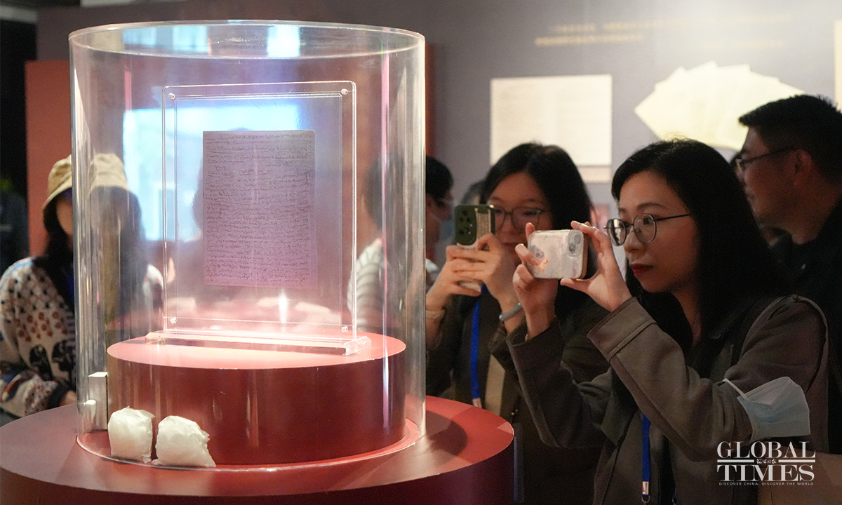 The manuscript of Marx's “On the Polish Question” from the collection of Sun Yat-sen University was unveiled, marking the first time the precious manuscript arrived at the birthplace of the Party. The exhibition will last until July. (Photos: Lu Ting/GT)