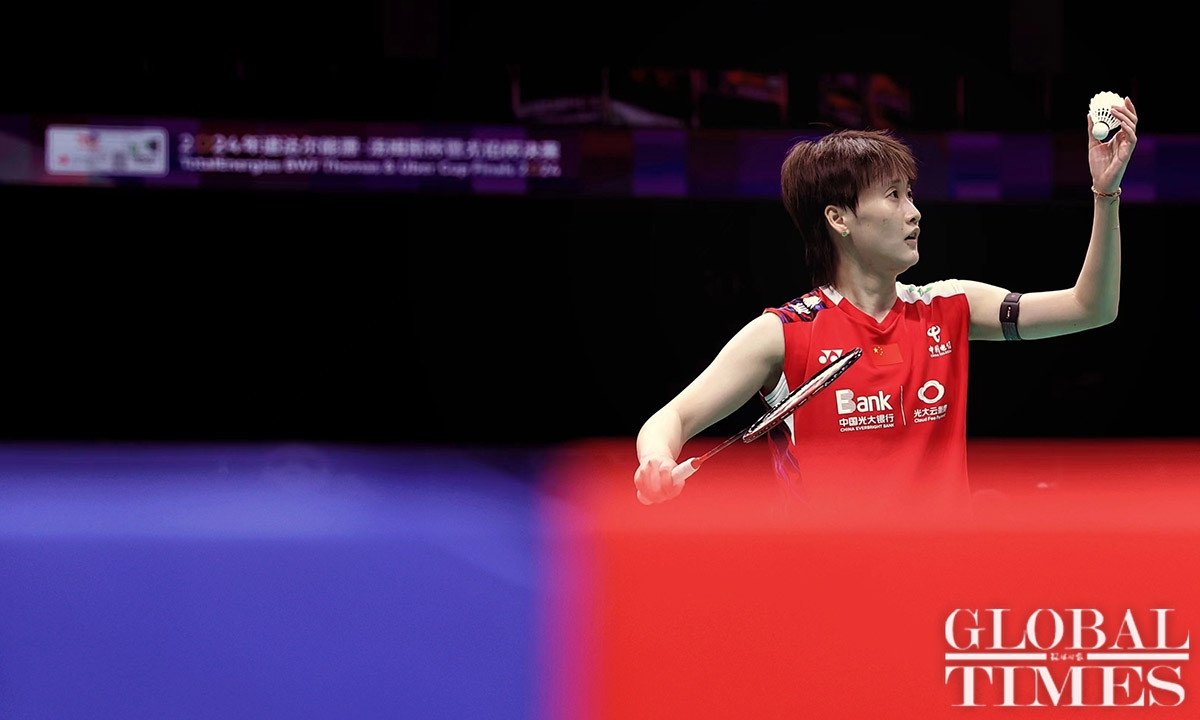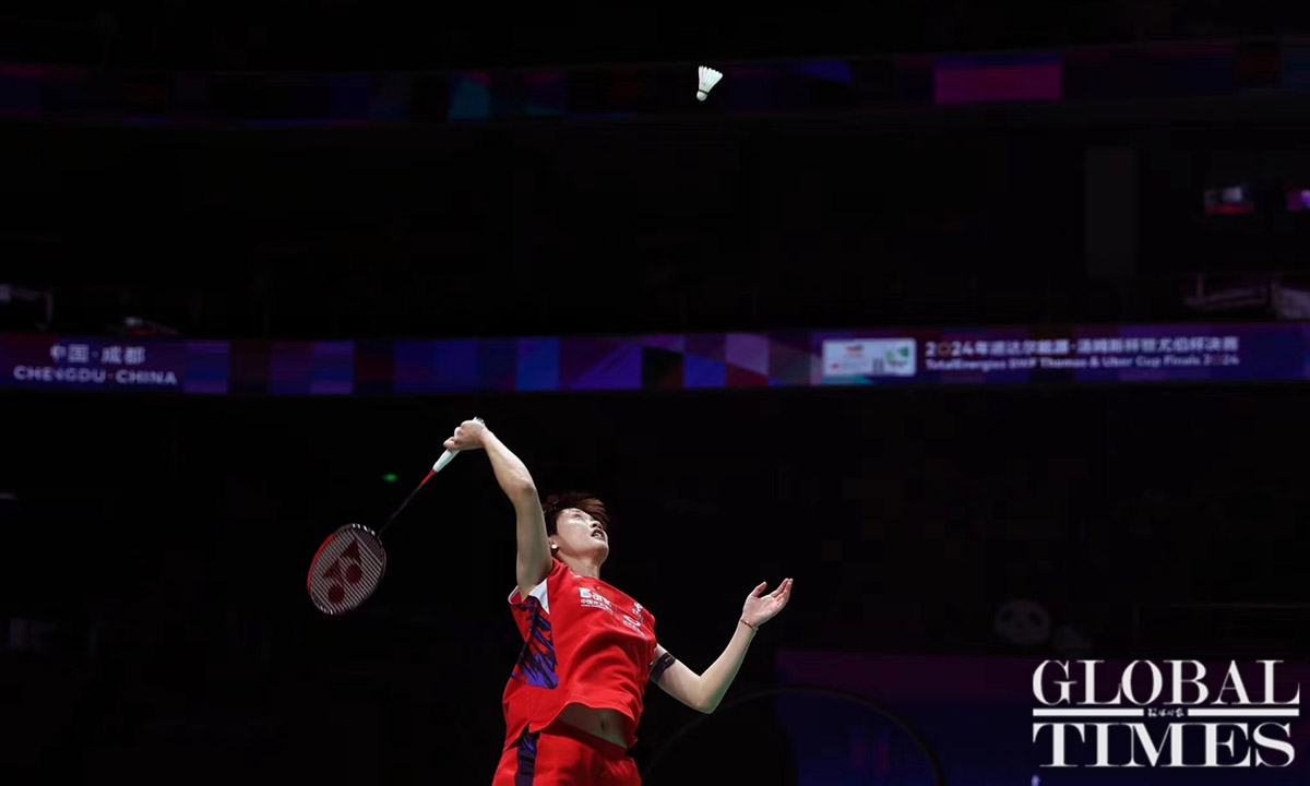 Top Chinese female shuttler Chen Yufei led Team China to sweep India in the final group match at the Uber Cup in Chengdu, Southwest China's Sichuan Province on April 30, 2024, sealing top spot in Group A. Photos: Cui Meng/GT
