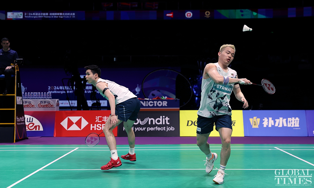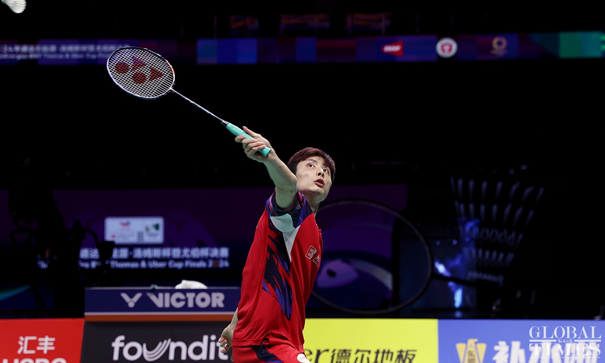 China’s men’s badminton team qualified for the Thomas Cup final on Saturday in Chengdu after surviving scares in the doubles to defeat opponents Malaysia 3-1. They will take on Indonesia in the final on Sunday. (Photos: Cui Meng/GT)