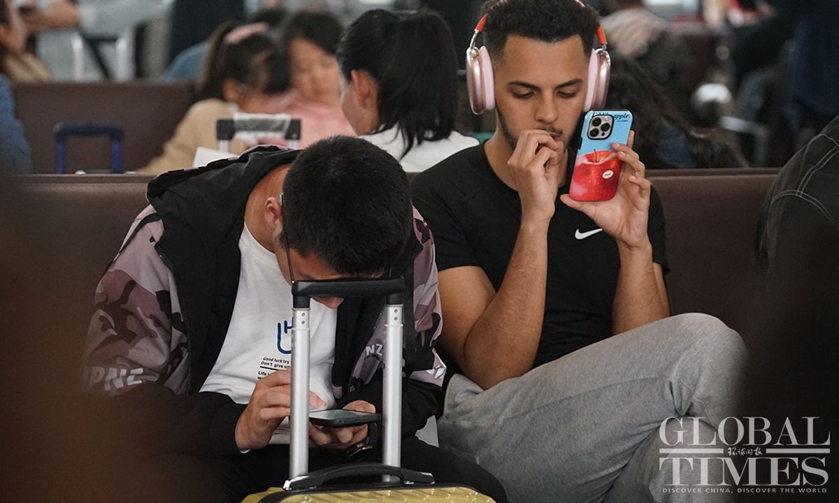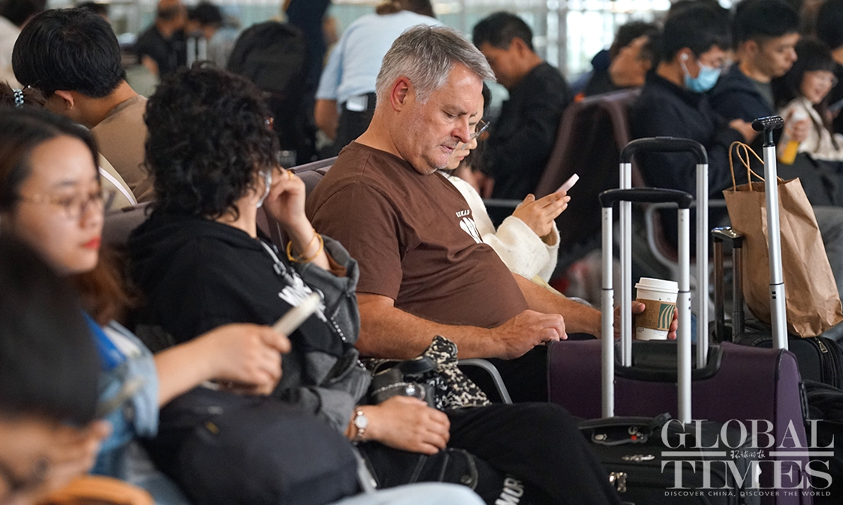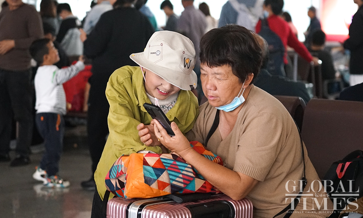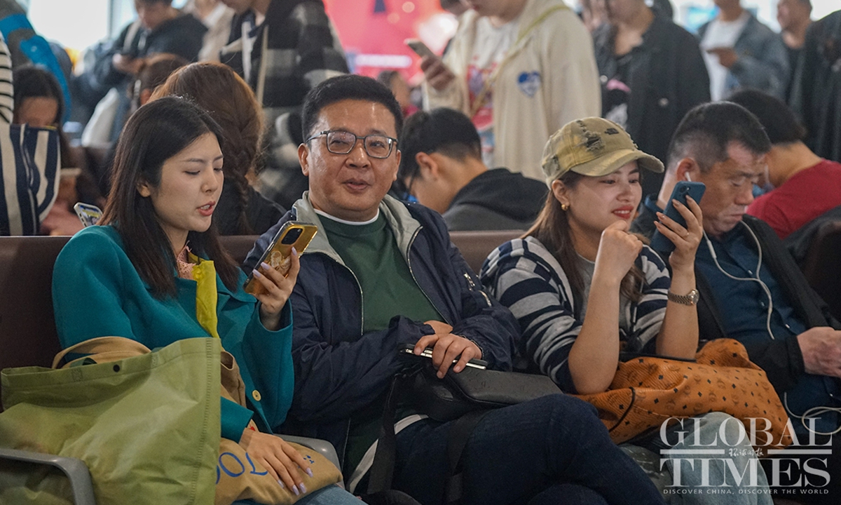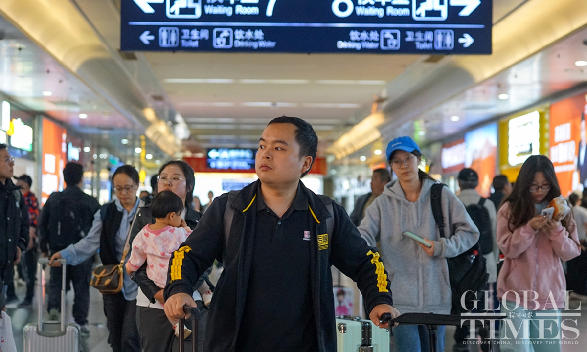Shanghai’s railway network saw a travel peak on Sunday, the last day of the May Day holidays that lasts from May 1 to 5. It is expected that some 657,000 passengers will arrive at Shanghai by train on Sunday. In addition, railway stations in Shanghai are estimated to see a total of 483,000 passengers leaving the city by train on the same day, as many people choose off-peak travel this year.(Photo: Lu Ting/GT)
