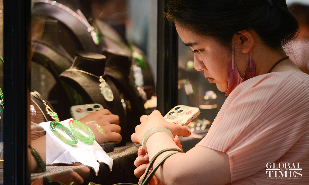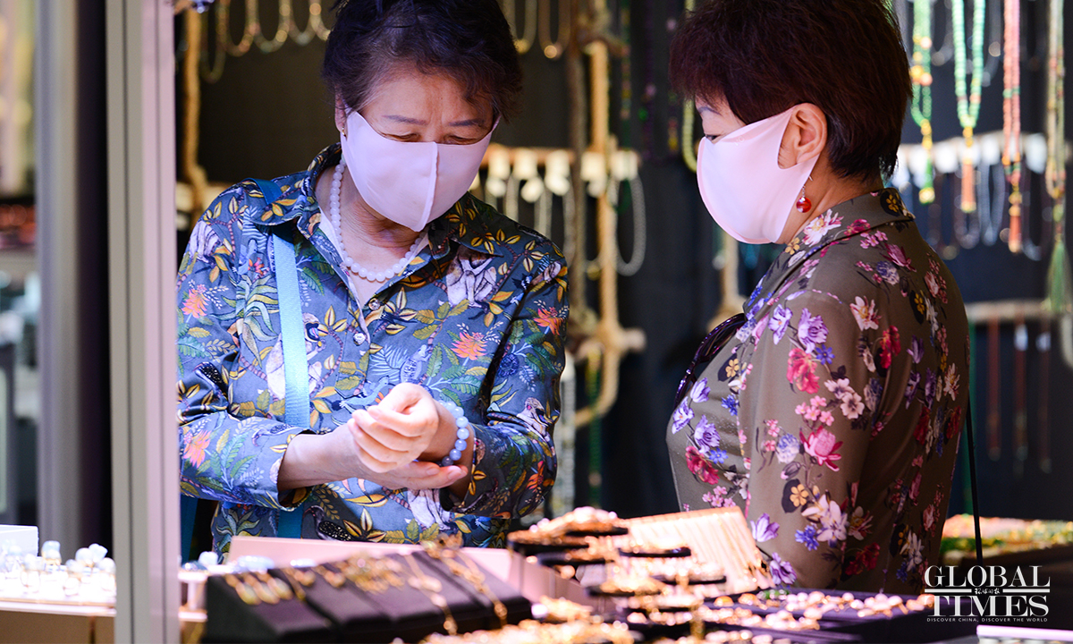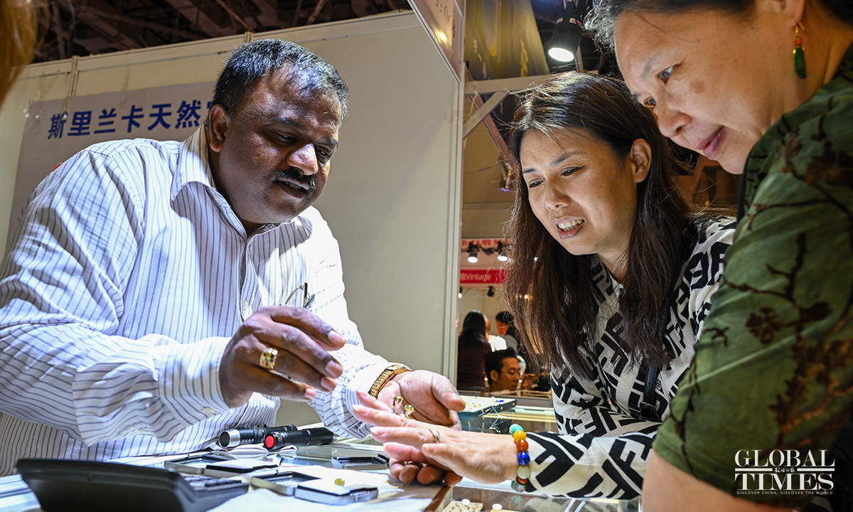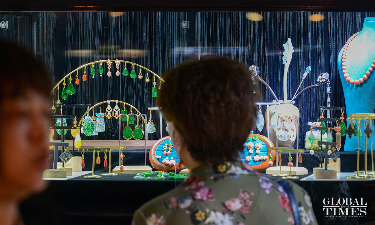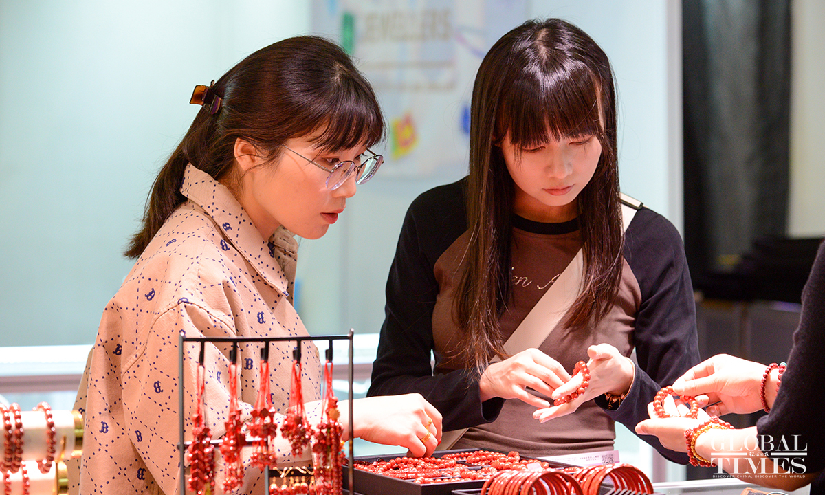 The 2024 Beijing International Gold, Jewelry, and Jade Exhibition kicks off at the Beijing Exhibition Center on Friday. This event has drawn in over 500 exhibitors specializing in jewelry design, processing, manufacturing, wholesale, and retail, showcasing more than 30,000 products. On its opening day, the exhibition welcomed over 20,000 registered professional visitors, ranging from jewelry merchants to designers. (Photos: Chen Tao/GT)