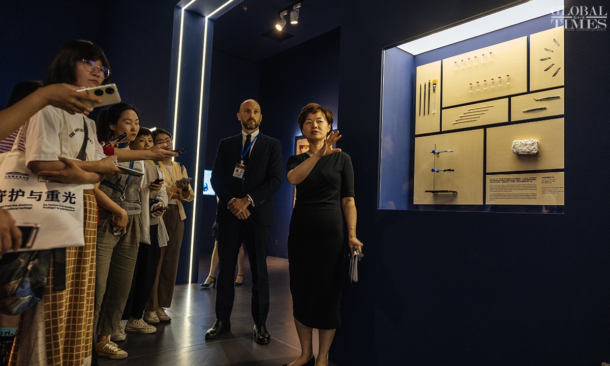The opening ceremony of the exhibition “Salvaged from the Shadows: Protecting Cultural Heritage” is held at the National Museum of China in Beijing on Thursday. In partnership with the International Alliance for the Protection of Heritage in Conflict Areas (ALIPH), the National Museum of China will present the exhibition, showcasing ALIPH’s global efforts from June 6 to September 5. (Photos: Li Hao/GT)