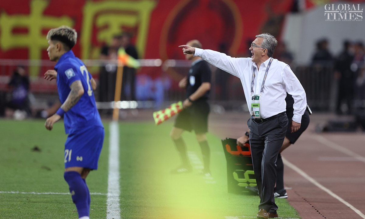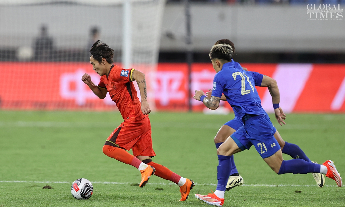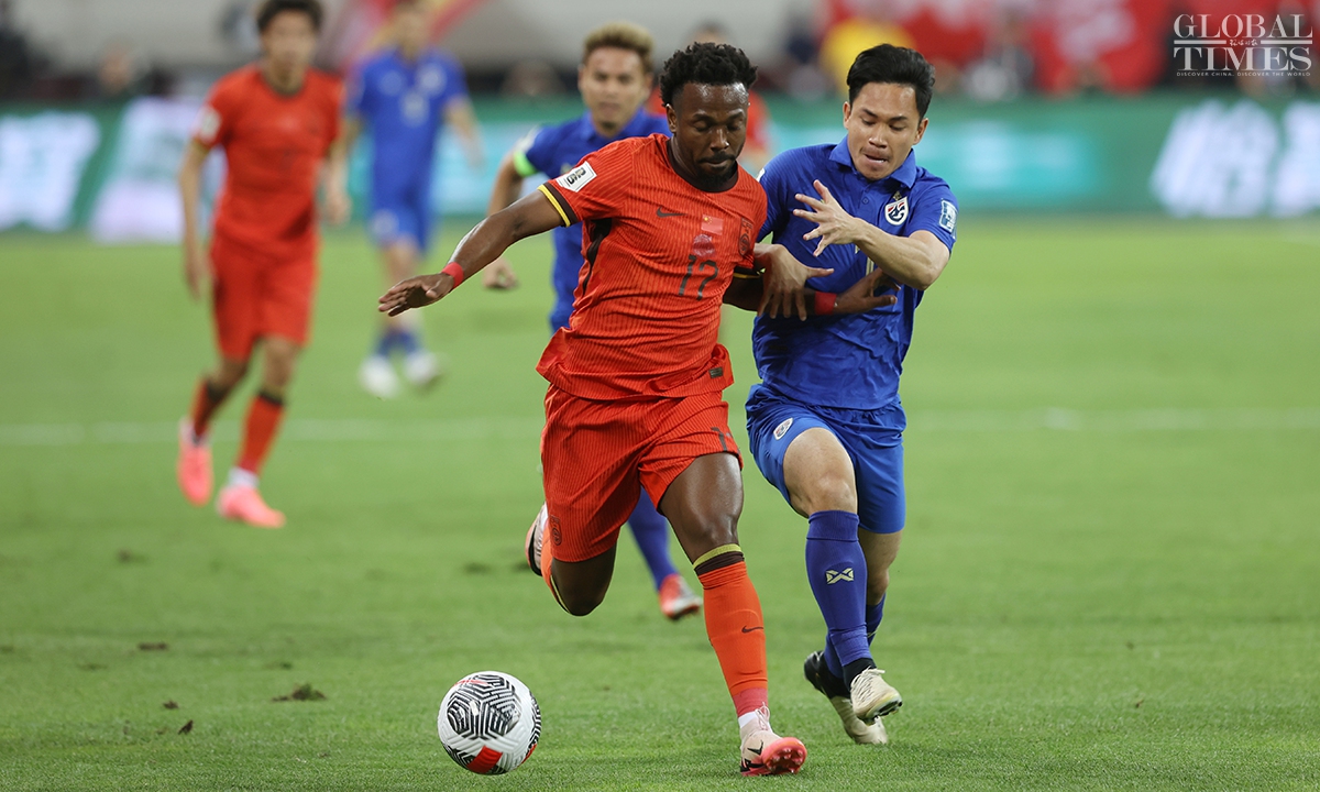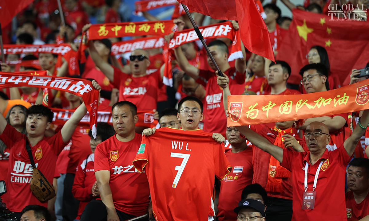 The Chinese national soccer team was held to a 1-1 draw by Thailand at home in Shenyang, Northeast China’s Liaoning Province. The result means China will need to get at least a draw in their next game to keep their qualifying hopes alive. They will take on South Korea on June 11. (Photos: Cui Meng/GT)