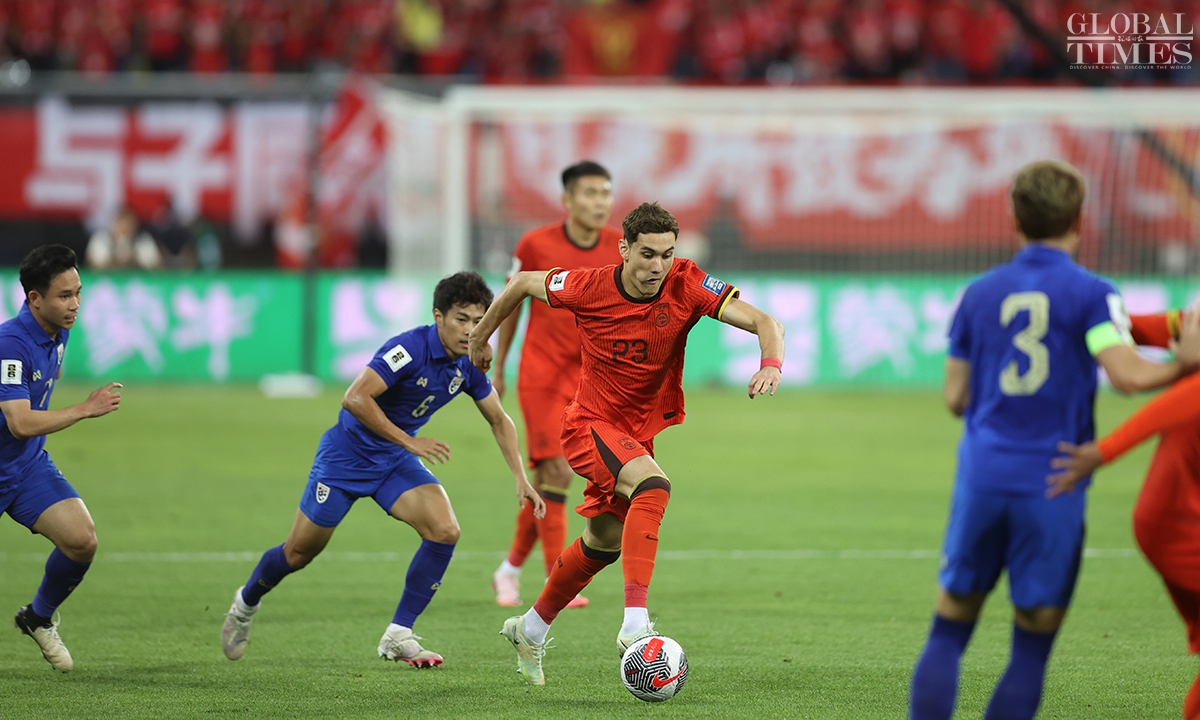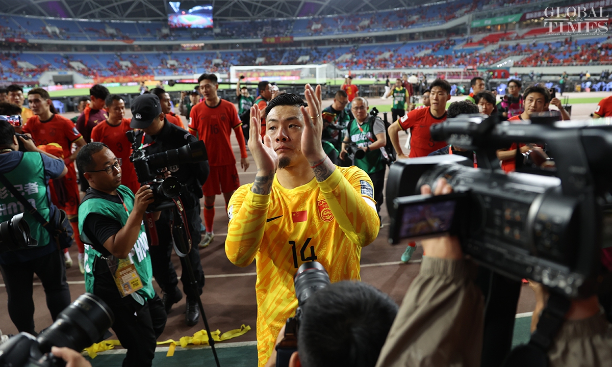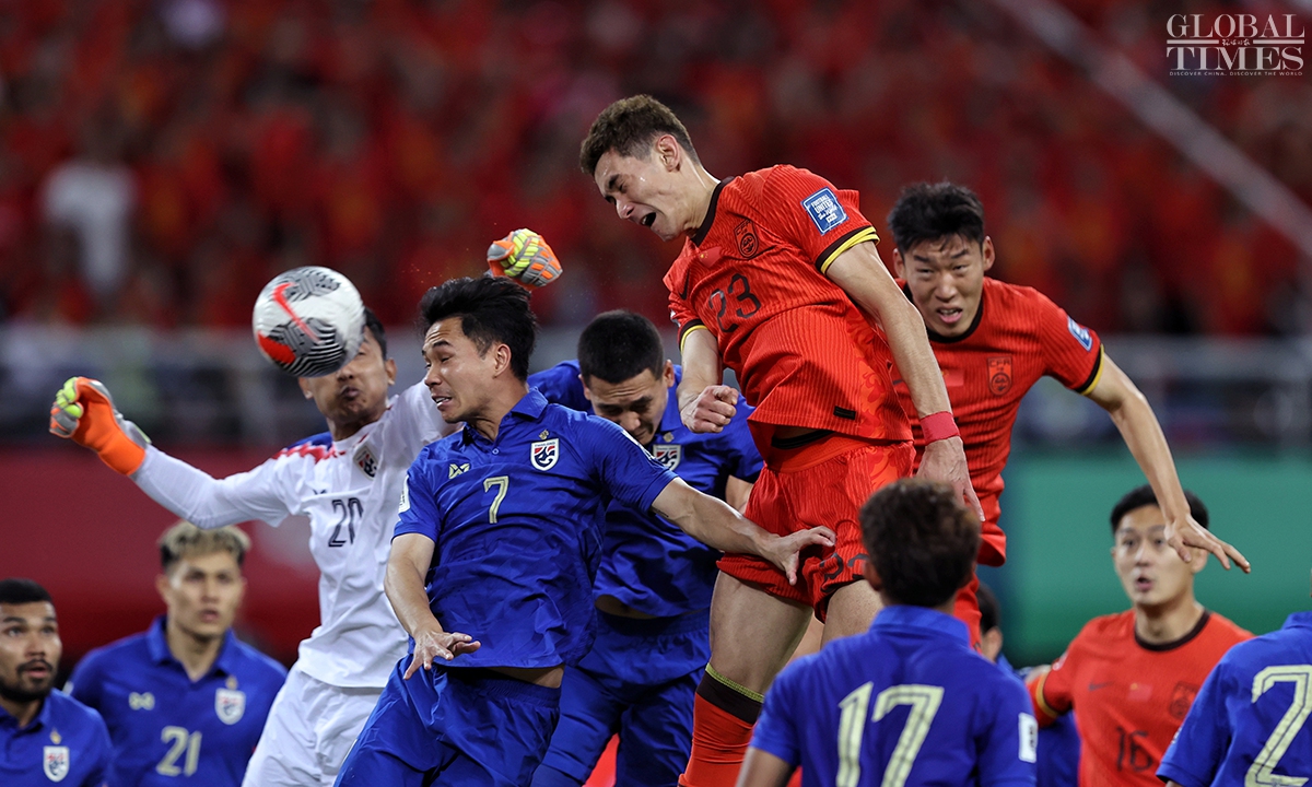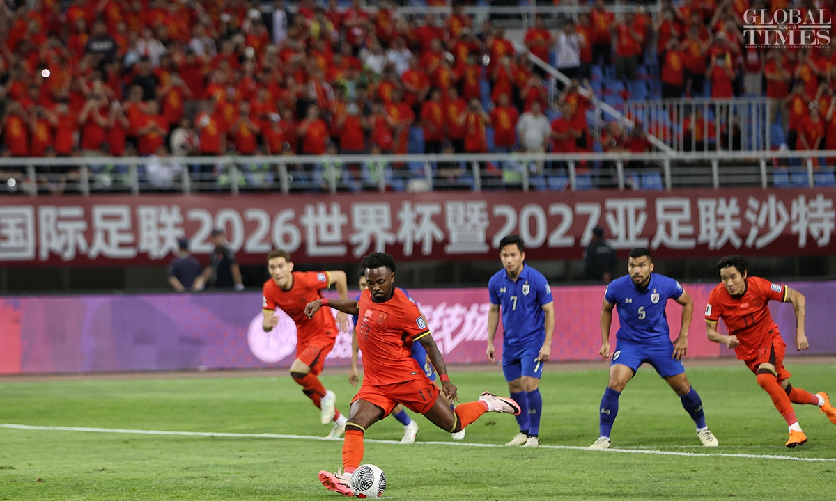 The Chinese national soccer team was held to a 1-1 draw by Thailand at home in Shenyang, Northeast China’s Liaoning Province. The result means China will need to get at least a draw in their next game to keep their qualifying hopes alive. They will take on South Korea on June 11. (Photos: Cui Meng/GT)
