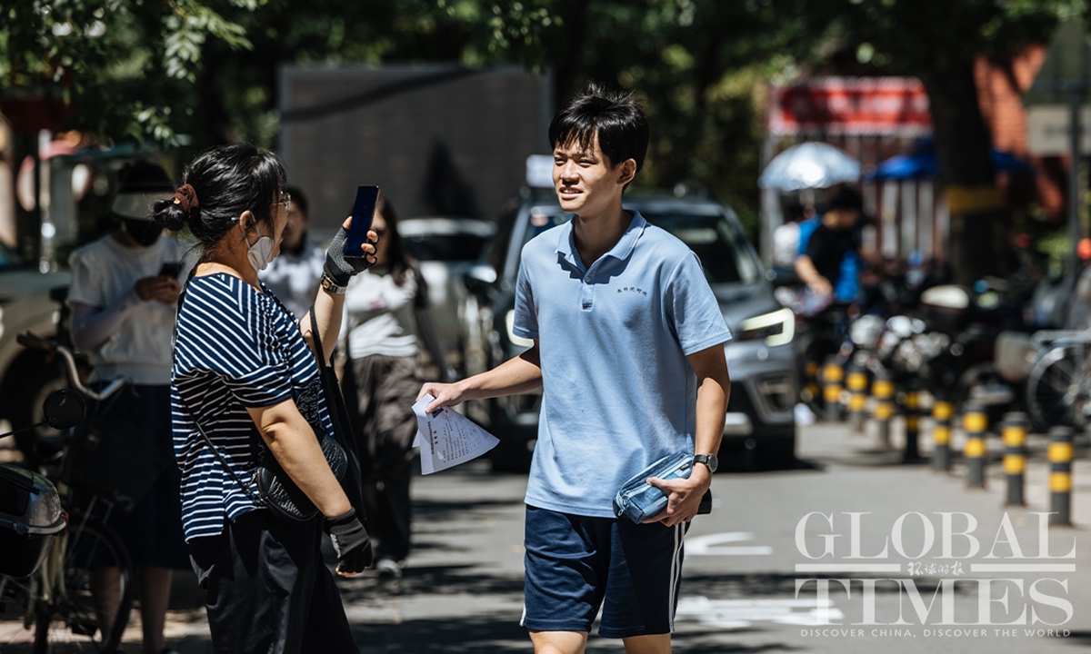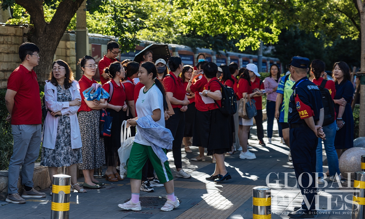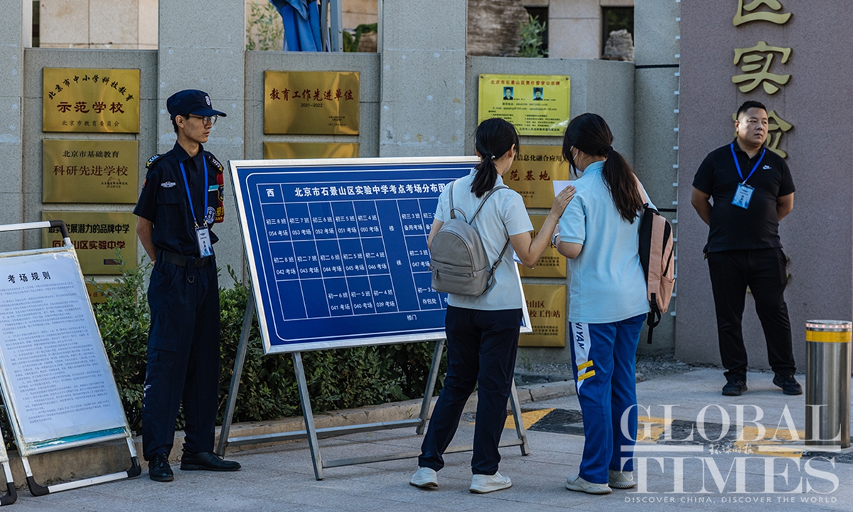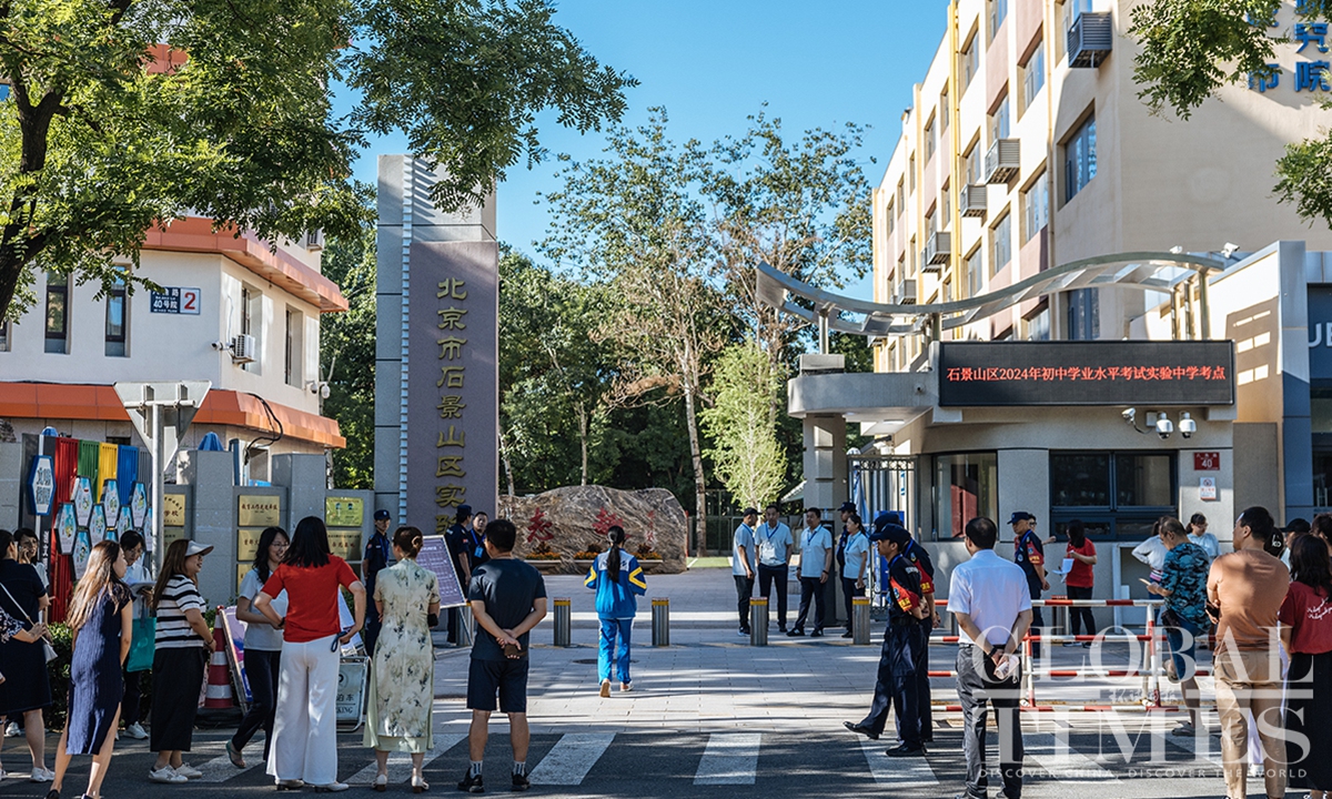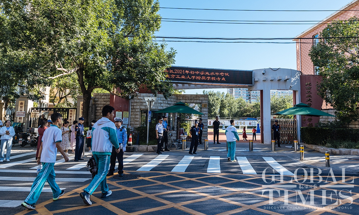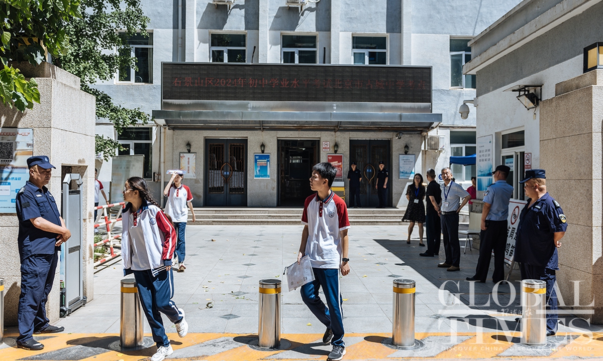 The Beijing 2024 high school entrance examination, or zhongkao, began on Monday. This year, a total of 109,500 students have registered for the test. The city has set up 18 examination districts, 226 examination sites, and 3,828 examination rooms. At the examination sites in Gucheng Middle School, Shijingshan Experimental Middle School, and the Affiliated School of North China University of Technology in Shijingshan District, students completed the Chinese exam on Monday morning. (Photo: Li Hao/GT)