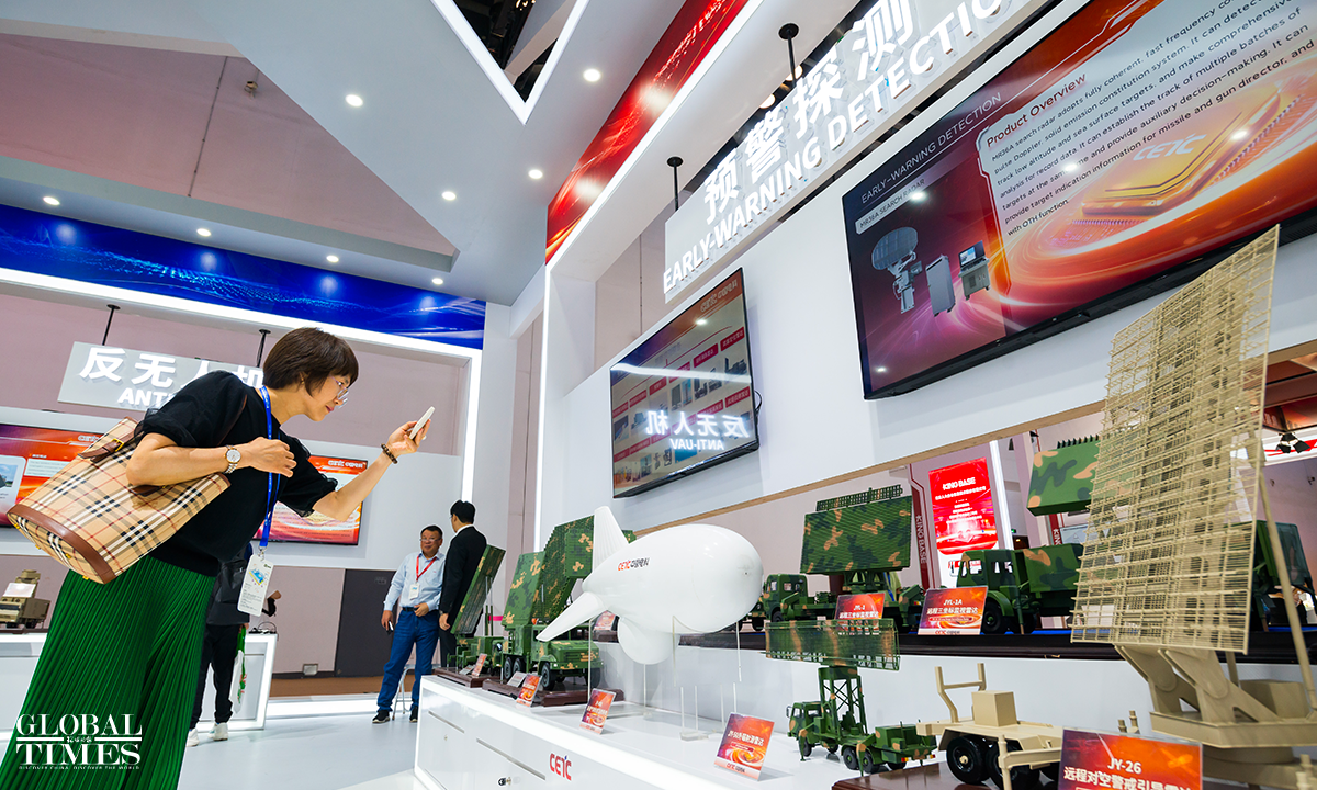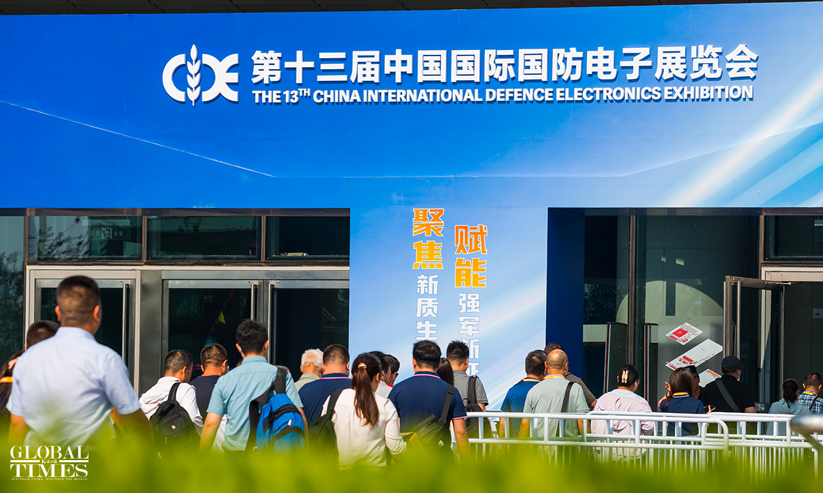 The 13th China International Defence Electronics Exhibition (CIDEX) opened at the China National Convention Center in Beijing on Wednesday. The exhibition covers an area of nearly 30,000 square meters, with almost 400 companies participating. The exhibits span multiple fields including unmanned and anti-unmanned, network information and security, computer software and hardware, special electronic components, command and communication, and new materials. It comprehensively showcases the latest achievements in military electronic information technology from both domestic and international sources. The number of visitors is expected to exceed 40,000. Photos: Chen Tao/GT