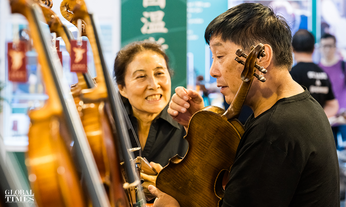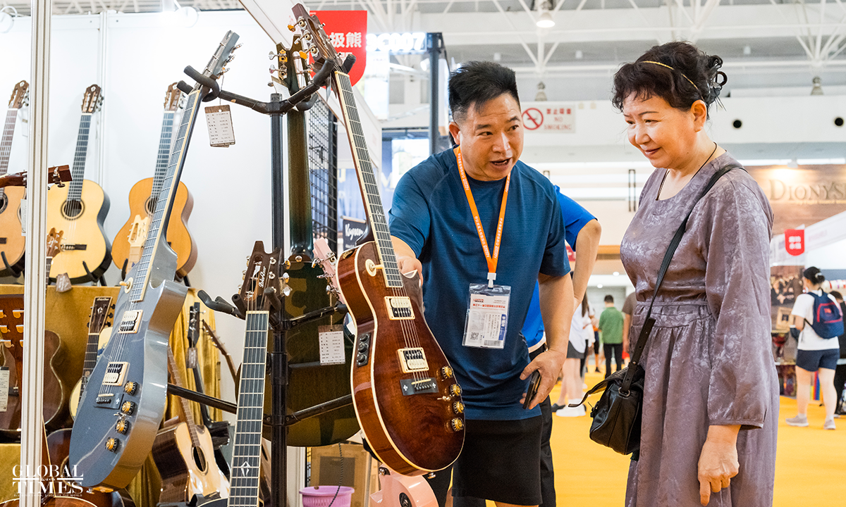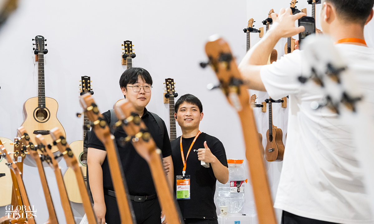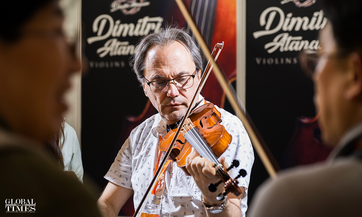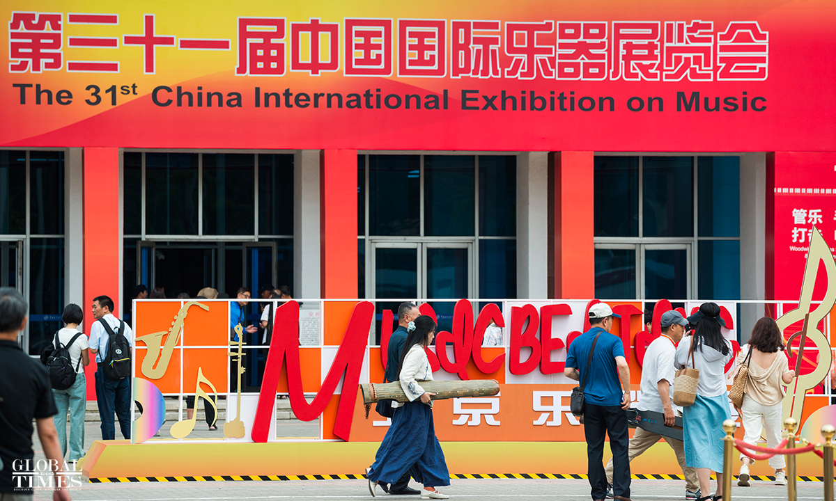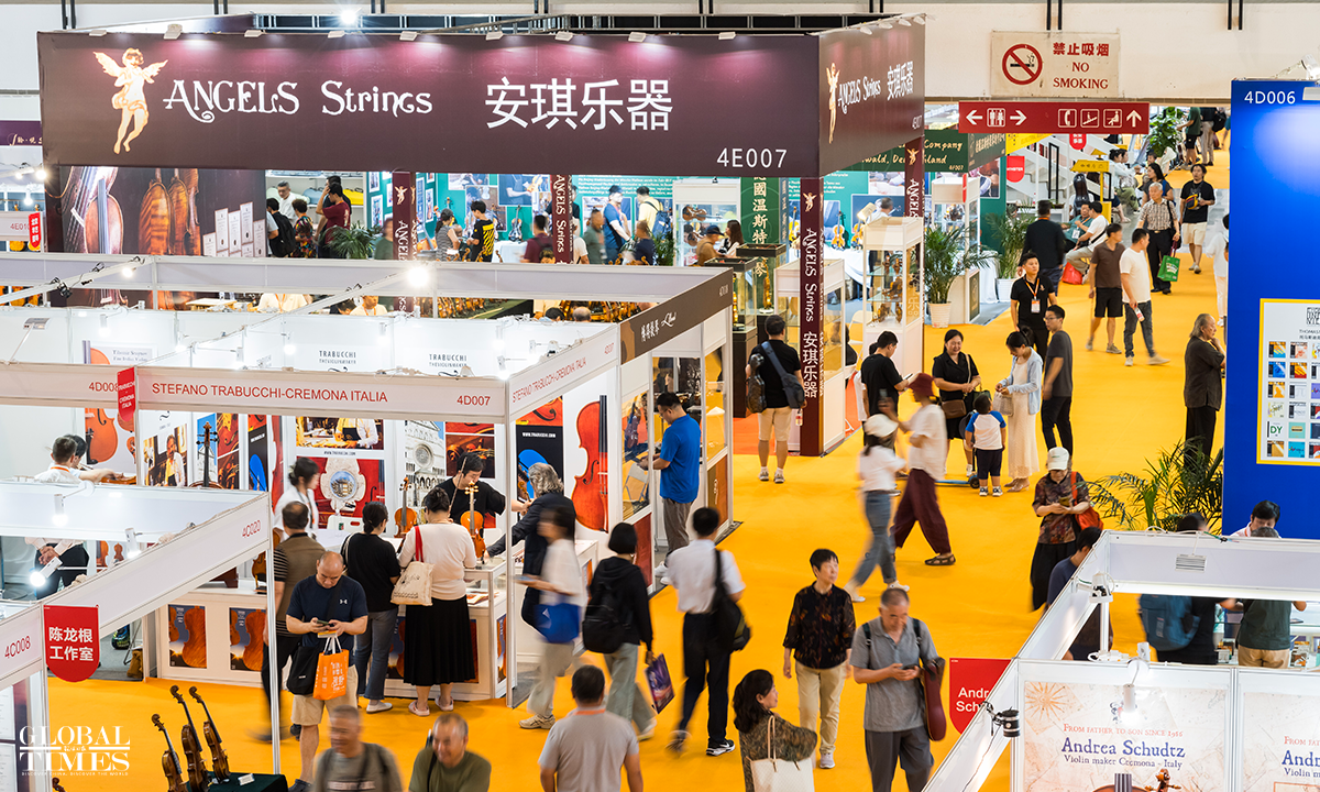 The 31st China International Exhibition on Music has opened at the China International Exhibition Center in Beijing. This year's exhibition features around 650 companies from over ten countries and regions, including China, Italy, France, Germany, the US, Spain, Austria, Australia, and Russia, showcasing a variety of musical instruments such as ethnic, percussion and wind instruments from both domestic and international brands. Spanning 35,000 square meters, the number of exhibitors has doubled compared to 2023. Photos: Chen Tao/GT