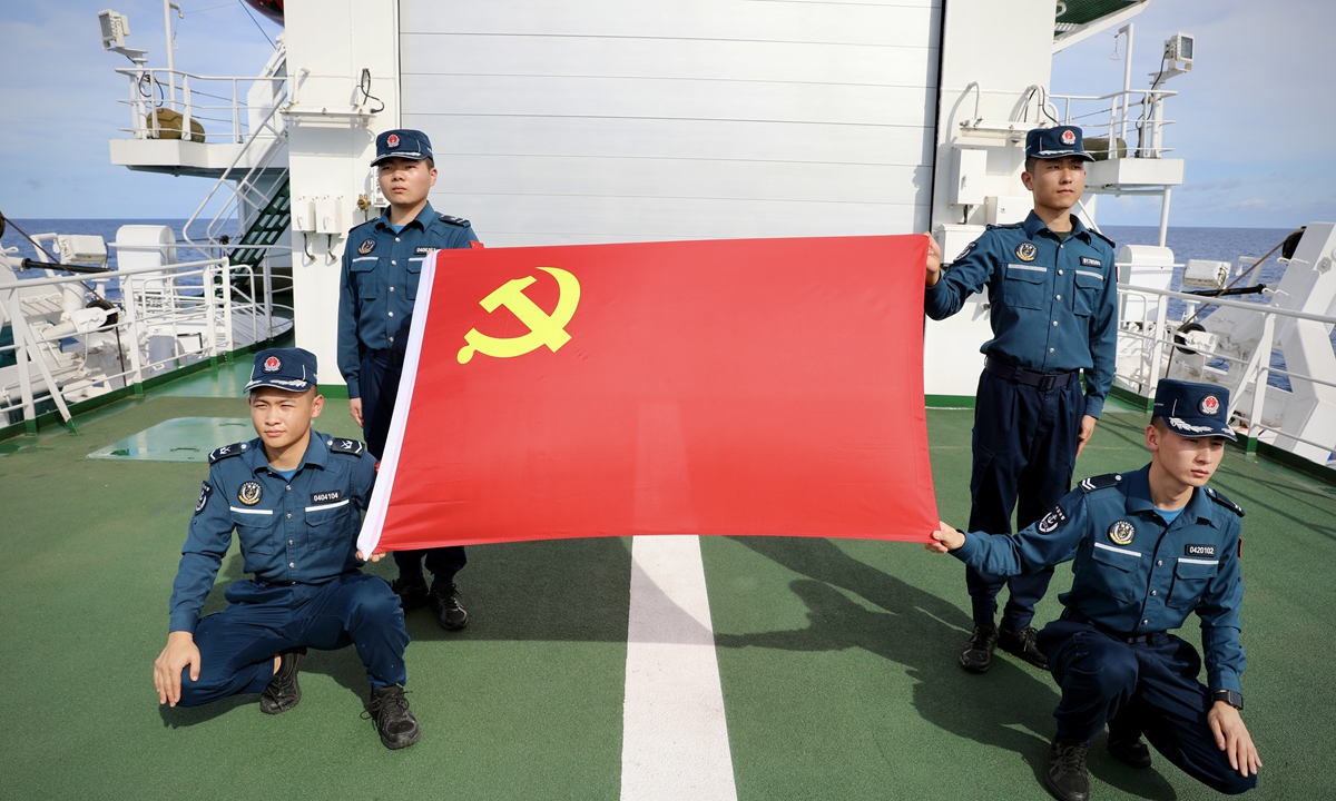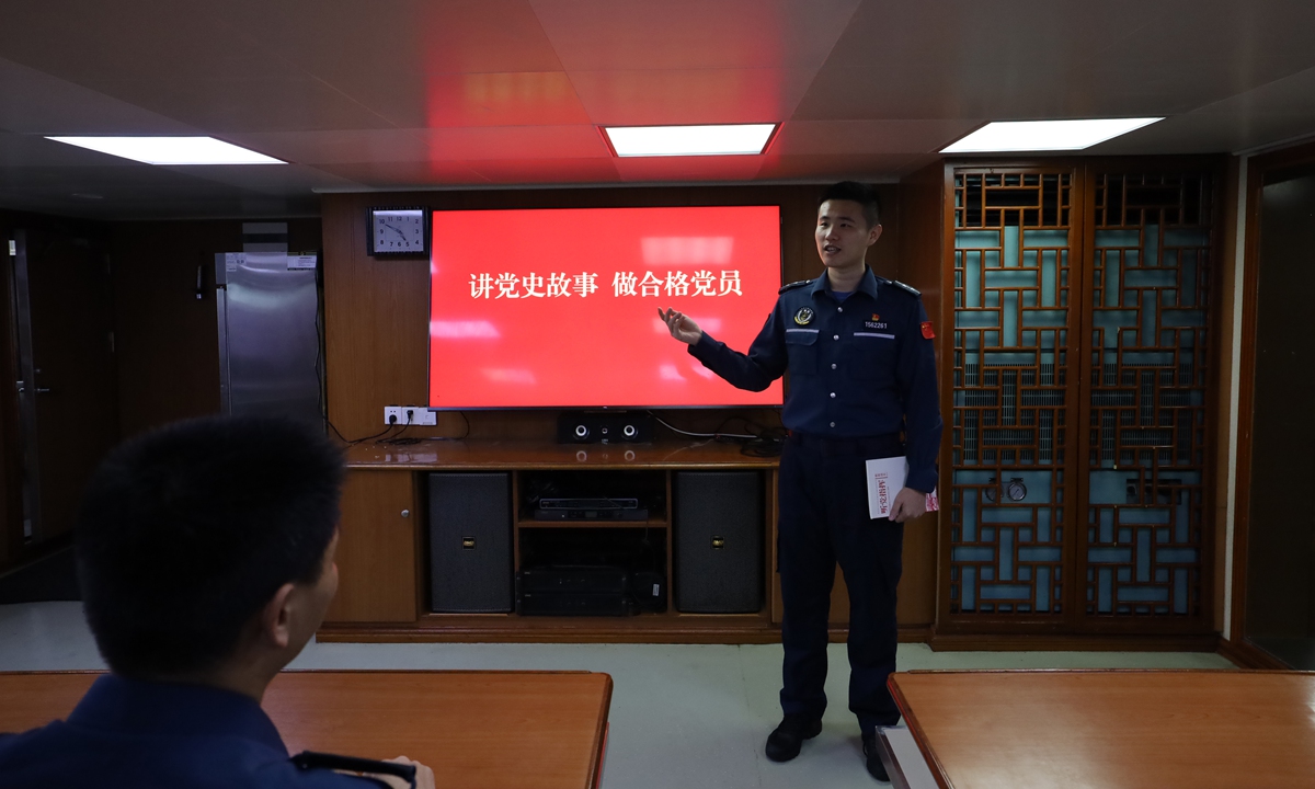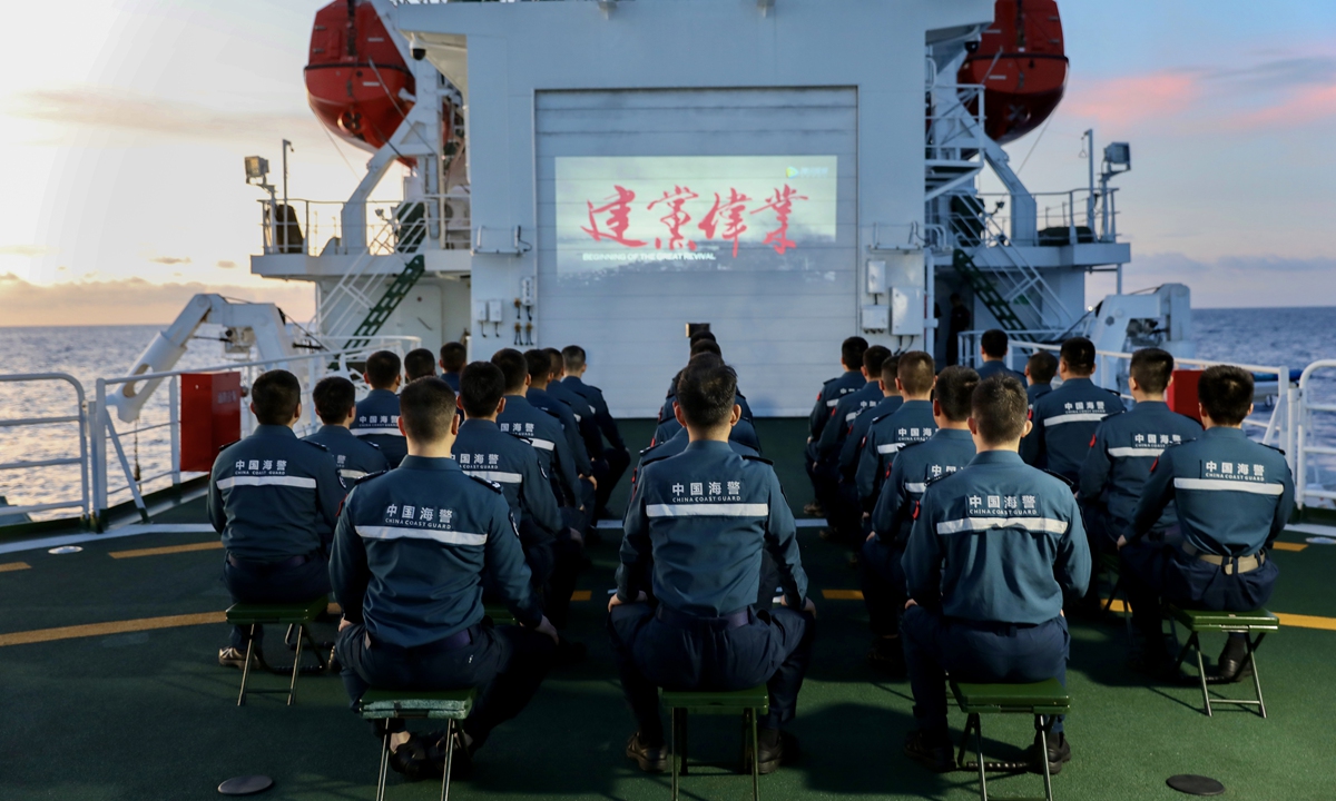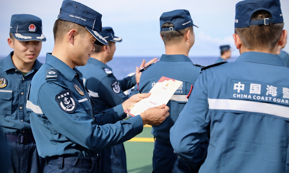 On board, Party members renewed their oath of joining the Party, celebrated their "political birthday," watched "red" movies, shared stories of Party history, and felt the revolutionary ancestors' passion and noble beliefs. They strengthened the vanguard consciousness of Party members, further solidified their determination to defend the country's maritime borders, and uphold the belief in safeguarding the country's maritime rights and interests. Photos: Courtesy of China Coast Guard