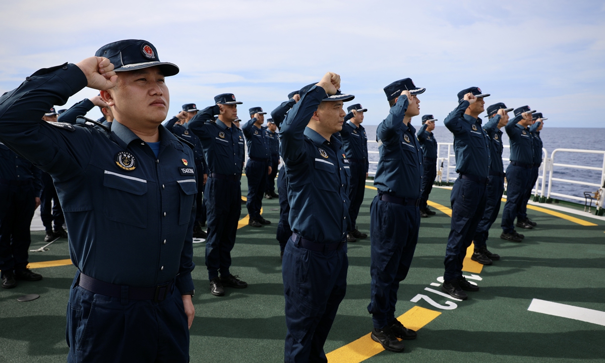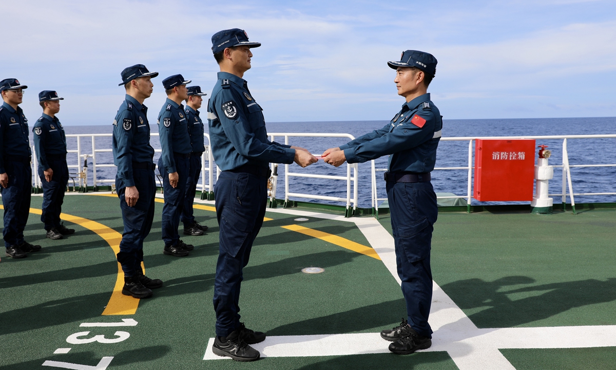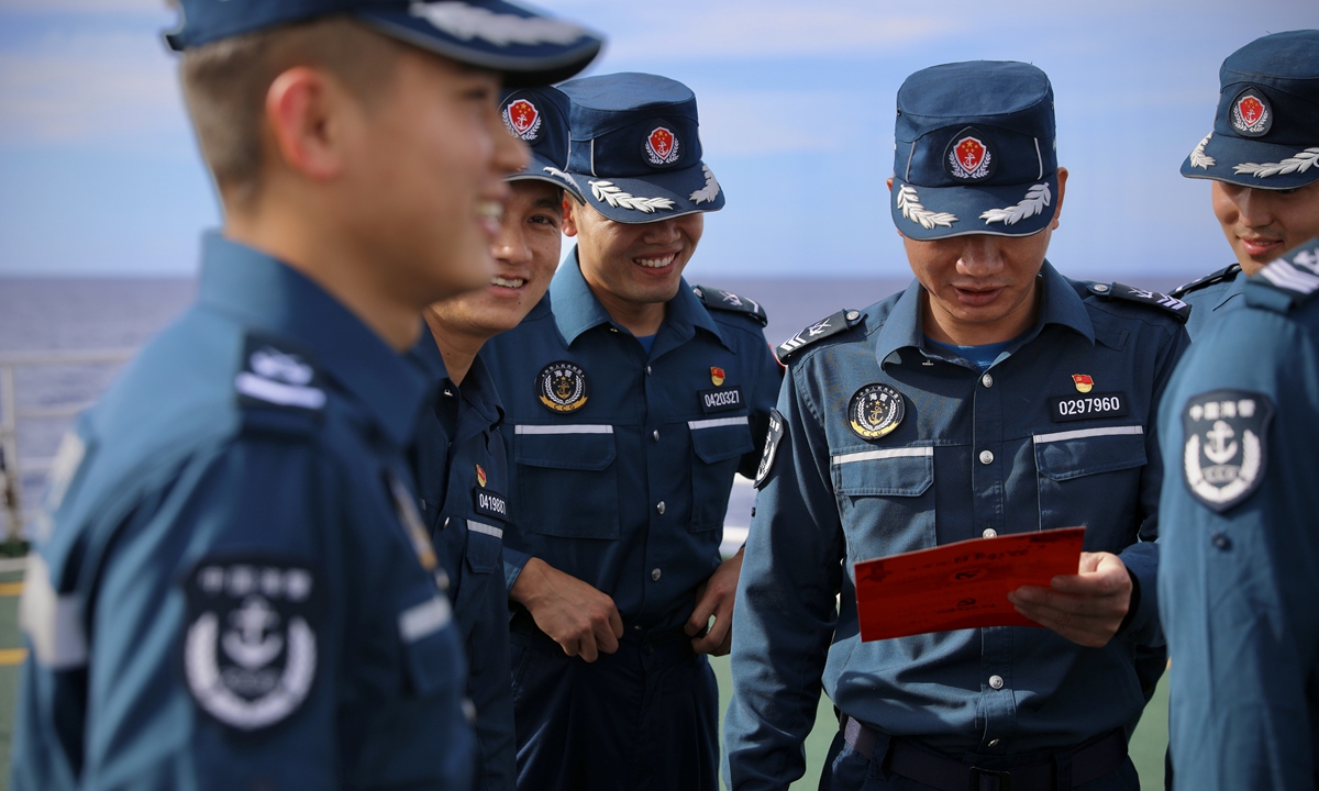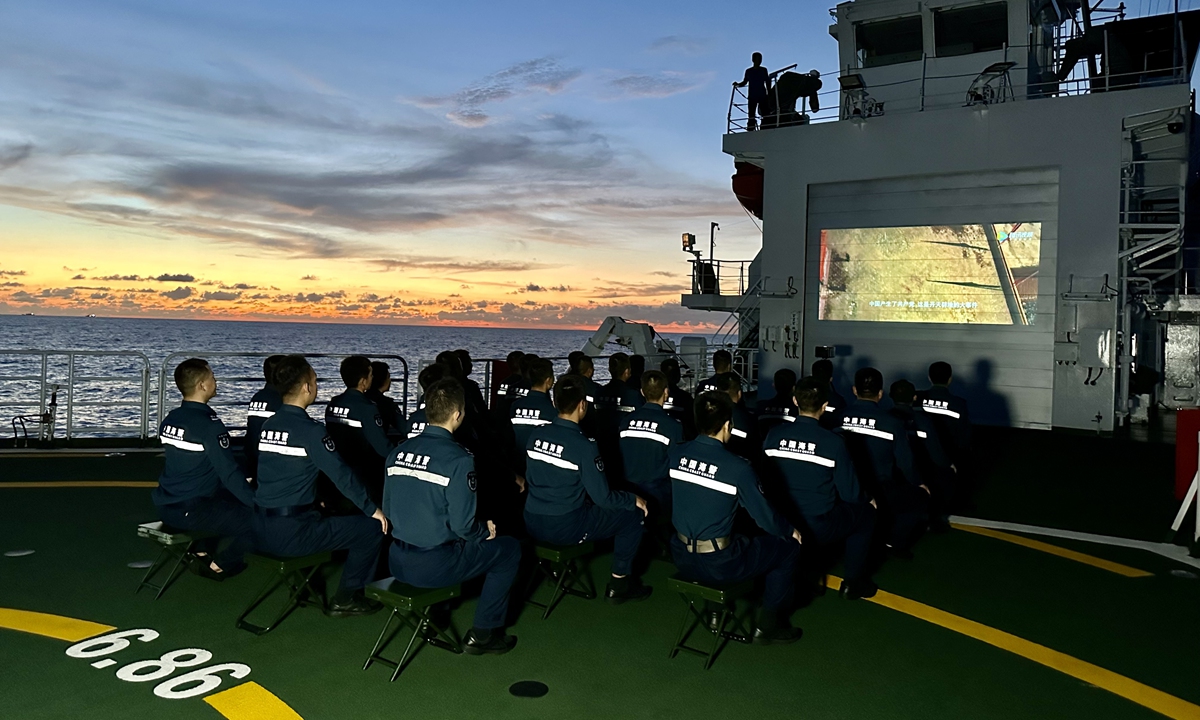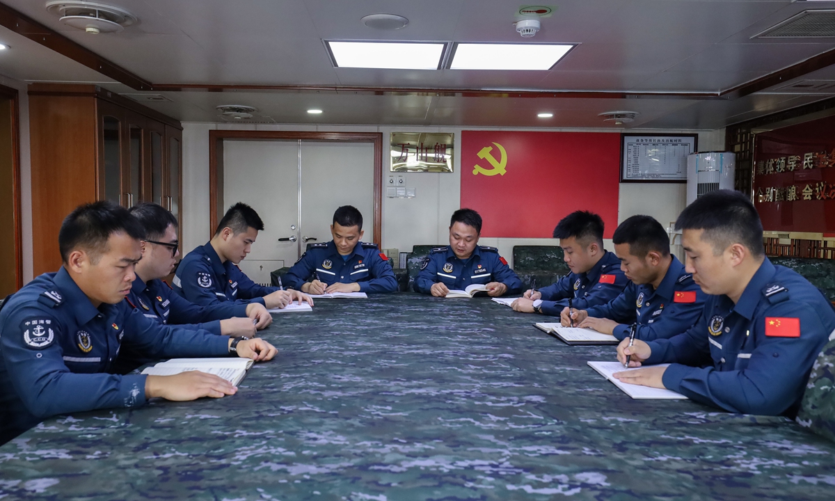 On board, Party members renewed their oath of joining the Party, celebrated their "political birthday," watched "red" movies, shared stories of Party history, and felt the revolutionary ancestors' passion and noble beliefs. They strengthened the vanguard consciousness of Party members, further solidified their determination to defend the country's maritime borders, and uphold the belief in safeguarding the country's maritime rights and interests. Photos: Courtesy of China Coast Guard