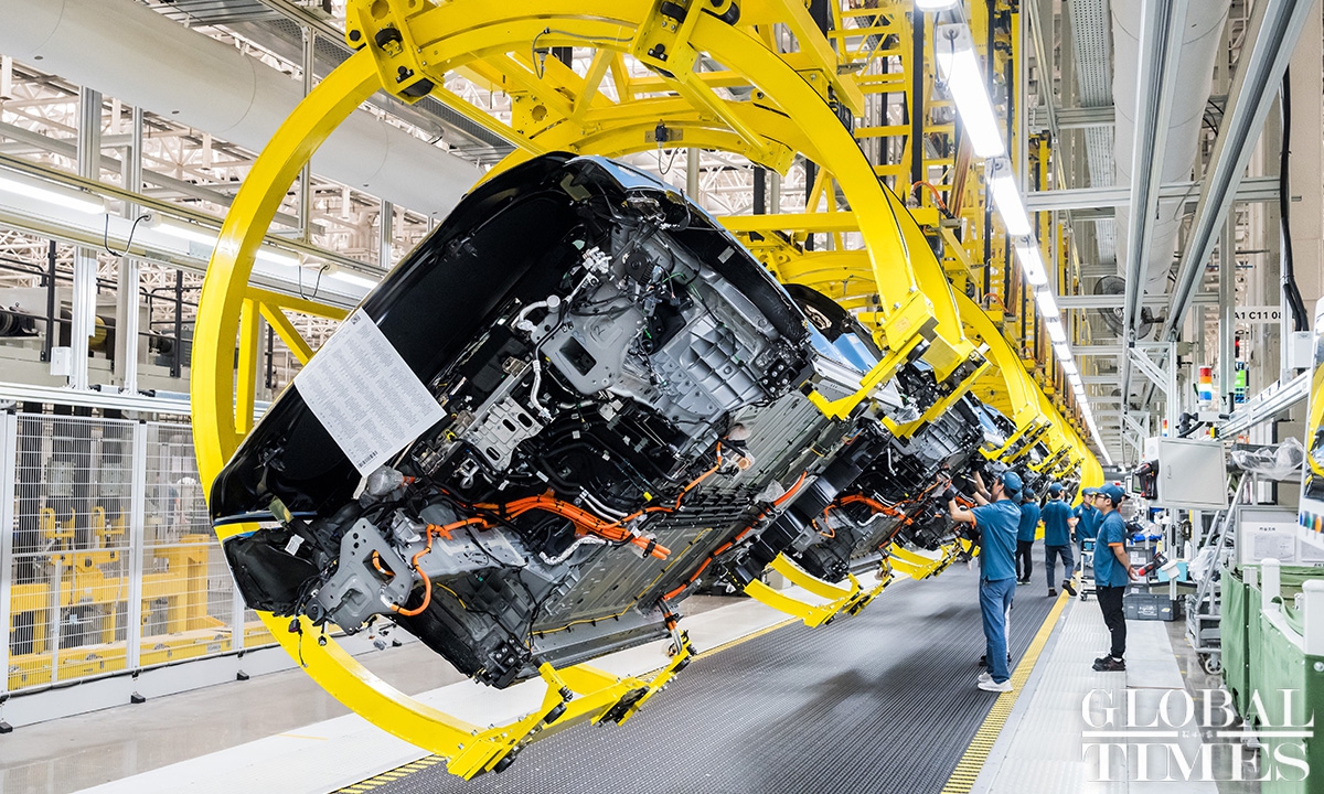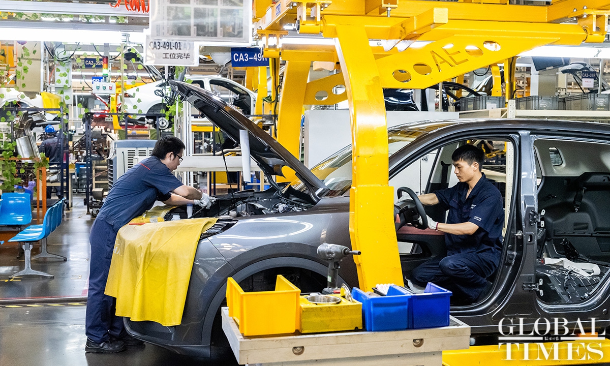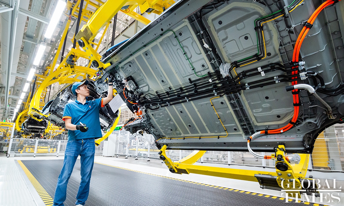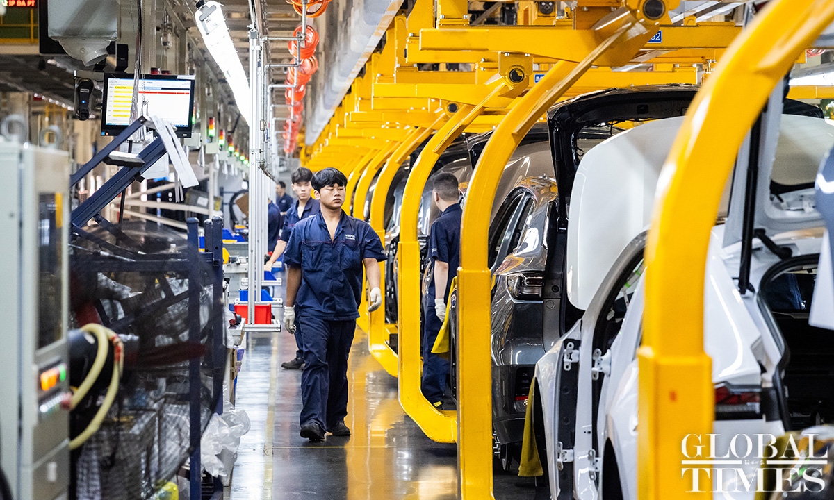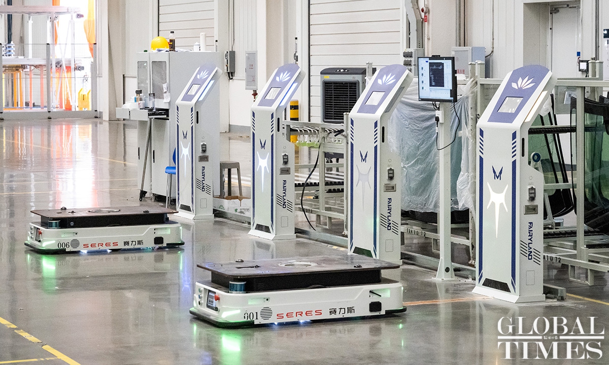 The daily manufacturing at the Seres Group’s super factory and at a Changan Automobile’s factory in Southwest China’s Chongqing Municipality involves automated robotic arms operating seamlessly to execute sophisticated tasks at production lines, parts and components being accurately delivered by logistics robots, as well as specialized workers facilitating operations. Chongqing has been stepping up efforts in achieving its goal of constructing a trillion-yuan ($137.49 billion) level world-class intelligent new-energy vehicle industry cluster. In the first five months of 2024, Chongqing manufactured a total of 997, 000 vehicles for a total annual growth of 15.7 percent, ranking first nationwide. Among them, the city produced 306,000 NEVs, achieving a year-on-year increase of 144.1 percent, according to data released by local statistics bureau. Photos: Chen Tao/GT
