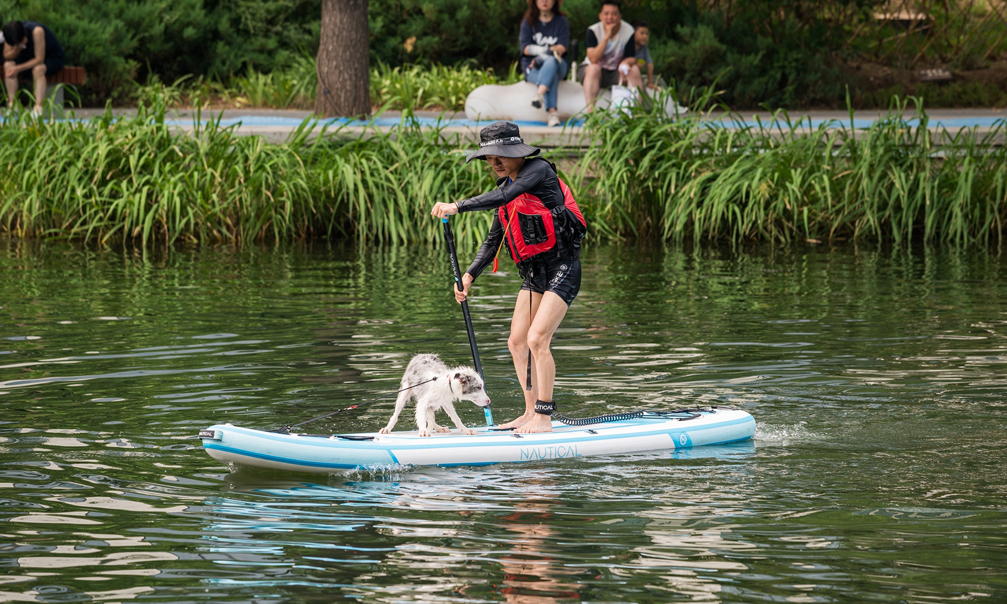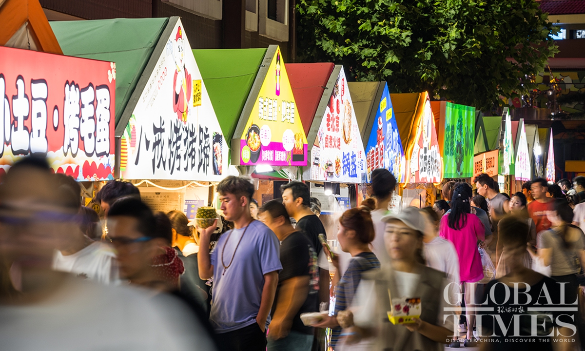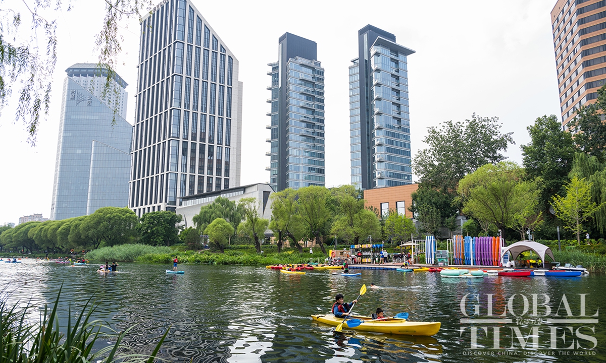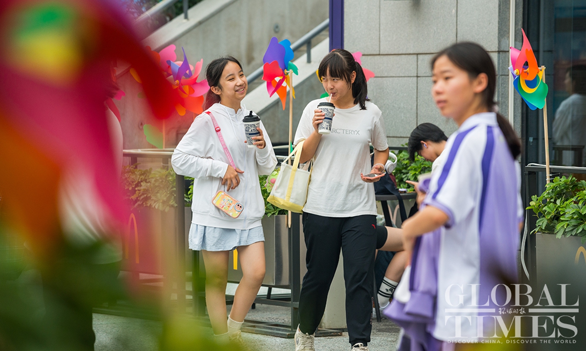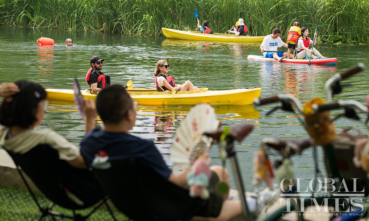 On July 8, as Beijing continues to endure a combination of high temperatures and thunderstorms since the start of the Lesser Heat solar term, the city has experienced increased humidity and an intense feeling of muggy heat. In response, more residents and tourists are flocking to waterfronts, public fountains, shopping centers, and open-air night markets to find respite. People are enjoying water activities, shopping, and dining out in hopes of escaping the oppressive "sauna weather." (Photo: Chen Tao/GT)