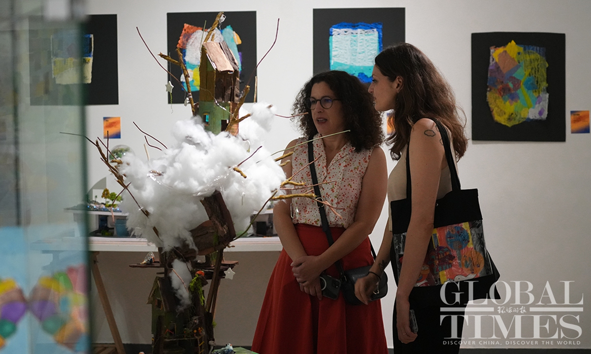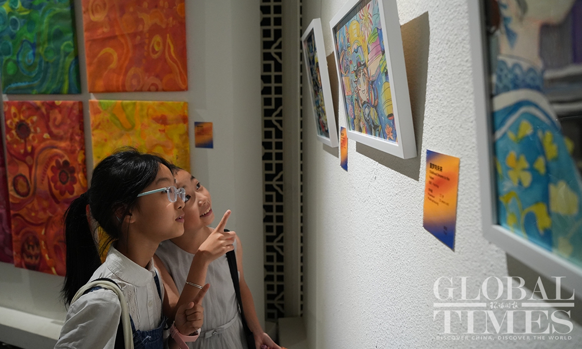 The 9th International Children's Creative Art Exhibition kicked off in Shanghai on July 16. Under the title "Dreams for the Future," this year's exhibition attracted young artists from more than 20 countries. Around 160 pieces were selected among hundreds of submitted artworks. Through a variety of media such as painting, calligraphy, photography, installation, and handicraft, children present their bright ideas about future cities and societies under different cultural backgrounds. Additionally, the expo features a special section of Donald Duck's animation design from Austria and a section dedicated to artwork made by children with special needs.(Photo: Lu Ting/GT)