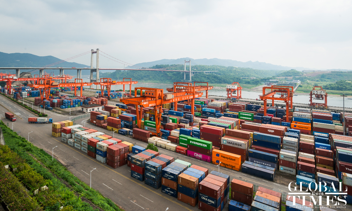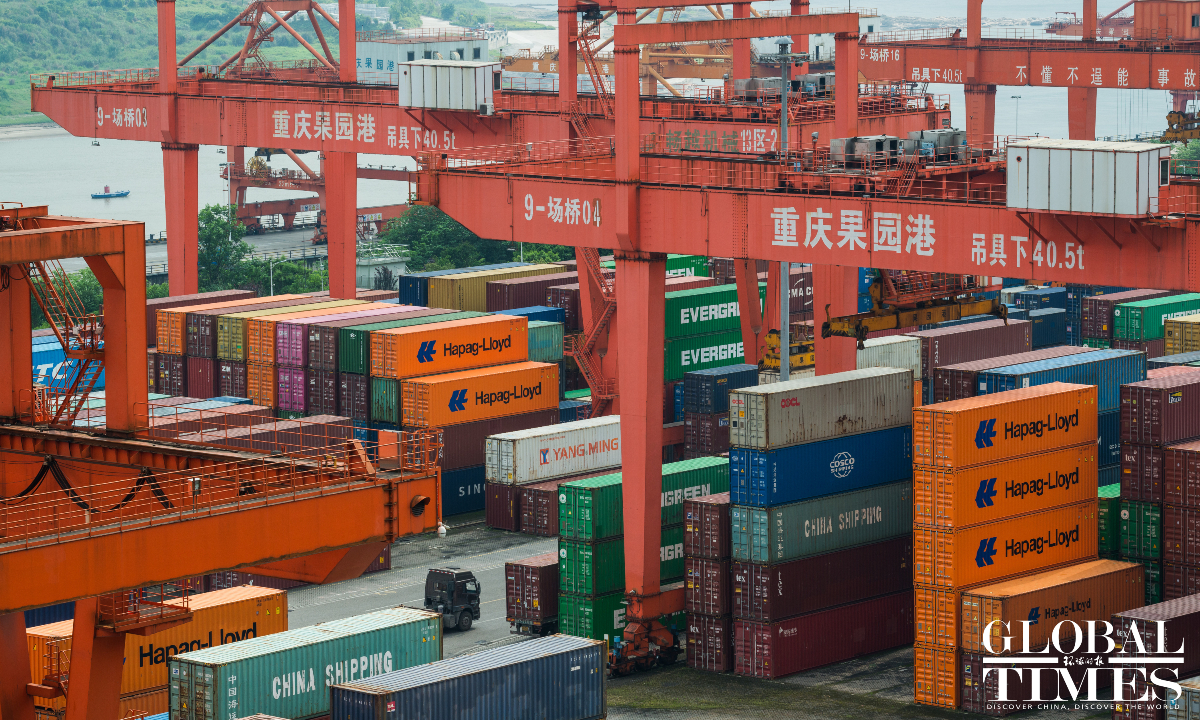 Leveraging its unique location in western China, the operation of China-Europe freight trains, the New International Land-Sea Trade Corridor, and strong policy support, Southwest China’s Chongqing Municipality has played a pivotal role in fueling China's market and transforming global trade dynamics. Scenes at the Guoyuan Port in the Liangjiang New Area, the Chongqing Railway Port, Xinglongchang marshalling station, and the International Logistics Hub in Inland China Exhibition Center, which are all located in the Chongqing International Logistics Hub Park, showcase the megacity’s efforts in constructing this key transportation node. (Photos: Chen Tao/GT)