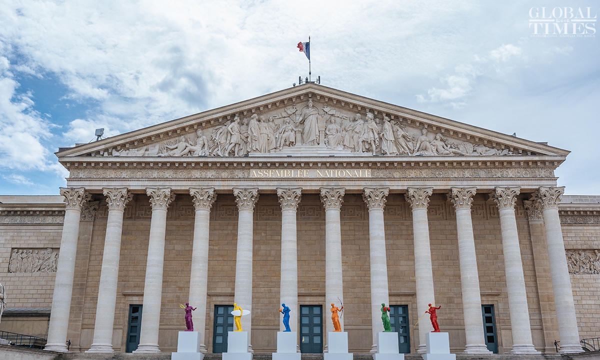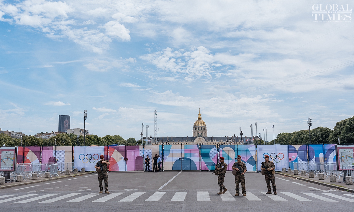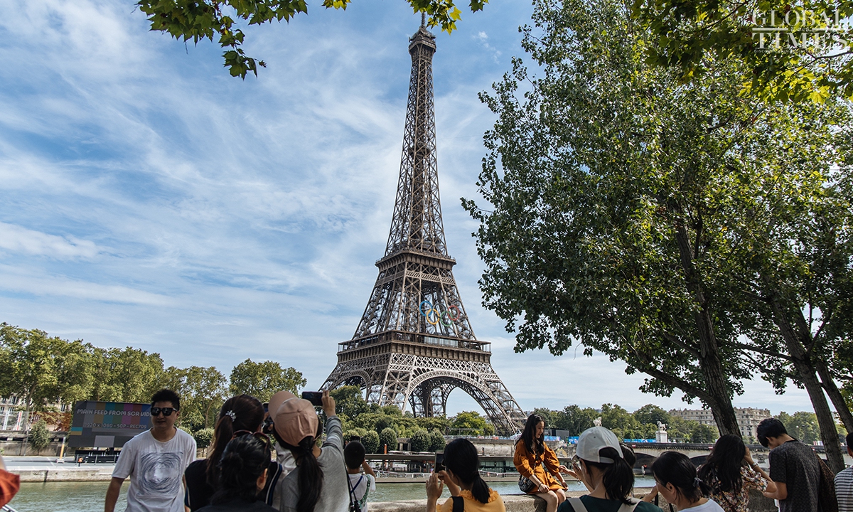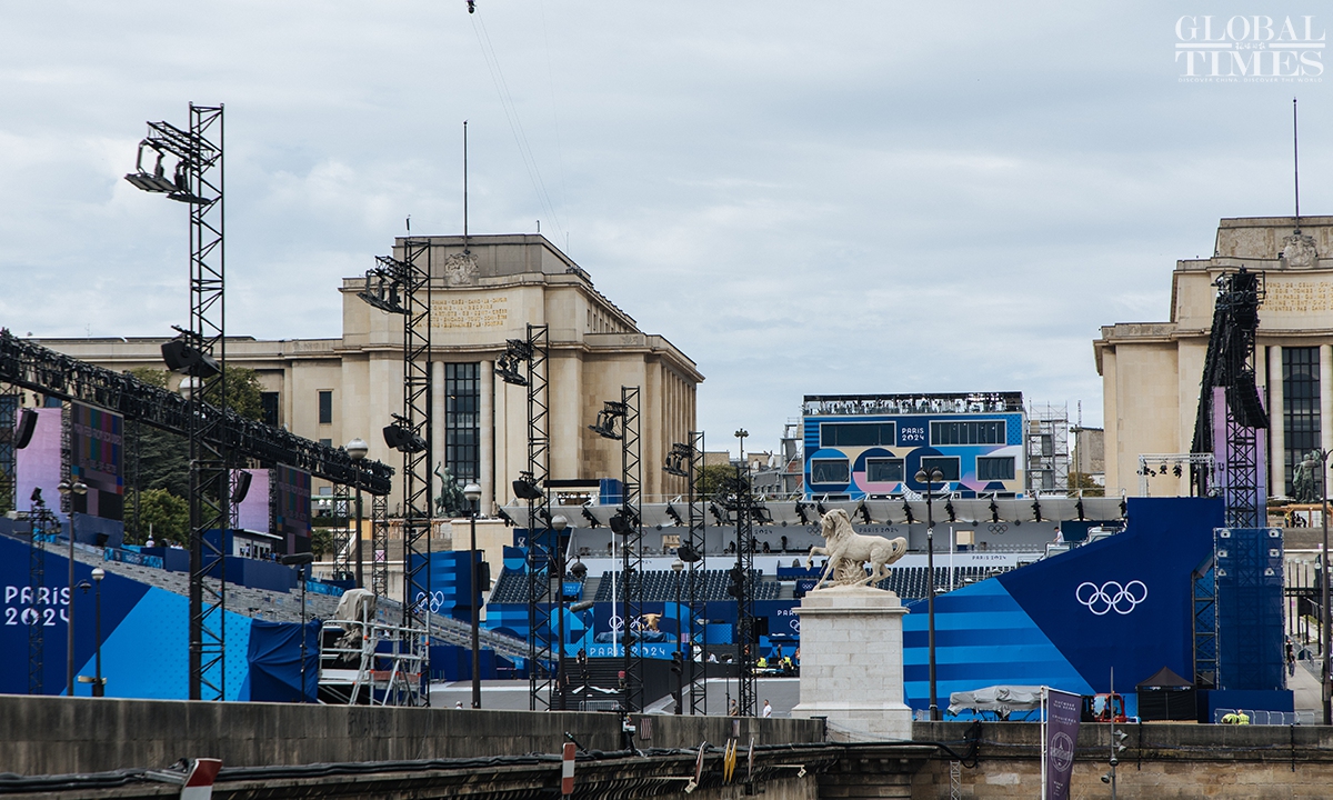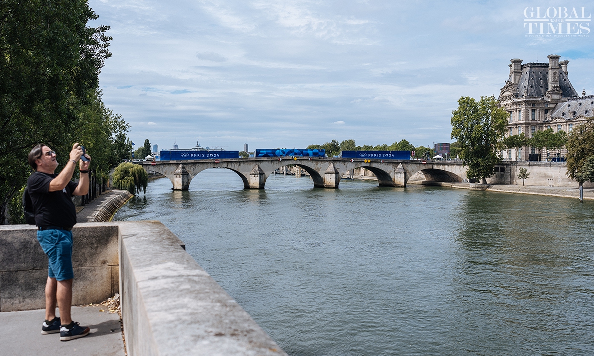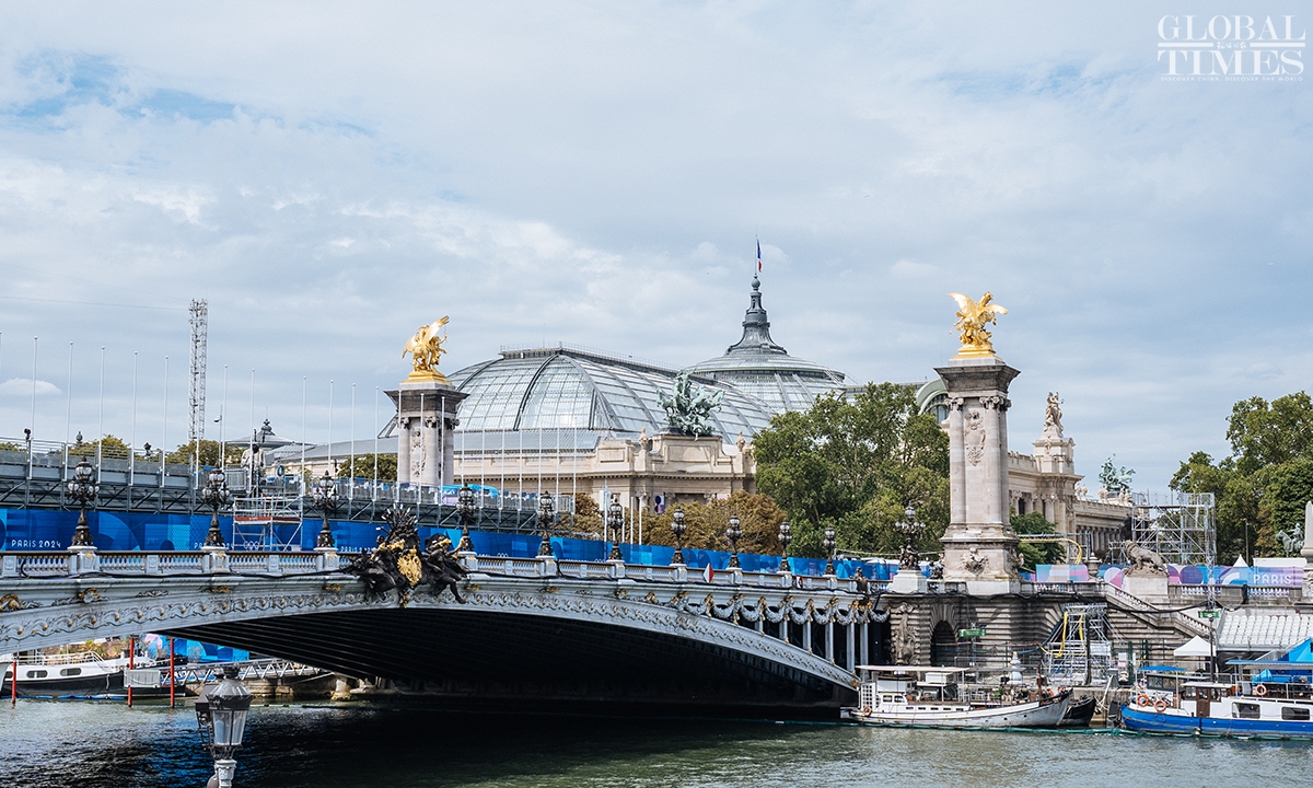 On July 25, local time, the Seine River banks in Paris are adorned with Olympic elements in preparation for the opening ceremony of the Paris Olympics. For the first time in history, the opening ceremony of the Olympic Games will not take place in a stadium. (Photos: Li Hao/GT)