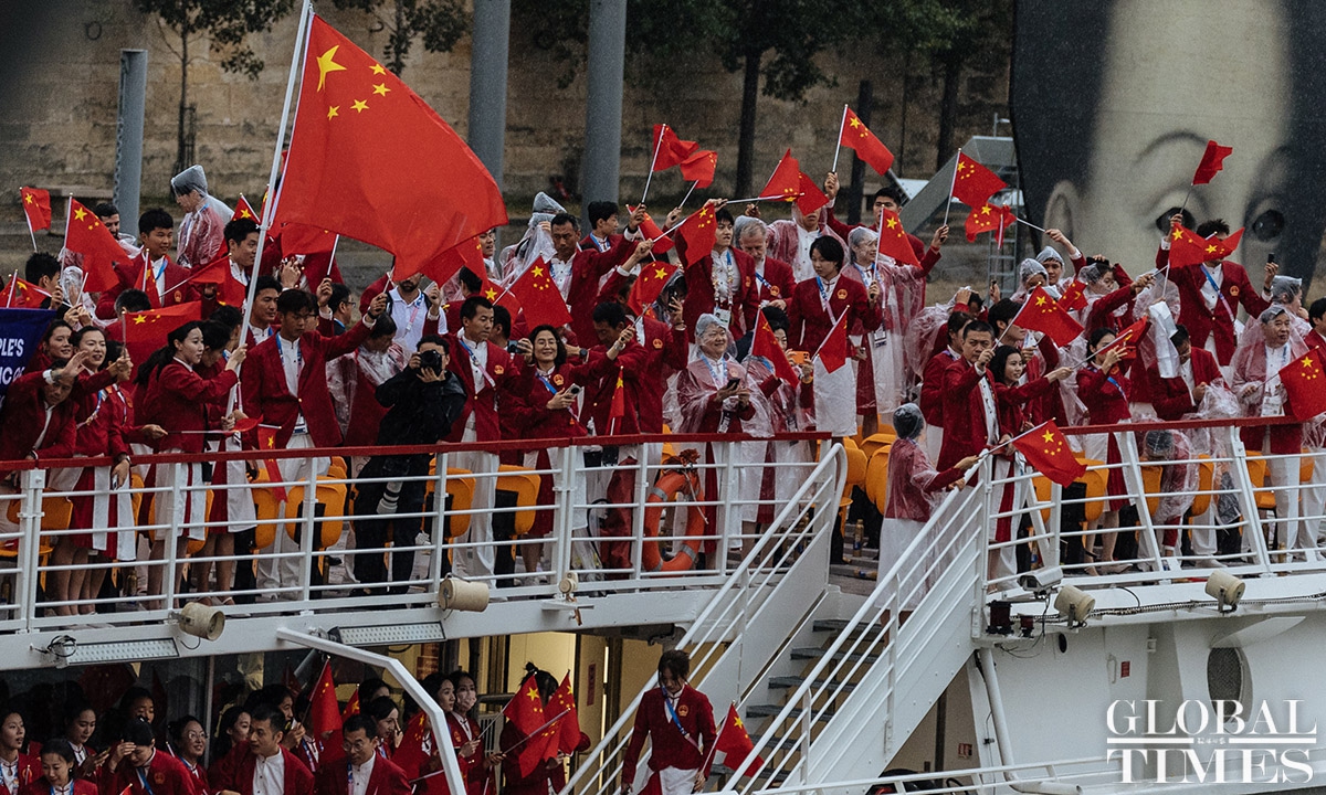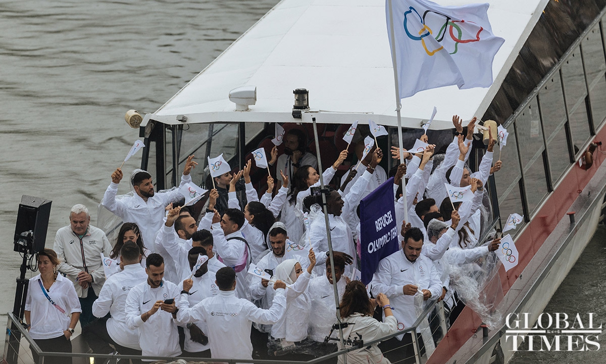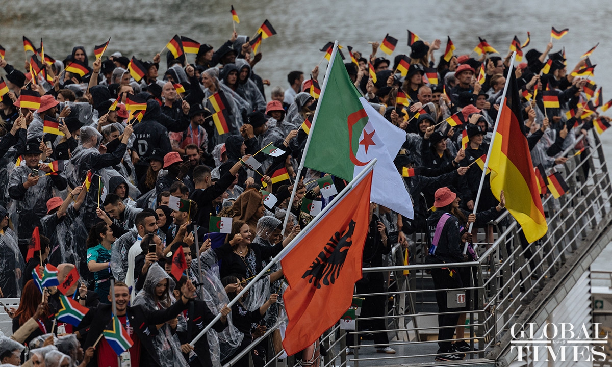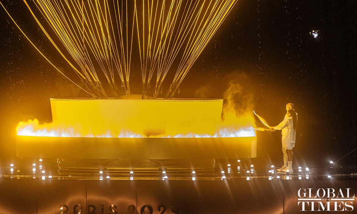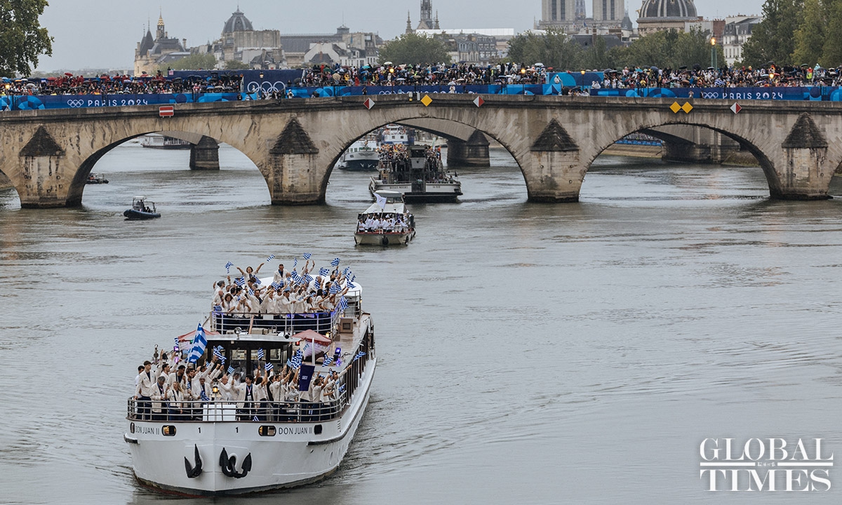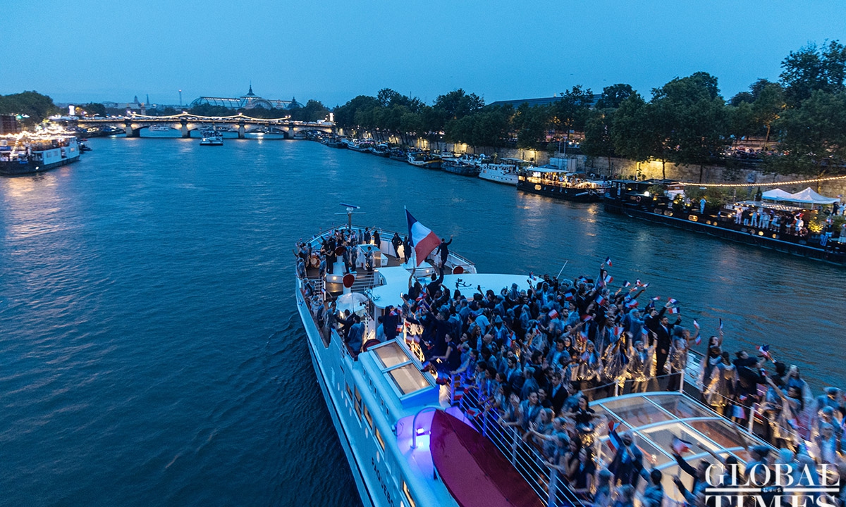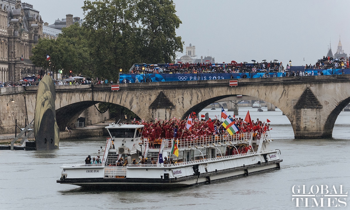 The 33rd Summer Olympic Games opening ceremony was held in Paris on Friday. This Olympic opening ceremony was the first in Olympic history to not be held inside a sports stadium. Athletes from various countries paraded along the Seine River on boats. The opening ceremony concluded with the lighting of the Olympic cauldron at the main torch in the Tuileries Garden in Paris. Photos: Li Hao/GT