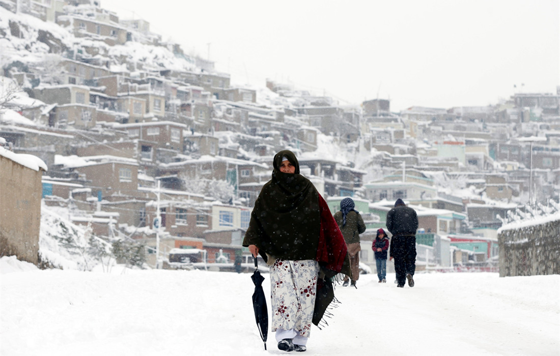 An Afghan woman walks on a snowy street in Kabul, Afghanistan on February 5. Photo: CFP/Omar Sobhani figcaption >