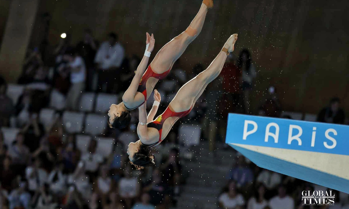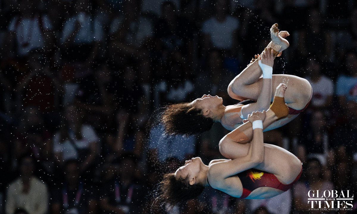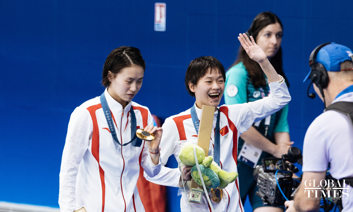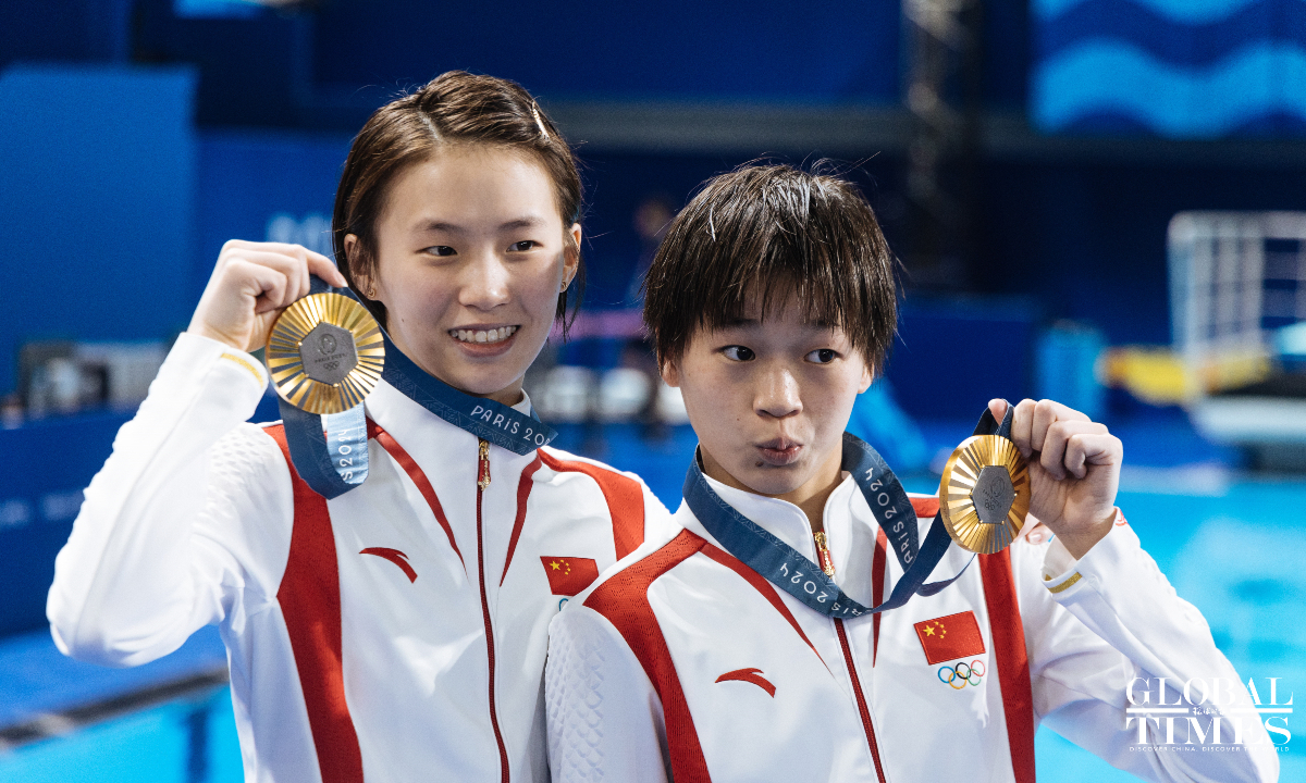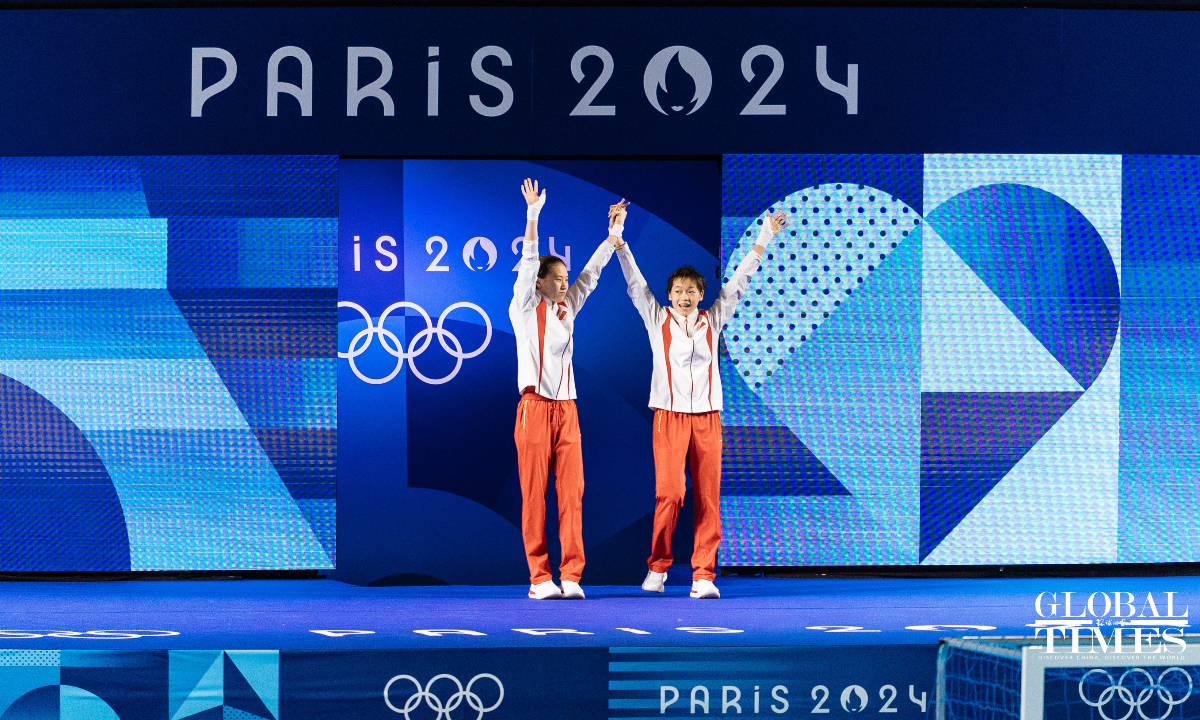 Chinese divers Chen Yuxi and Quan Hongchan won the women's synchronized 10m platform title at the Paris Olympics on Wednesday with a victory of 359.10 points. The duo helped China secure its seventh straight gold in this event at the Paris 2024 Olympics and this is also the third gold medal for the Chinese diving team. (Photos: Li Hao/GT)