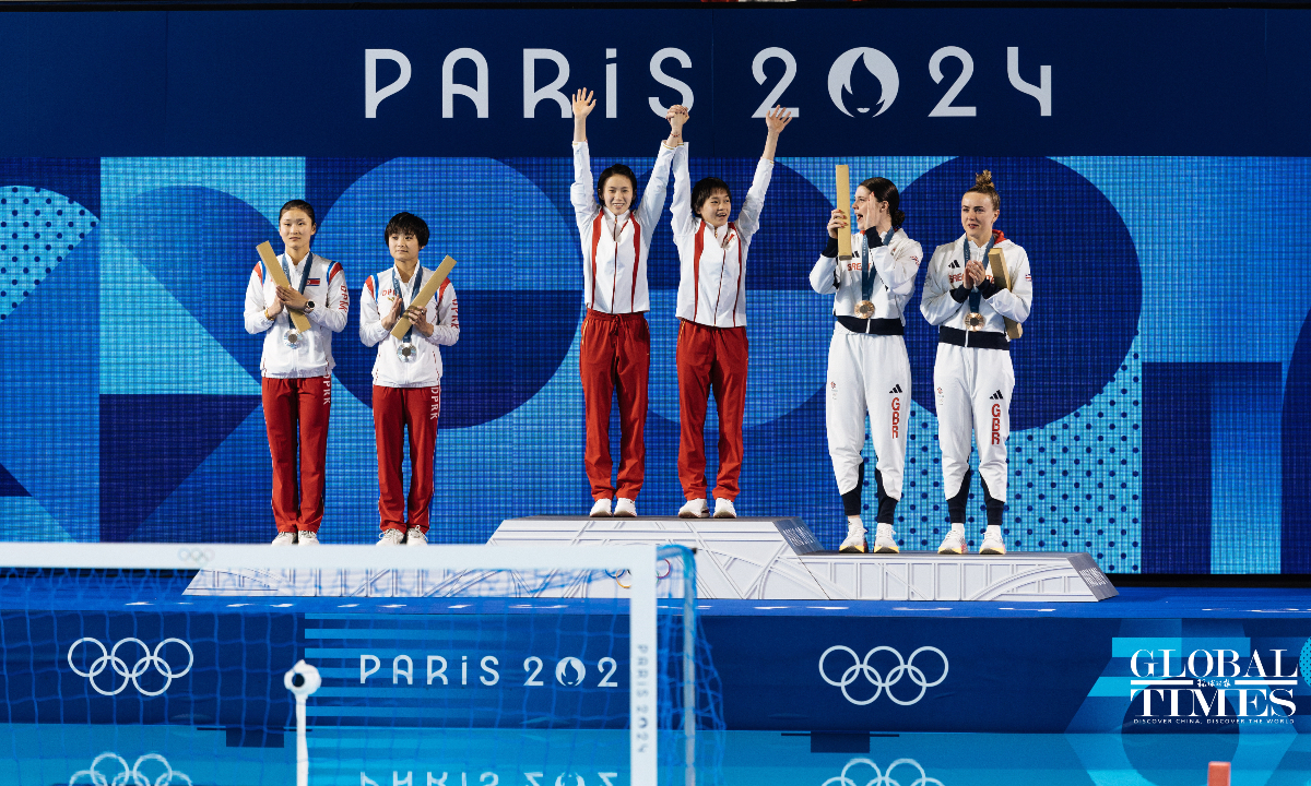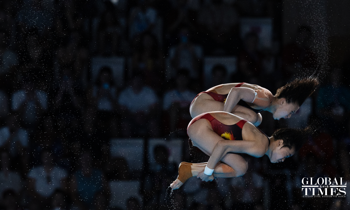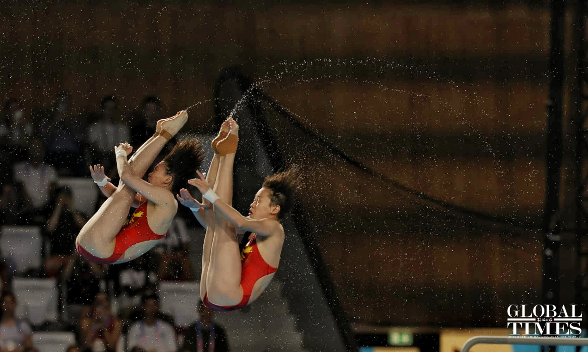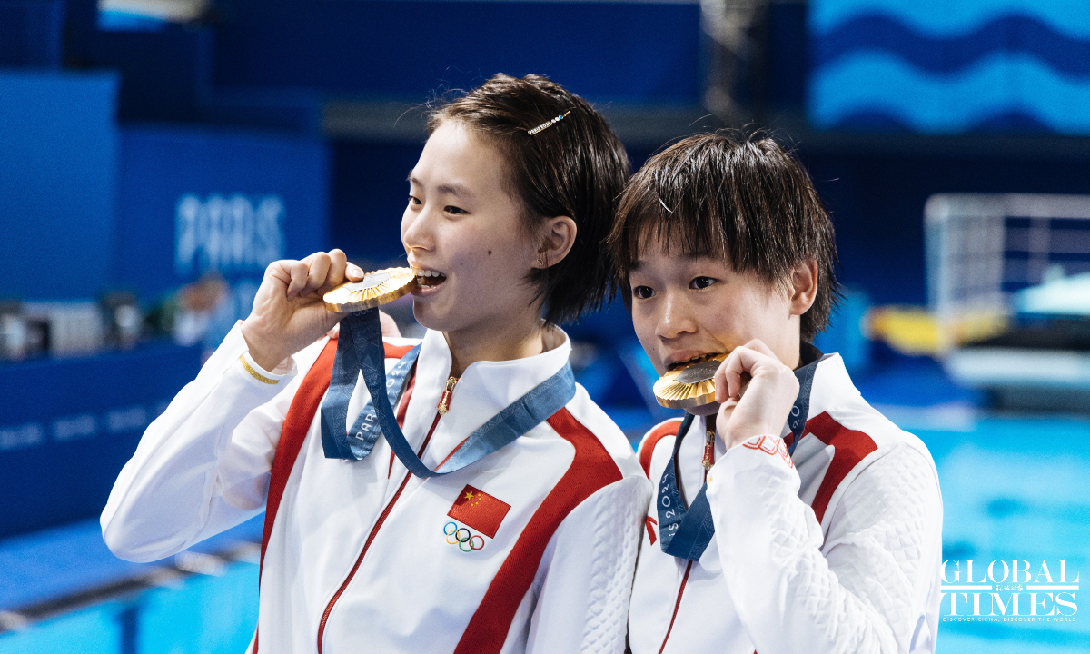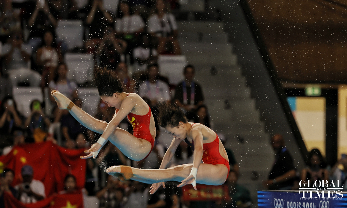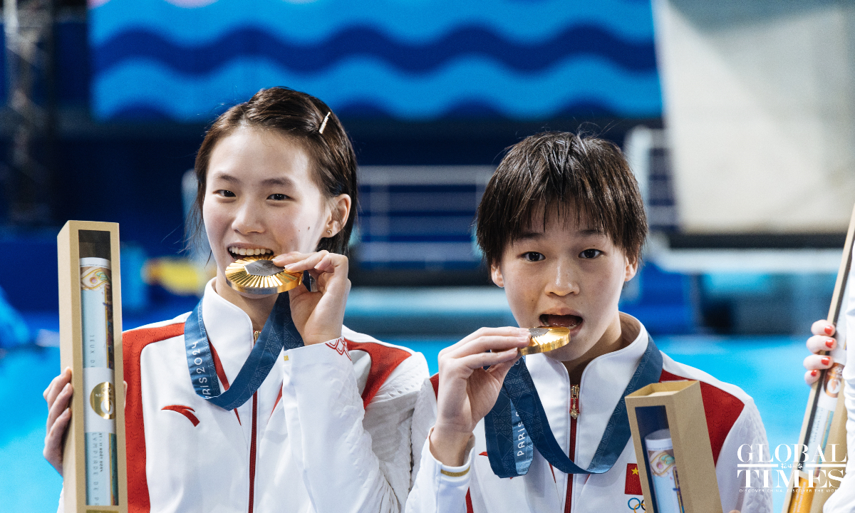 Chinese divers Chen Yuxi and Quan Hongchan won the women's synchronized 10m platform title at the Paris Olympics on Wednesday with a victory of 359.10 points. The duo helped China secure its seventh straight gold in this event at the Paris 2024 Olympics and this is also the third gold medal for the Chinese diving team. (Photos: Li Hao/GT)
