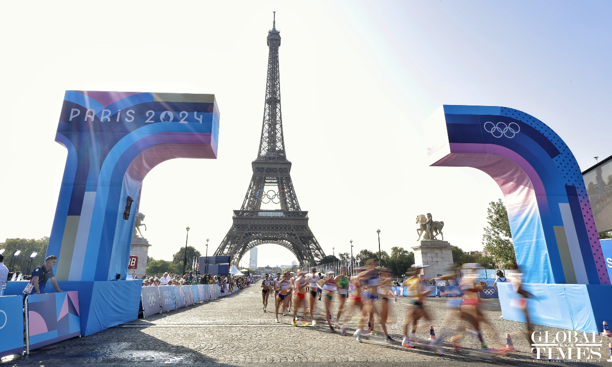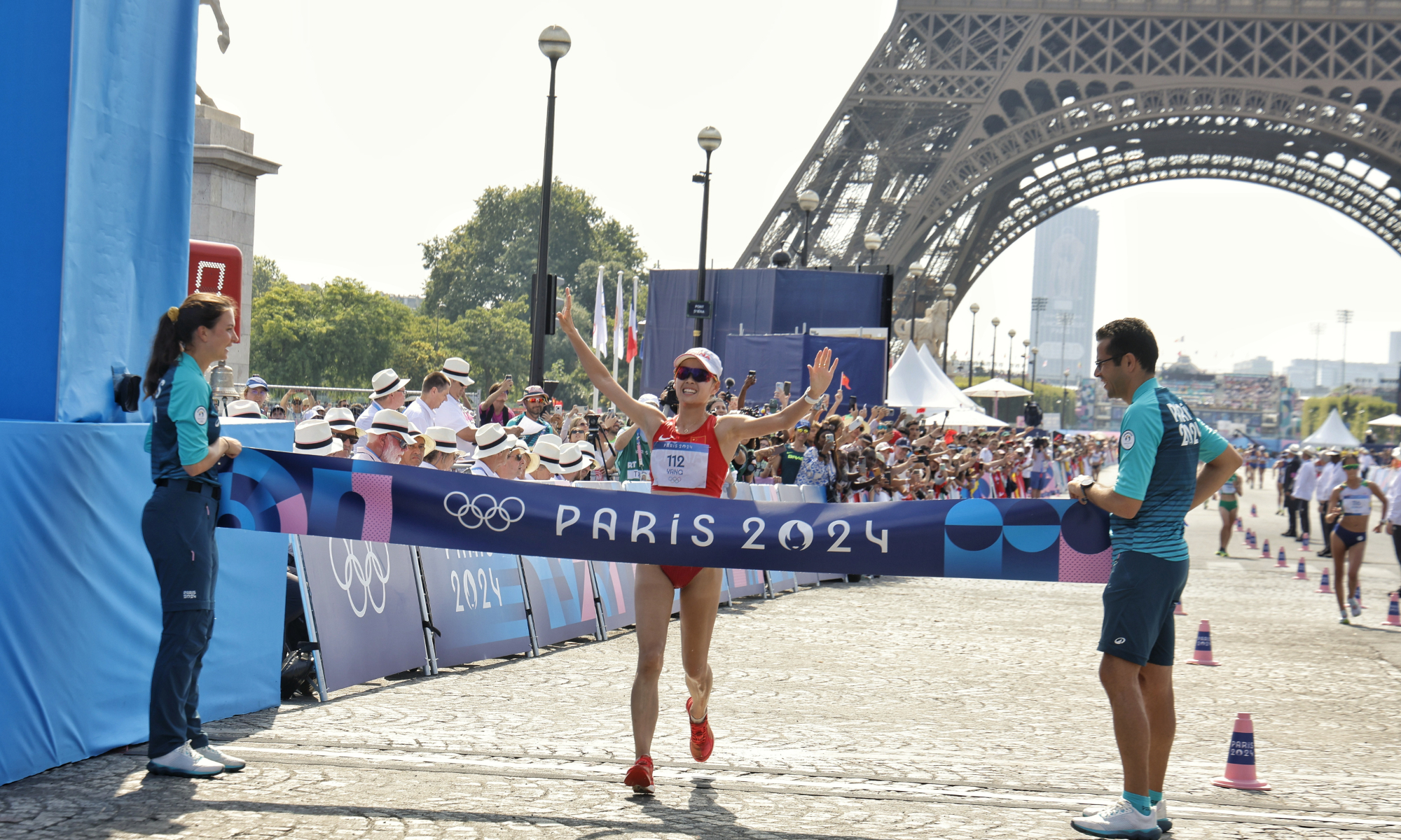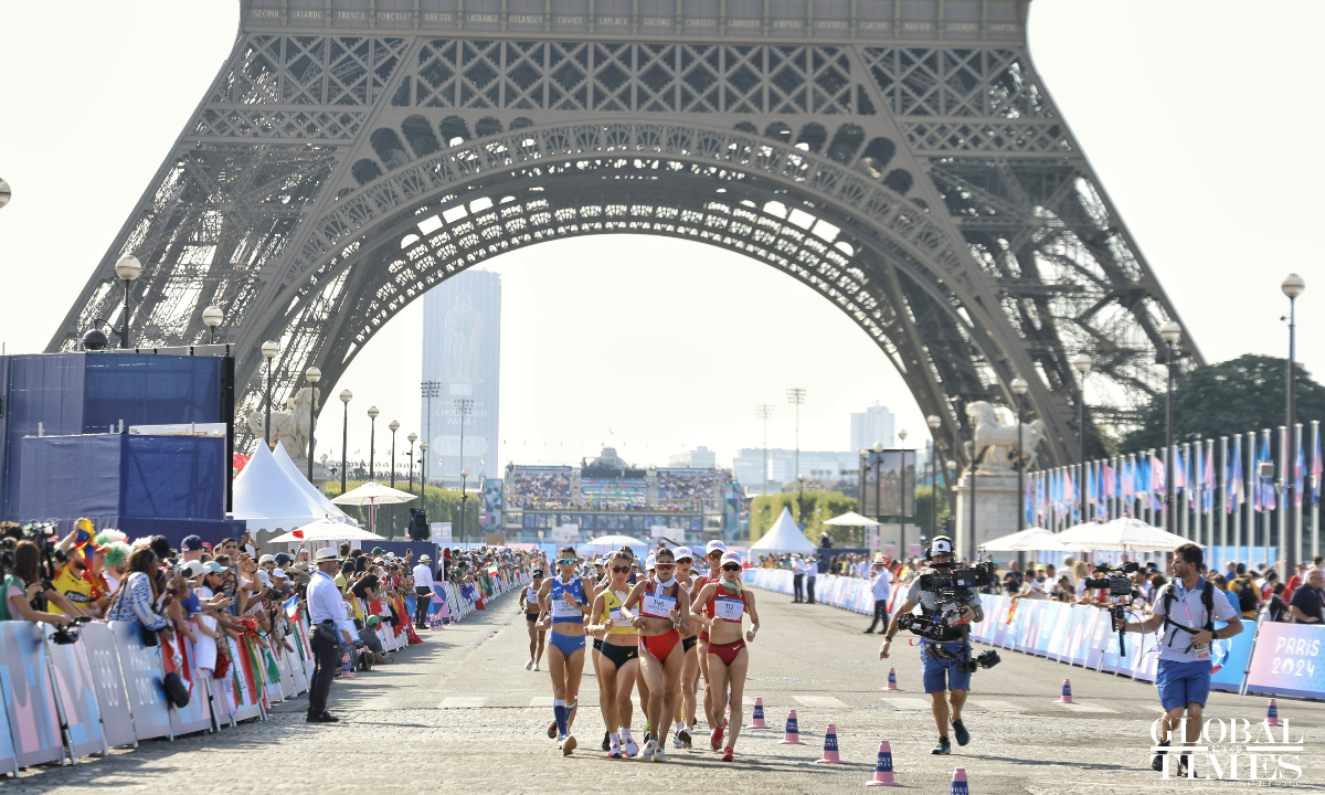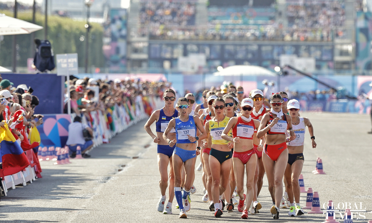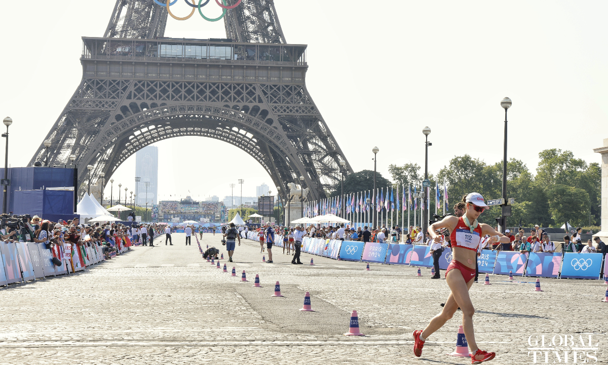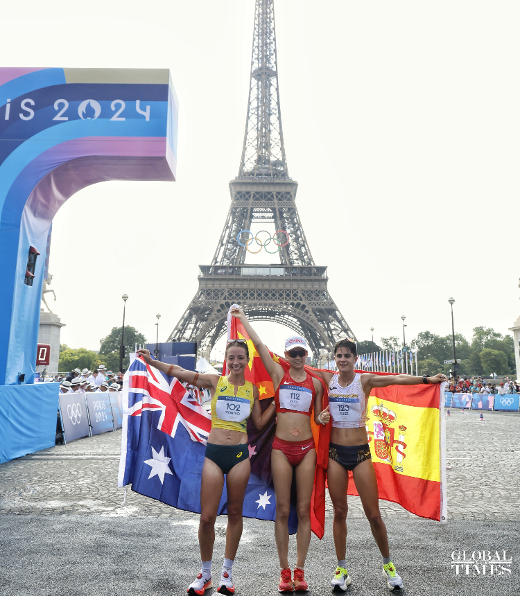 Distance race walker Yang Jiayu won the women's 20km race in 1:25:54 to secure the first gold medal in athletics. This is the 11th #gold for #China at the #Paris2024 #Olympics and the first athletics gold for China. (Photos: Li Hao/GT)