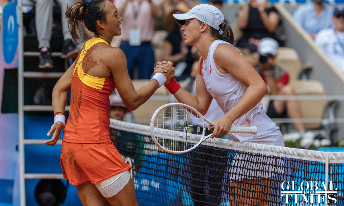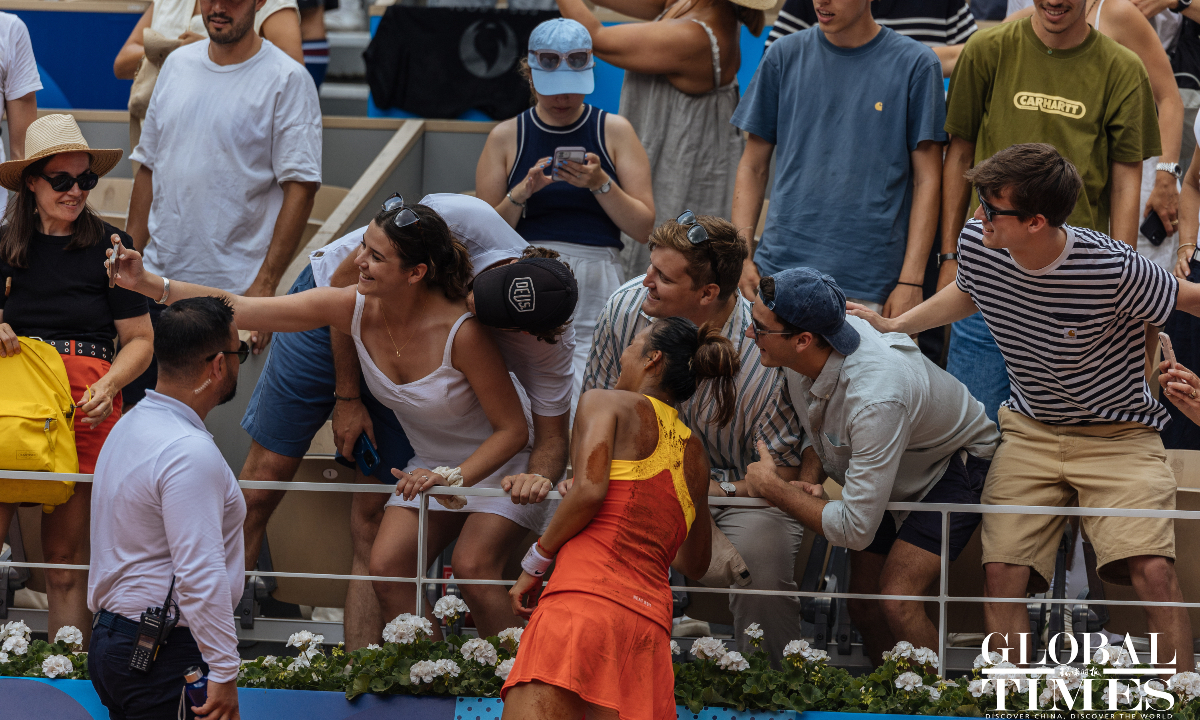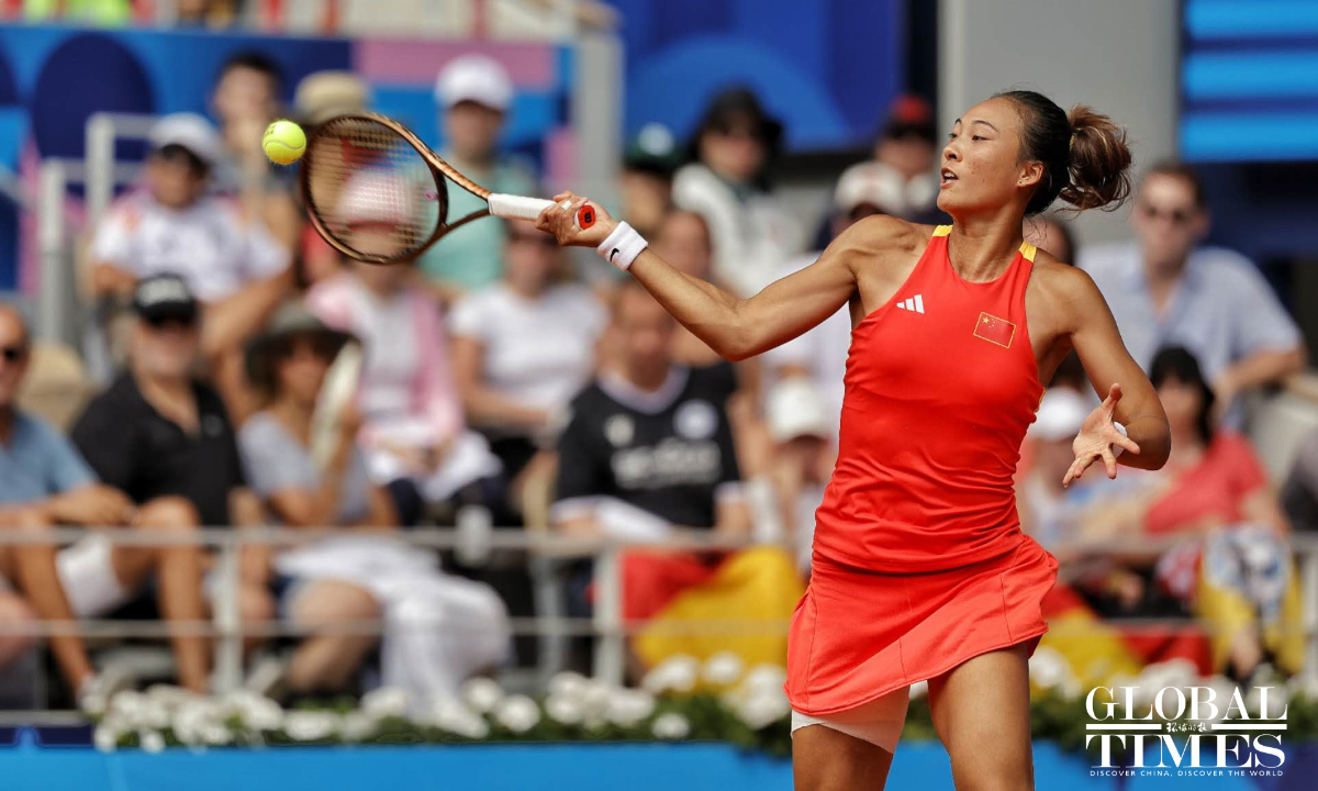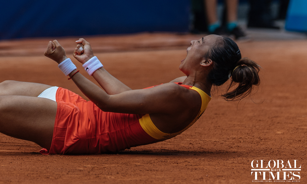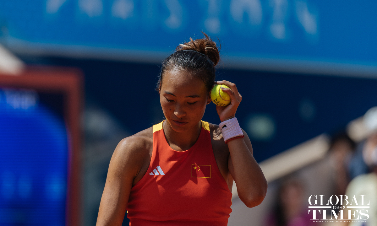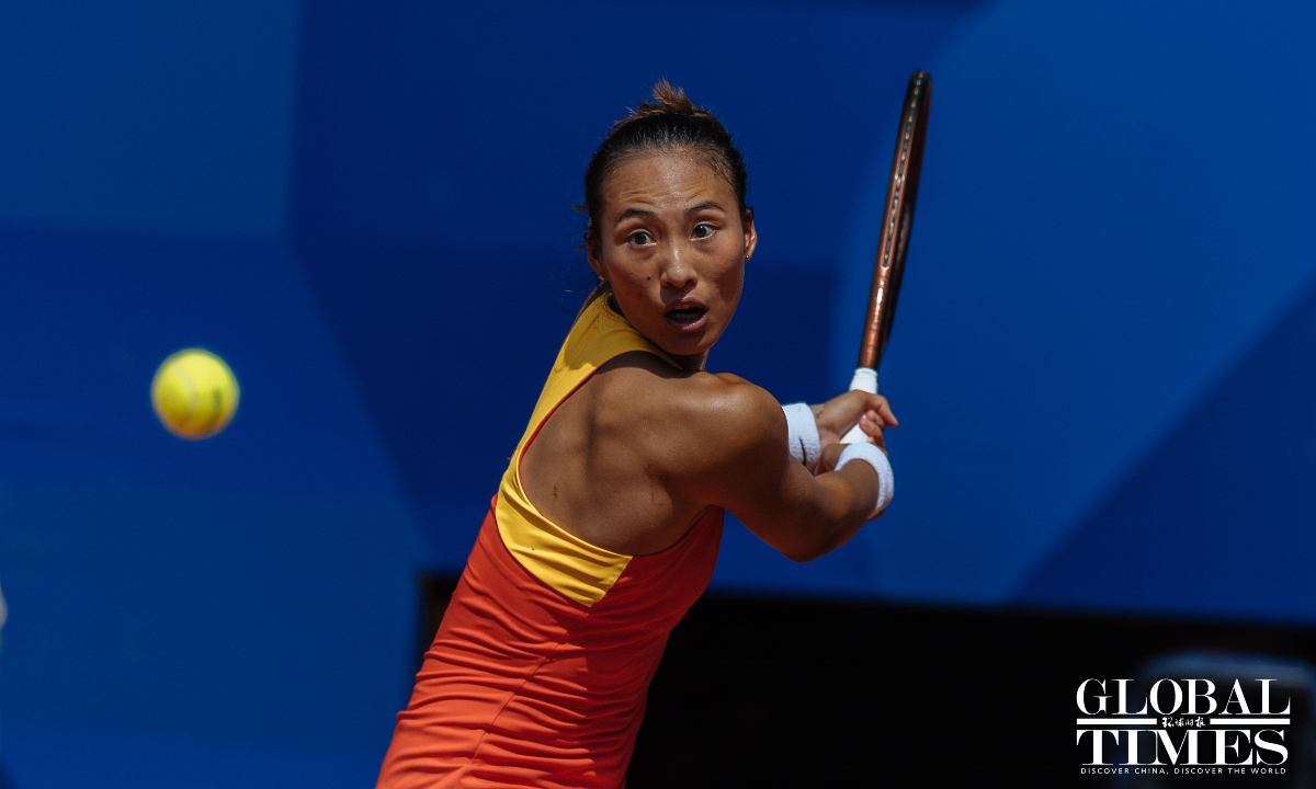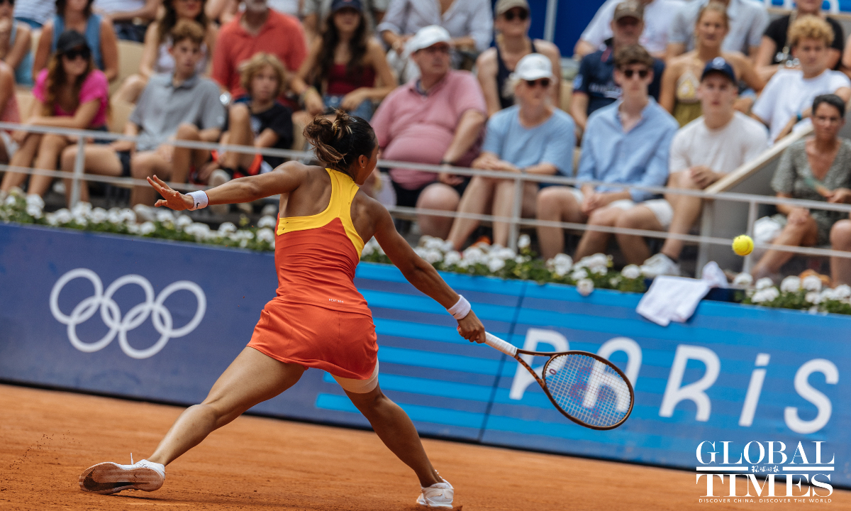 On Thursday, China's tennis sensation Zheng Qinwen made history by becoming the first Asian-born player to reach a singles final in tennis at the Olympics. The sixth seed delivered a stunning performance, defeating world No.1 Iga Swiatek of Poland in the semifinals at the Paris Olympics. (Photos: Li Hao/GT)