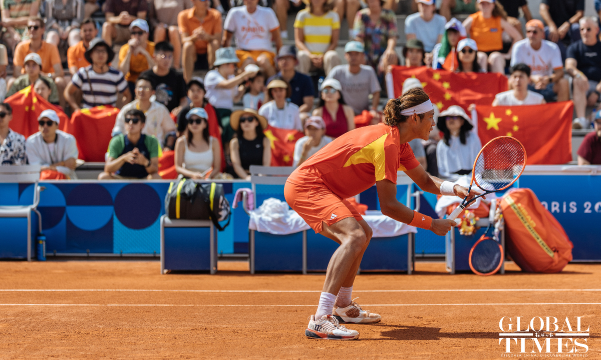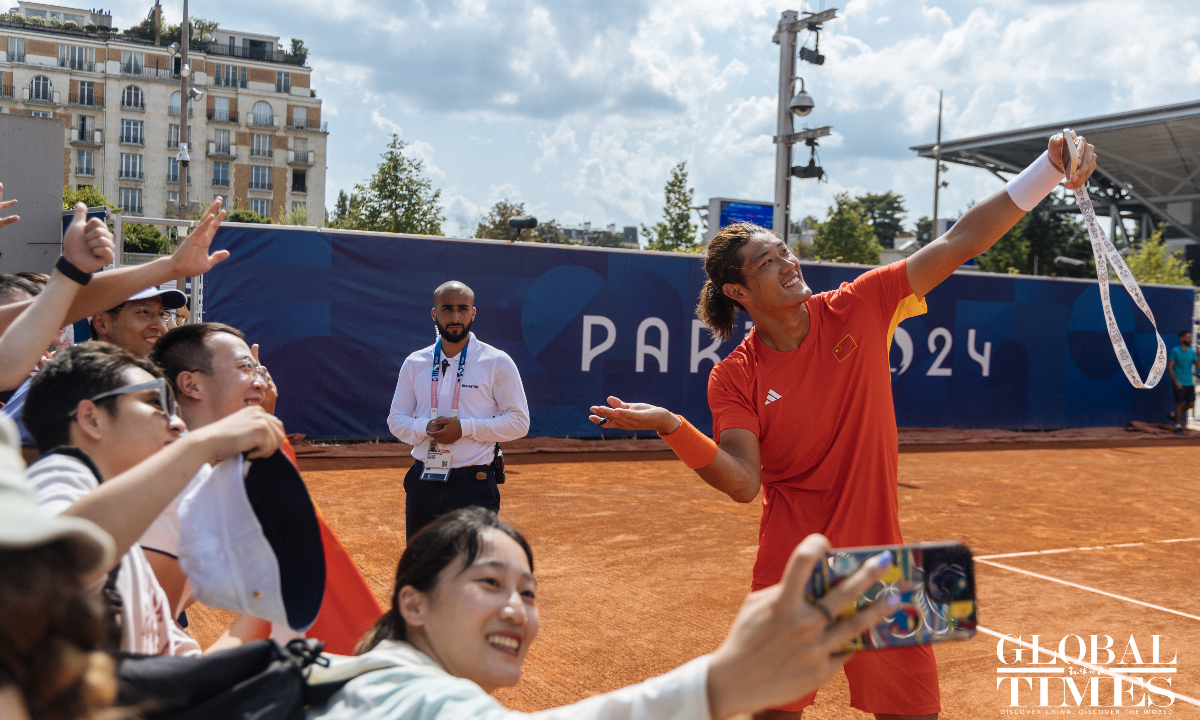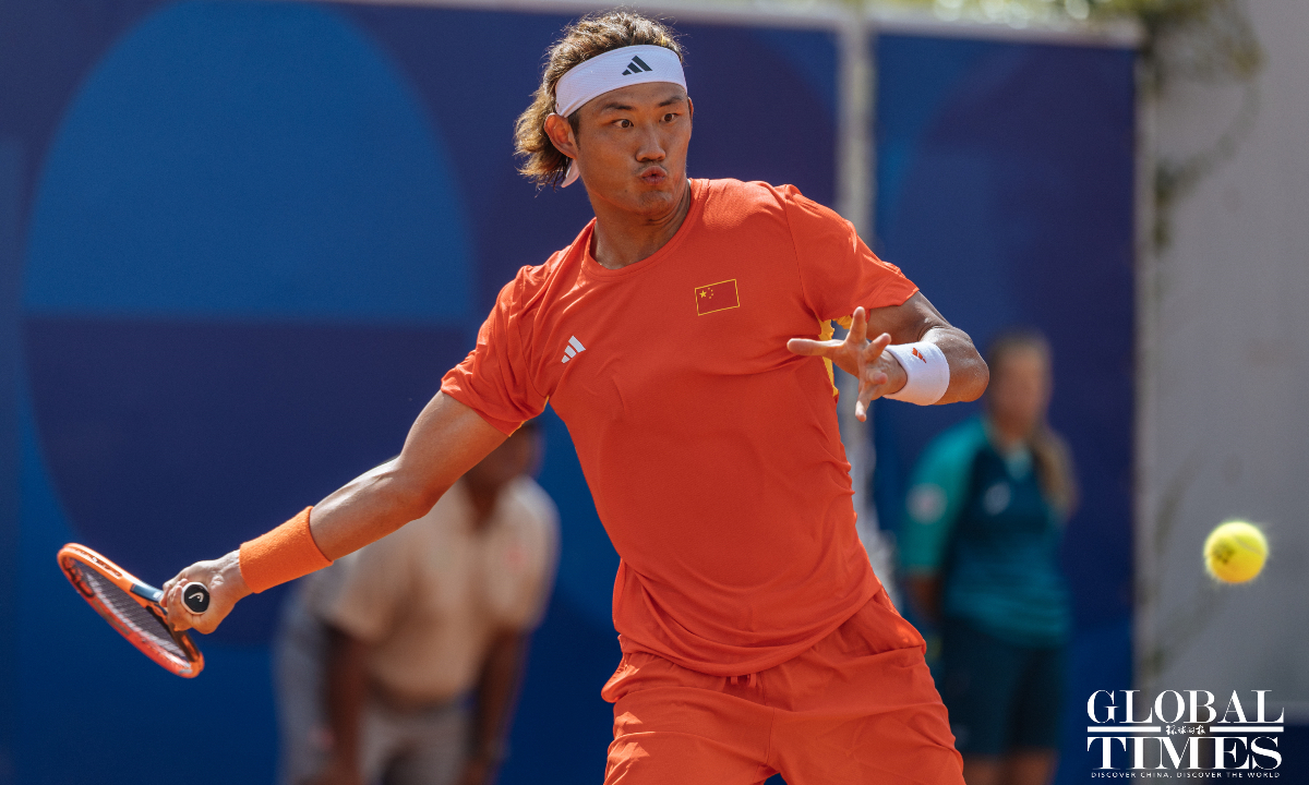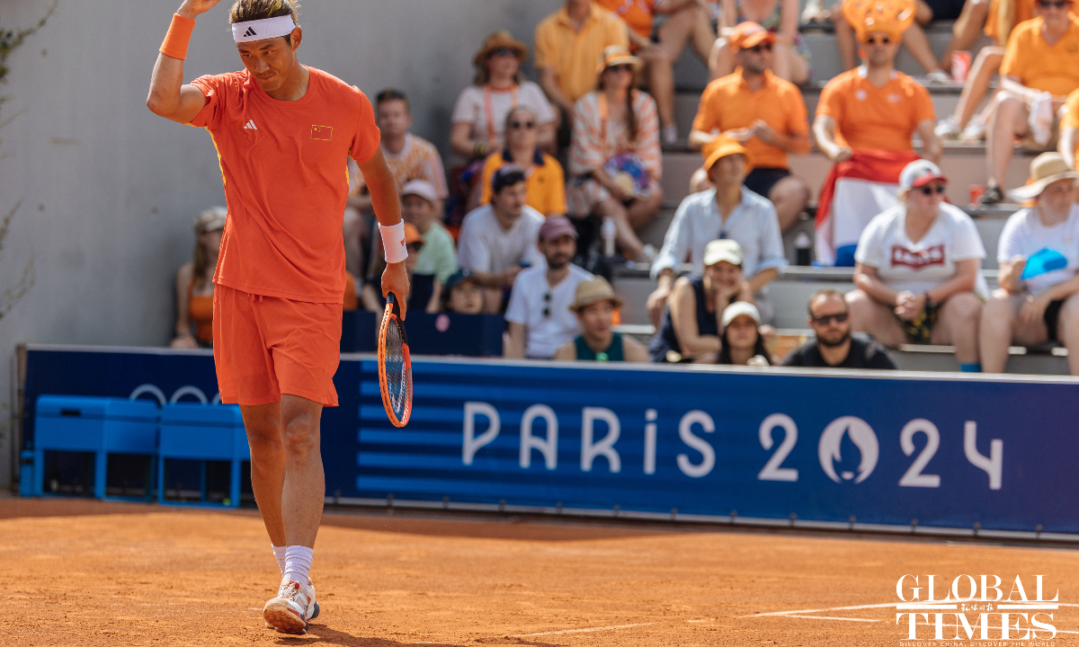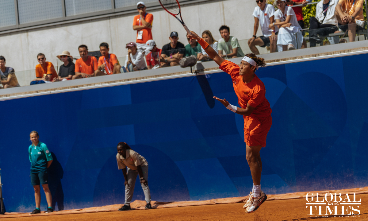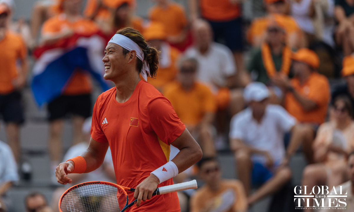 On Thursday, Chinese pair Wang Xinyu and Zhang Zhizhen made history by coming from behind to beat Demi Schuurs and Wesley Koolhof of the Netherlands, securing their spot in the Paris Olympics tennis mixed doubles final. (Photos: Li Hao/GT)